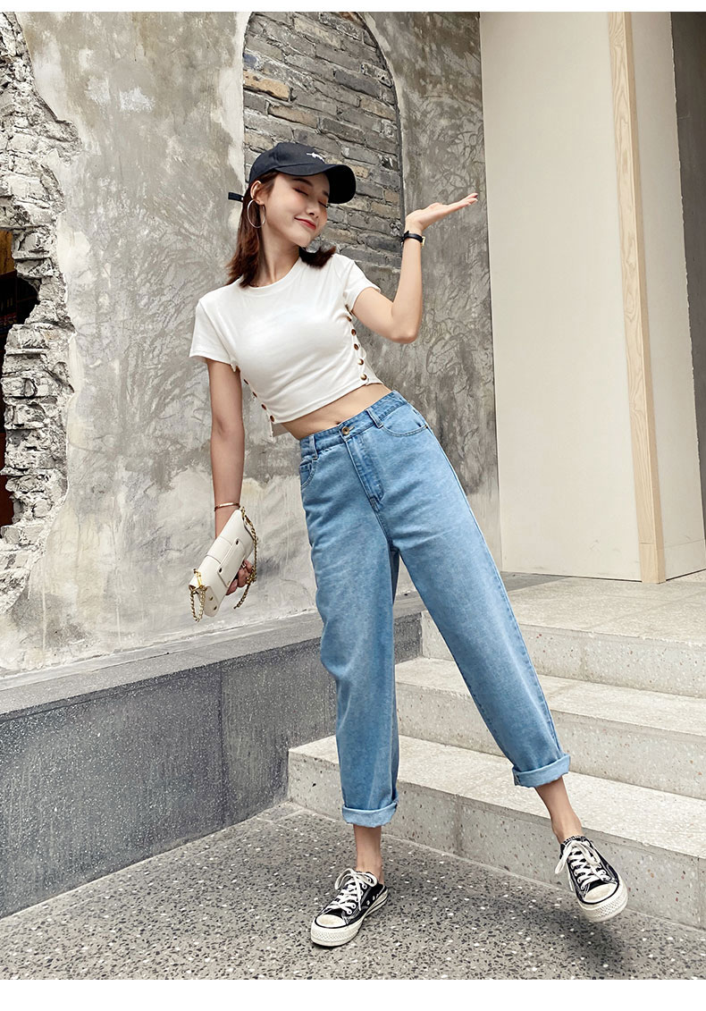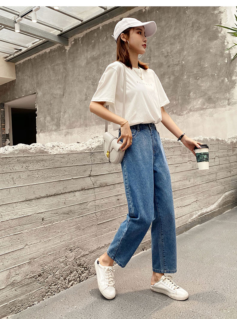 阔腿裤女高腰显瘦直筒牛仔裤,宽松港风小个子垂感拖地裤,高腰显瘦,点缀今夏的小雏菊,人群中靓的妹儿就是你~