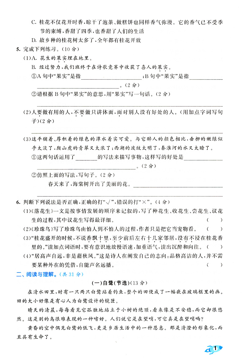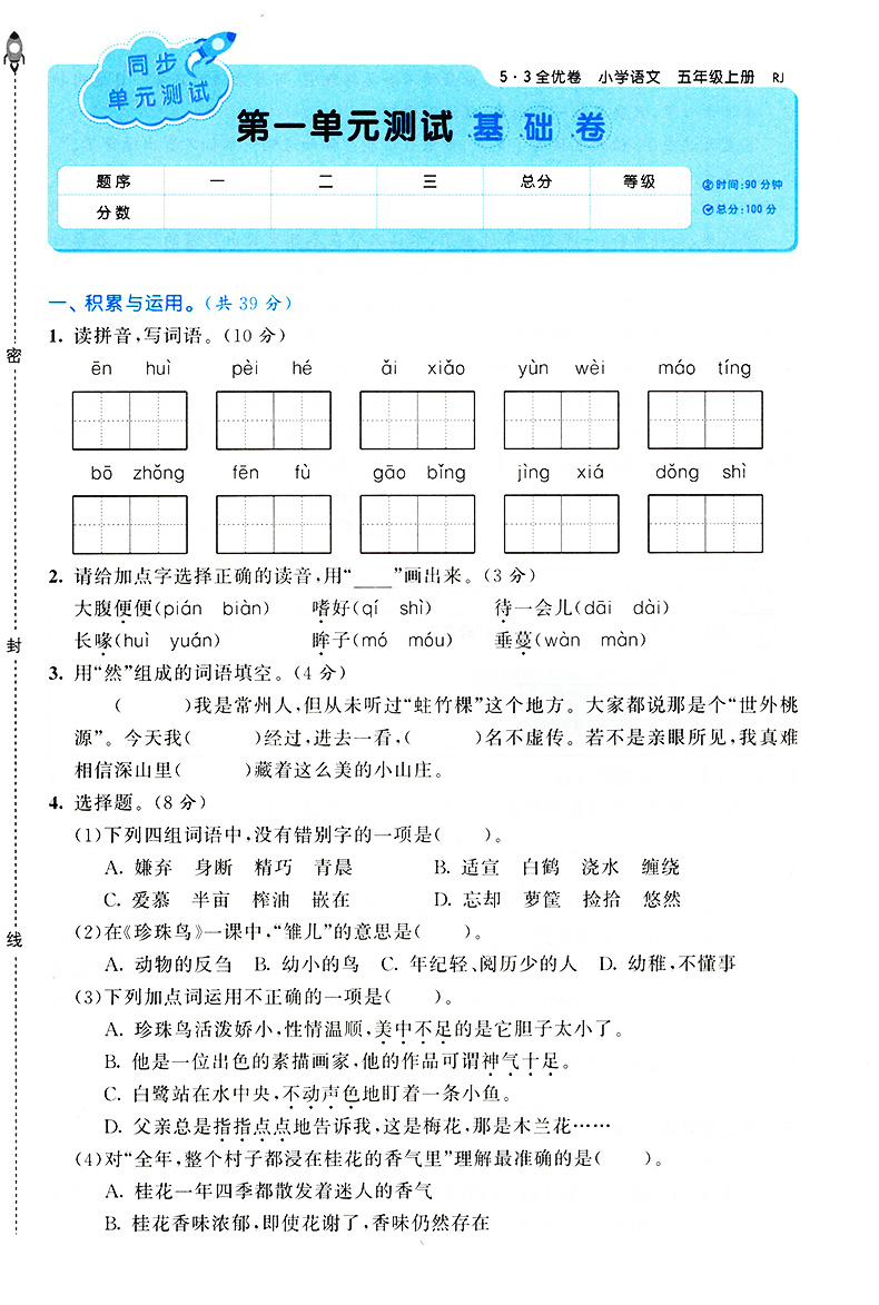 53全优卷五年级上册语文试卷