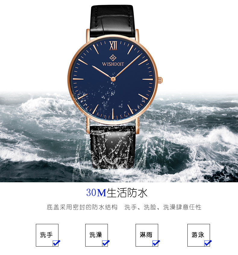 【超值促销】超薄男士手表,终身保修,石英机芯无误差,深度防水,赠送皮表带,经典蓝光镜面,简约休闲腕表,轻薄时尚优雅范,送表带电池,防水防刮~【赠运费险】