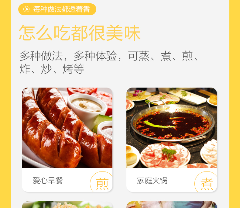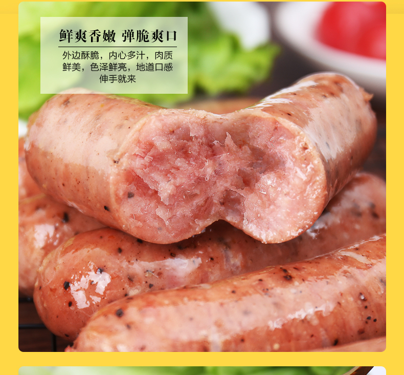 上赏火山石烤肠500g精选源头肉,肉质紧密,口感劲道,纯肉制作,肉感满满的~在家就能制作,美味随心享,皮脆肉香,超级解馋!无论是微波、煎、炸、烤,味道都是一级棒~