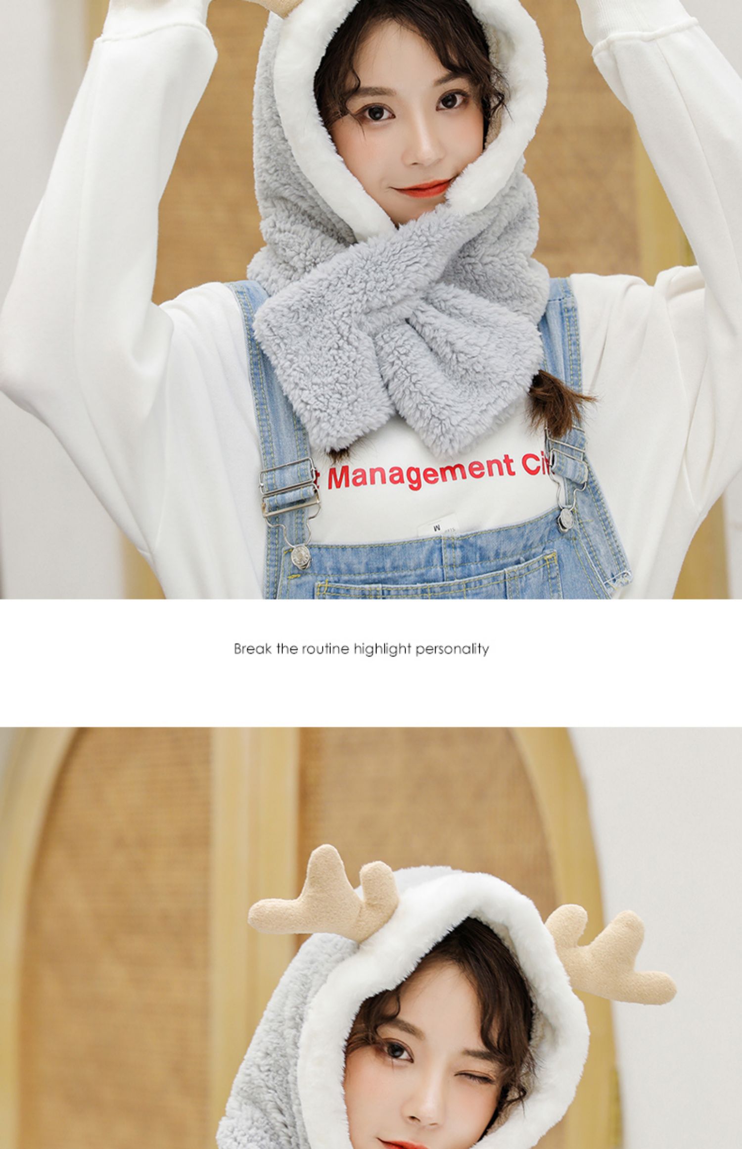 【三合一围脖帽子】卡通Q萌鹿角造型,畅享童真,青春活力。双层加绒加厚款,抵御0度以下的寒冷,保暖性超好,多种卡通款式可选~