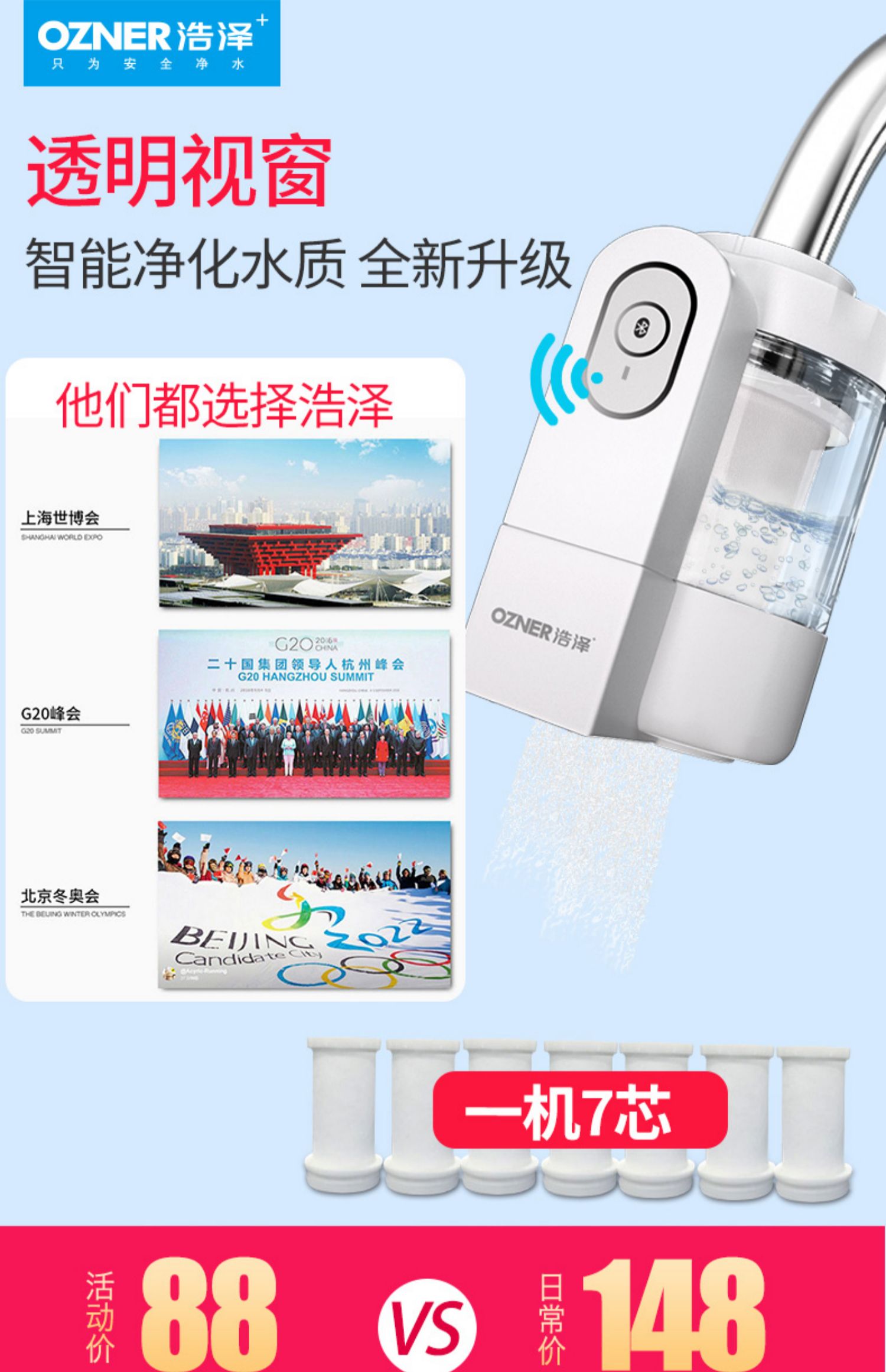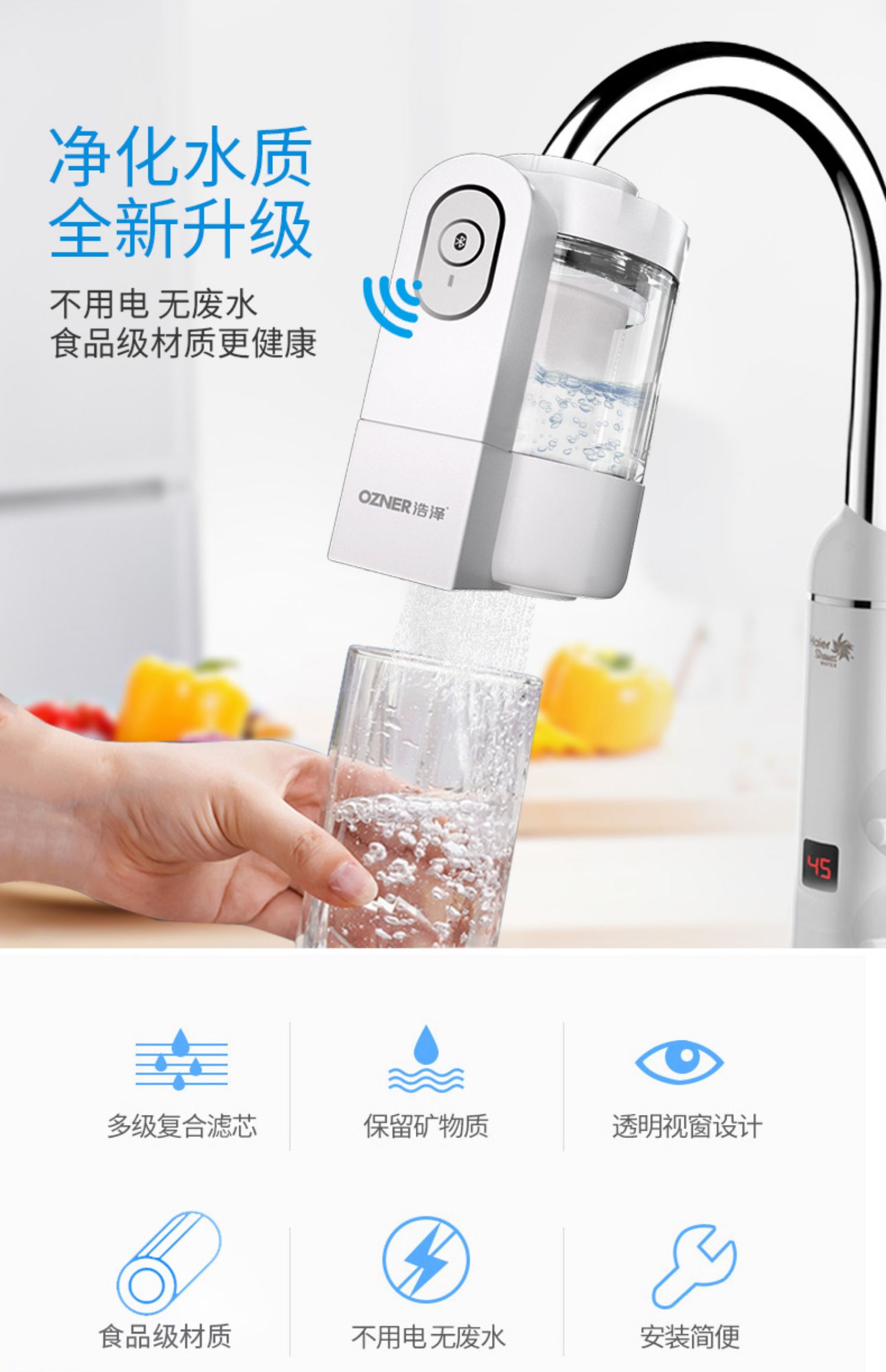 浩泽全新升级厨房水龙头净水器过滤器,透明视窗,智能净化水质,适用多种水龙头,RO滤芯升级版,层层过滤出好水,保留矿物质元素,食品级材质,净亦求净!
