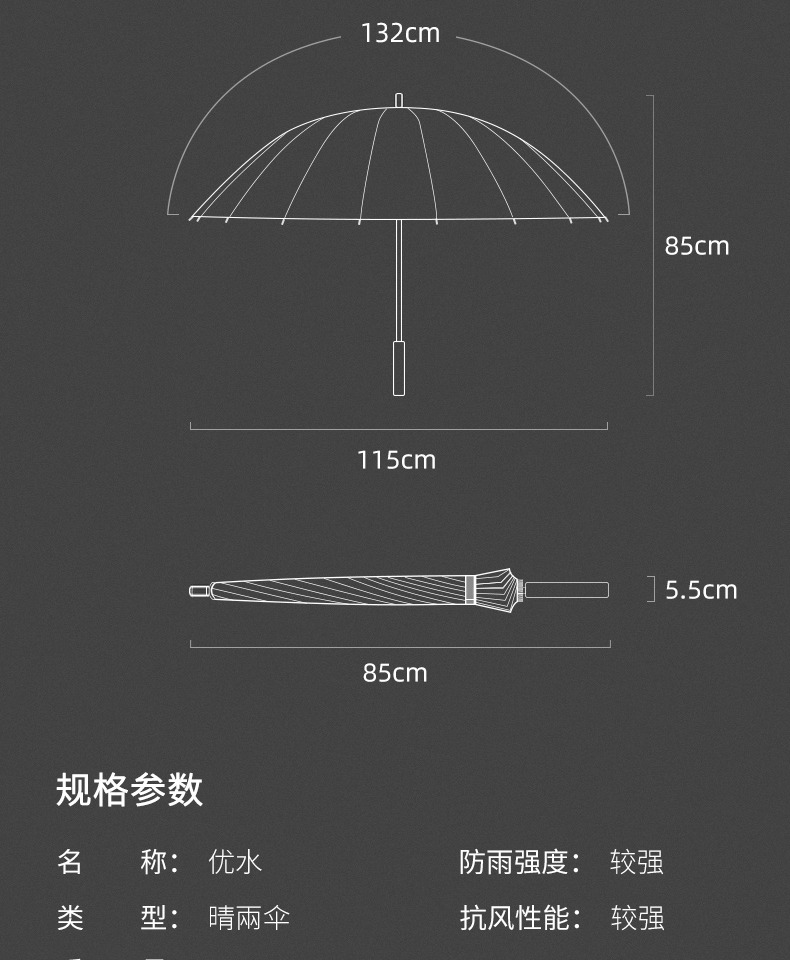 8骨长柄雨伞,高密度防水伞布,一甩即干!暴风雨专用!加宽大伞面,ABS材质手柄,握感舒适,收放自如!携带轻便,轻松出行~【赠退货运费险】