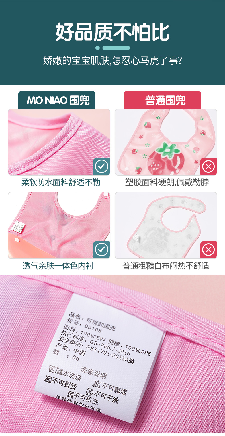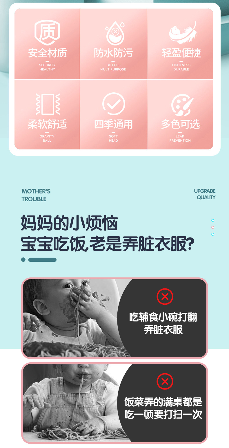 抖音热卖推荐,超值优惠冲量!可拆卸饭兜,柔软舒适,四季通用,多色可选,大口吃饭再也不怕衣服弄脏了,防油防污好清理,健康环保无异味,出门方便携带,让宝宝享受无拘无束的用餐时光~