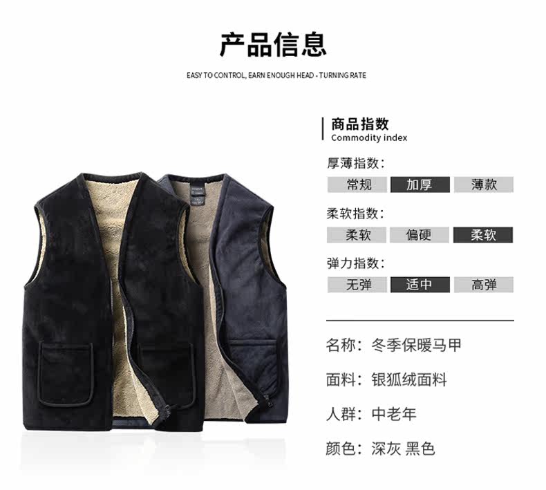加厚加绒马甲,舒适保暖,穿着透气,加厚面料,触感柔软,面料厚实缜密,保暖御寒,时尚与温暖同在,您没有总是陪在父母的身边那就给父母买件衣服吧,温暖又贴心。【赠运费险】