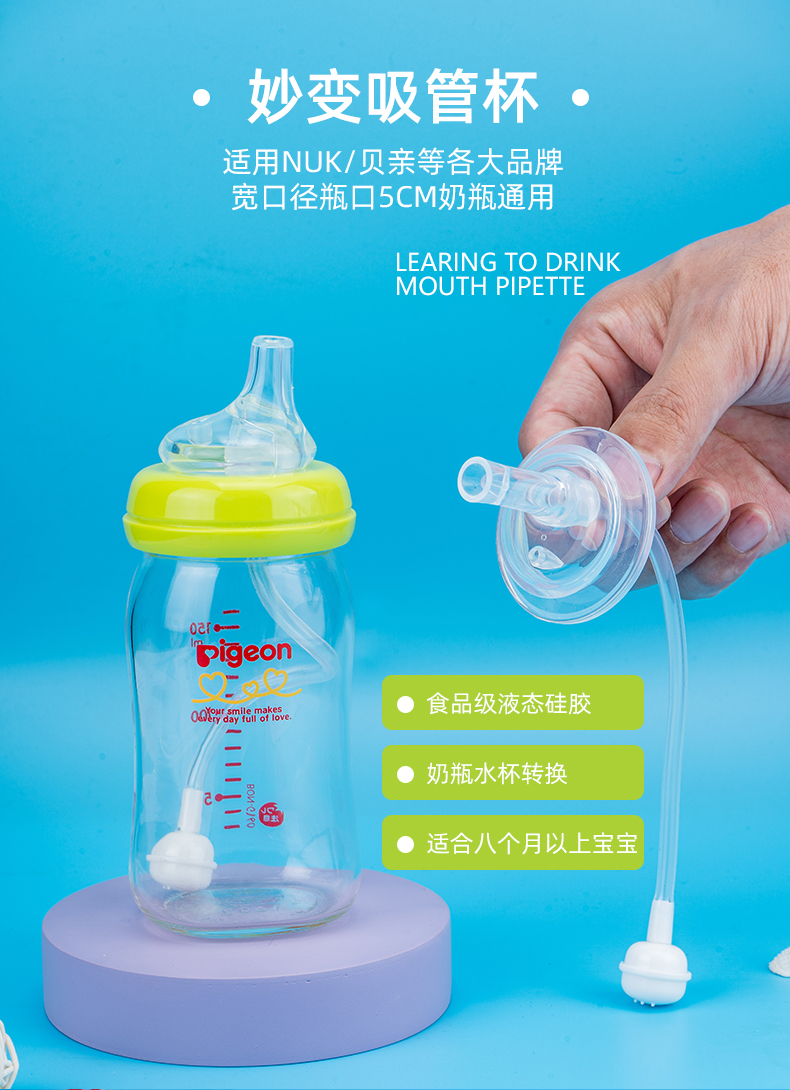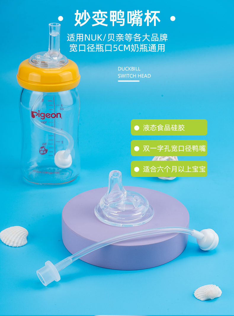 宝宝喝水断奶好帮手,食品级硅胶材质,安全无异味,鸭嘴转化头防漏水,防胀气,360度饮水,隐藏式排气孔,美观好看。一个大小,柔软,触感接近母乳的学饮嘴。方便易安装,拆开洗更干净减少细菌滋生。