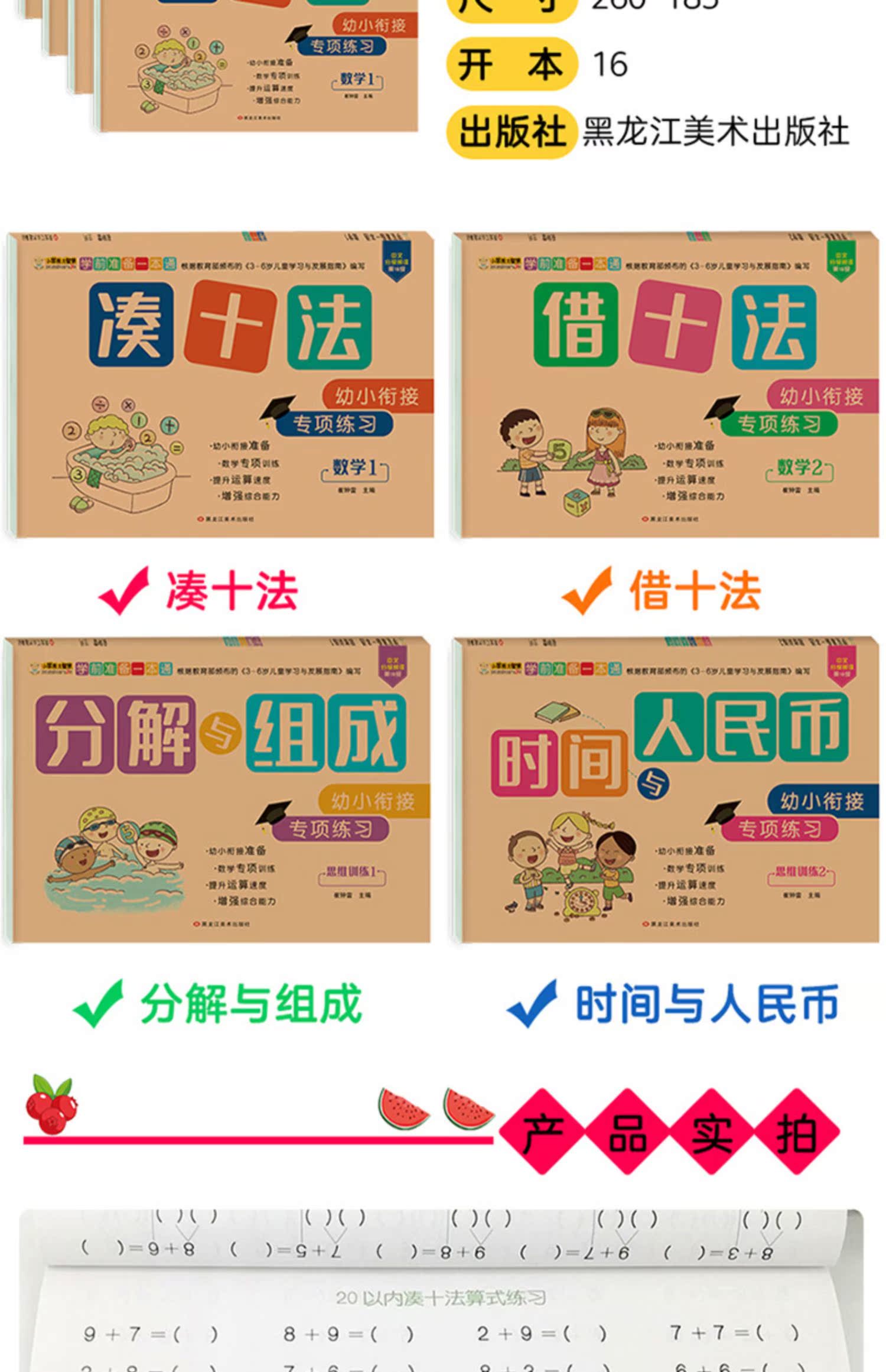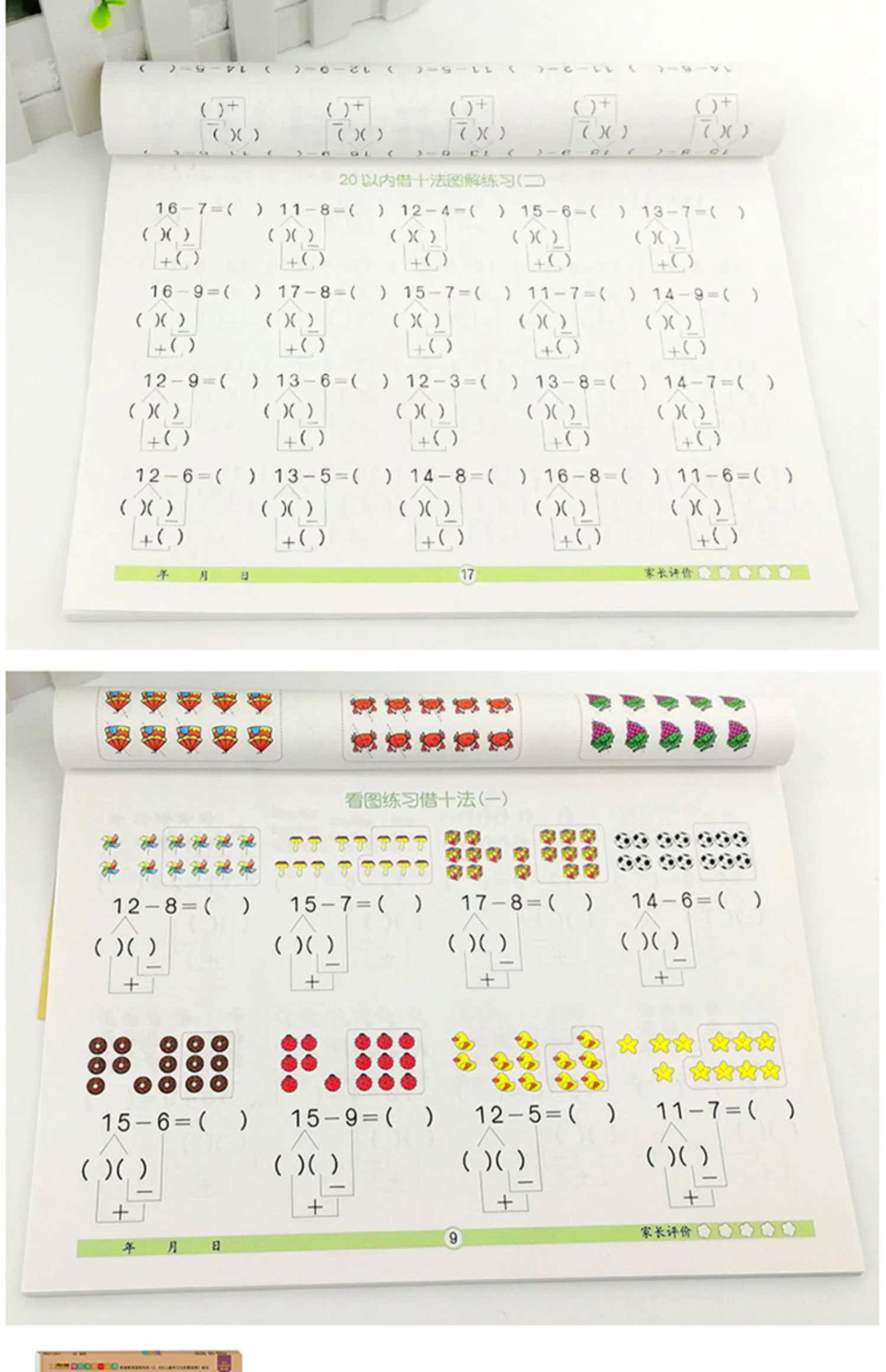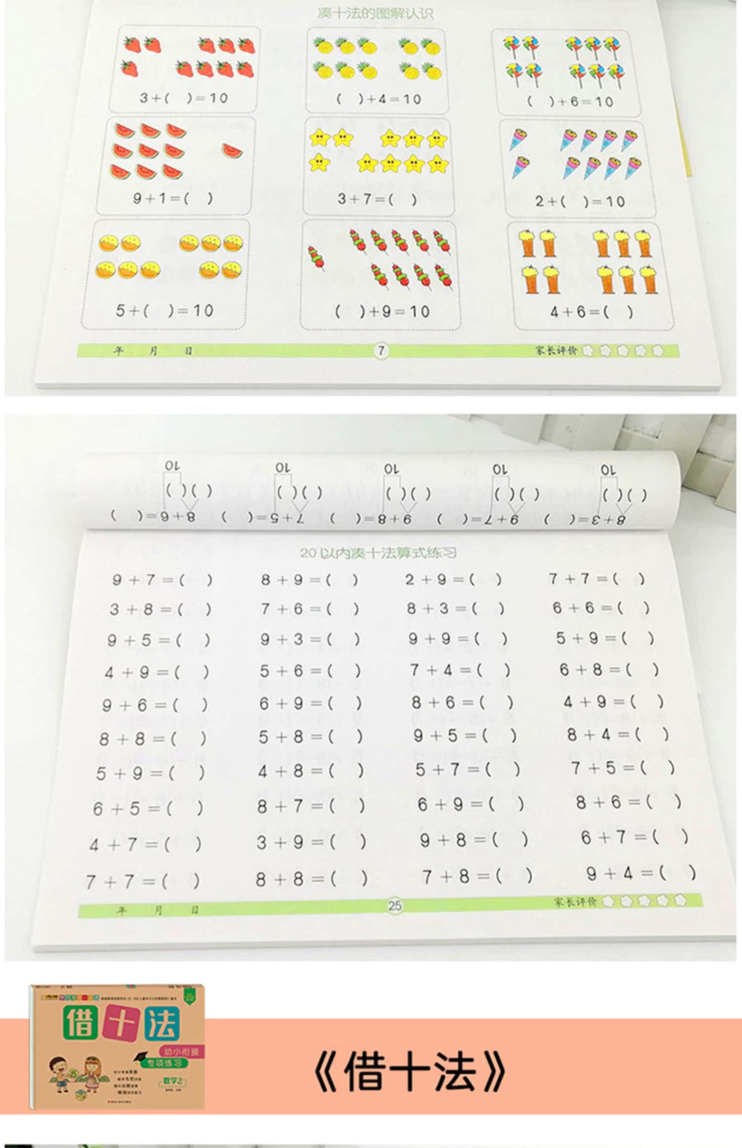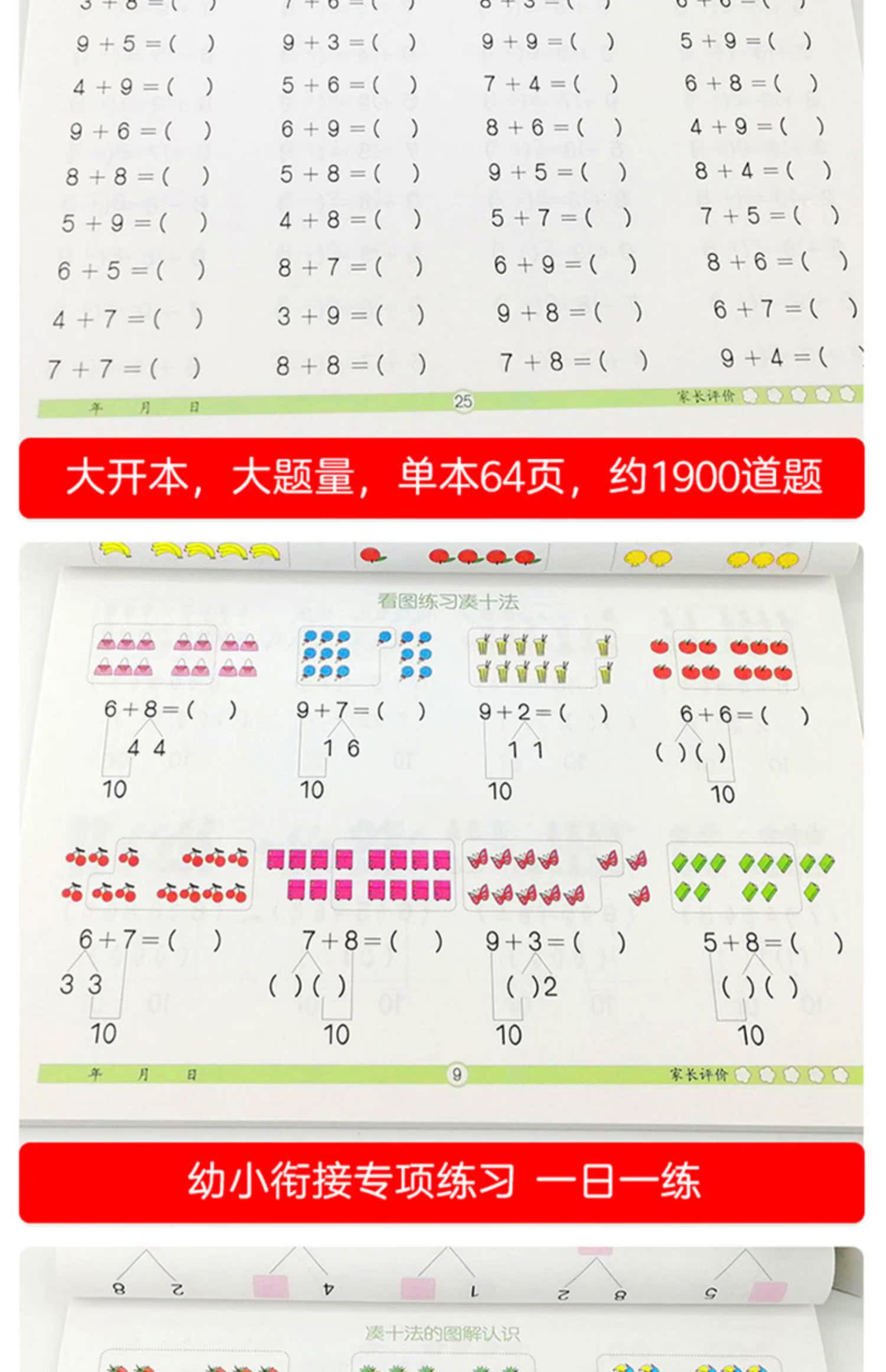 幼小衔接一日一练数学思维训练,凑十法破十法平十法借十法,教材全套人教版,10以内分解与组成,20以内加减法,彩色注音,牛皮纸封面,大开本大题量,天天练学前班练习册