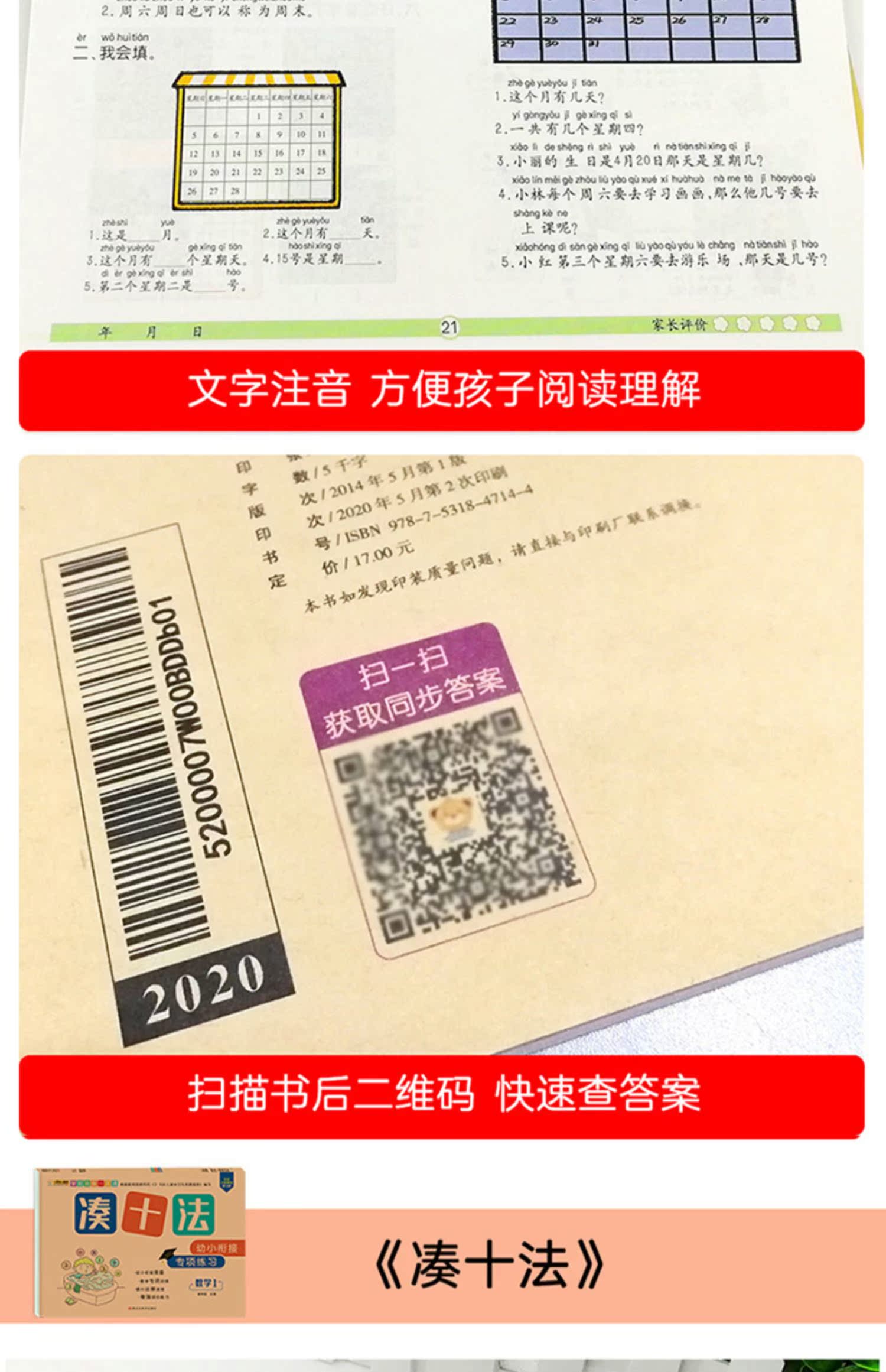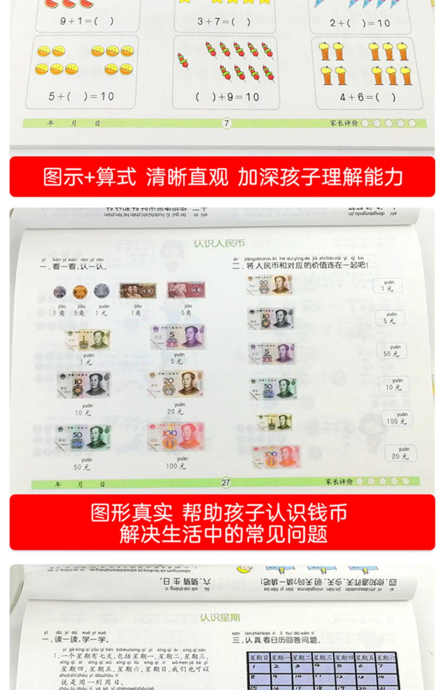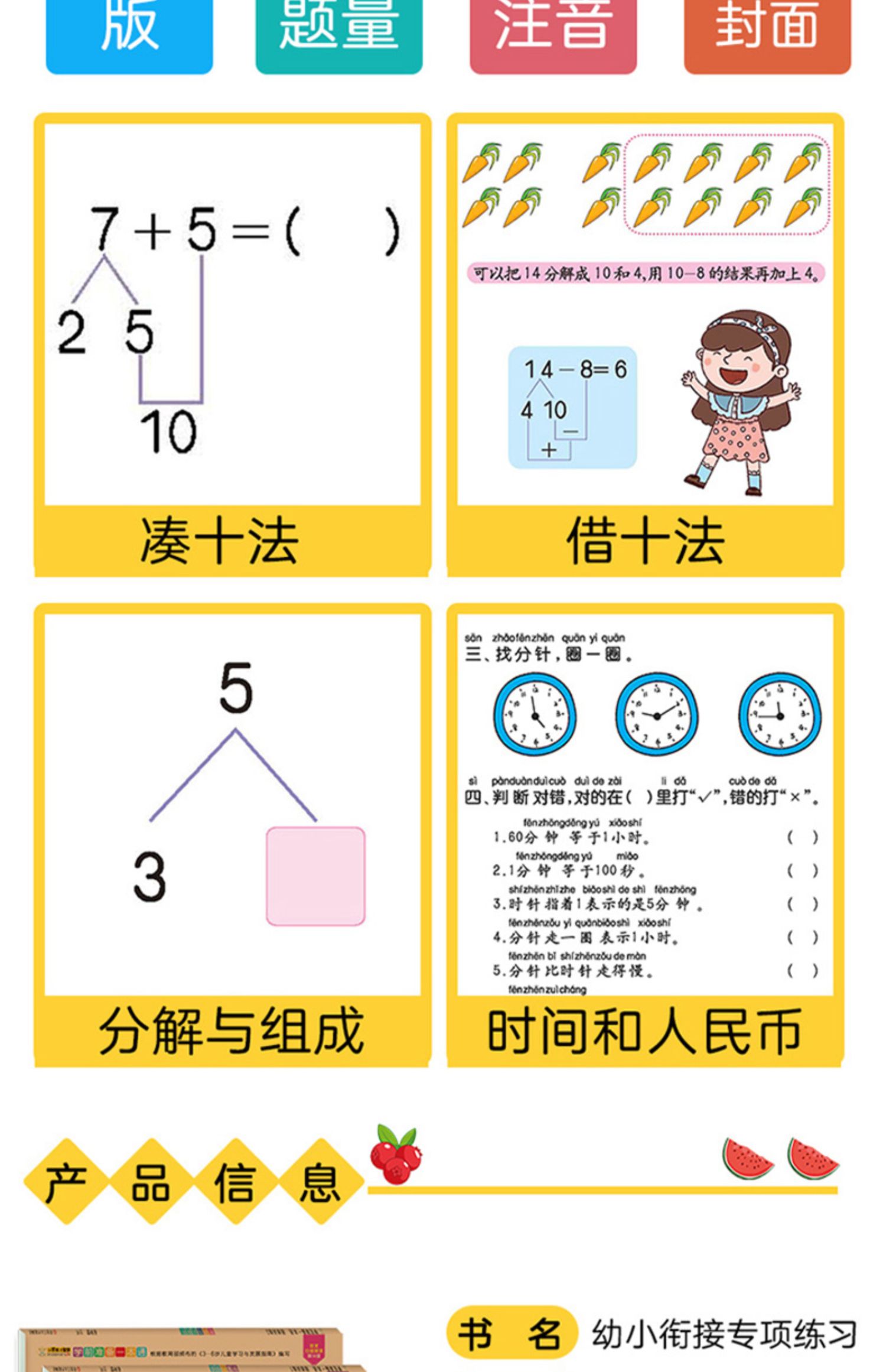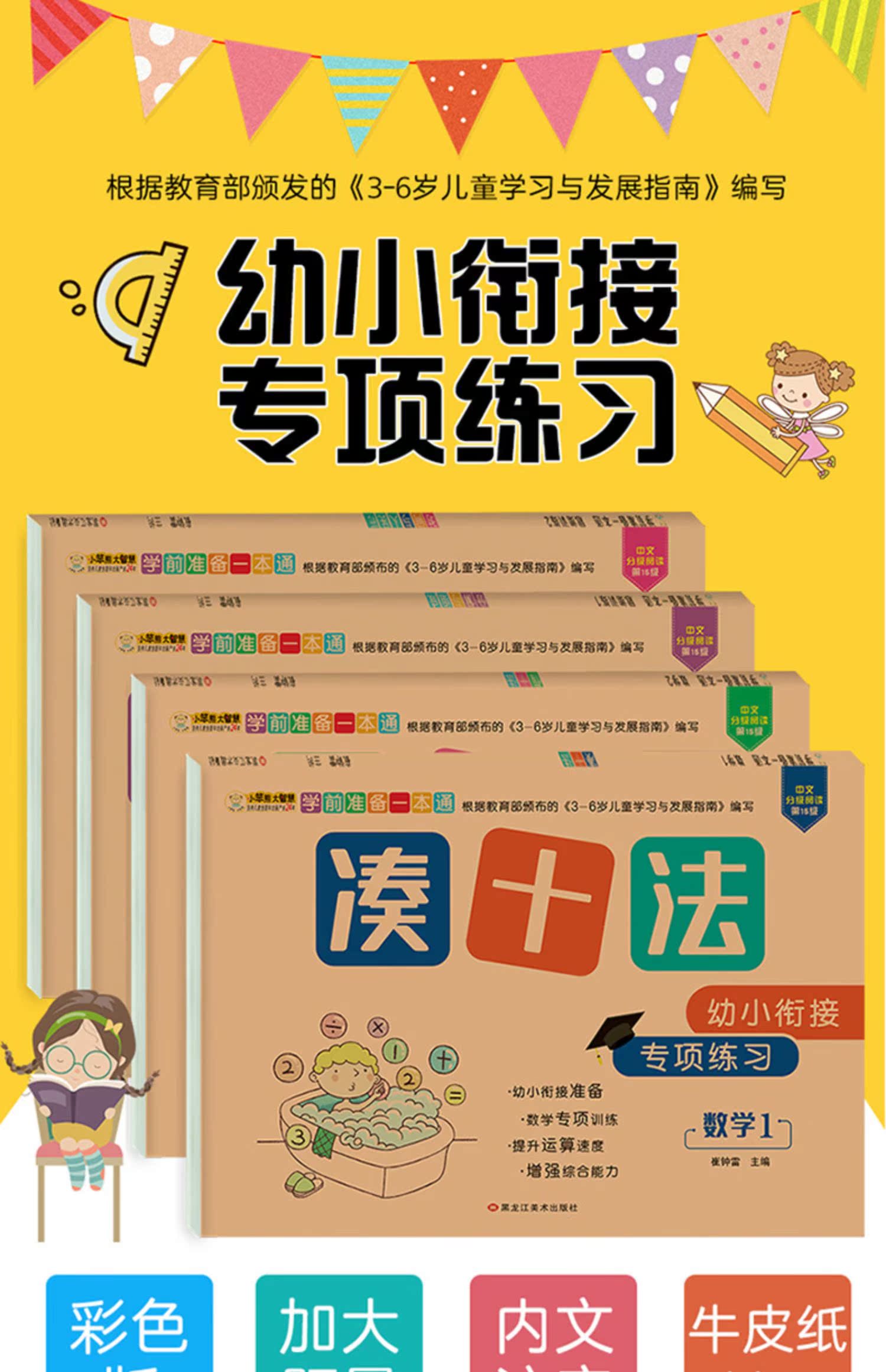 幼小衔接一日一练数学思维训练,凑十法破十法平十法借十法,教材全套人教版,10以内分解与组成,20以内加减法,彩色注音,牛皮纸封面,大开本大题量,天天练学前班练习册