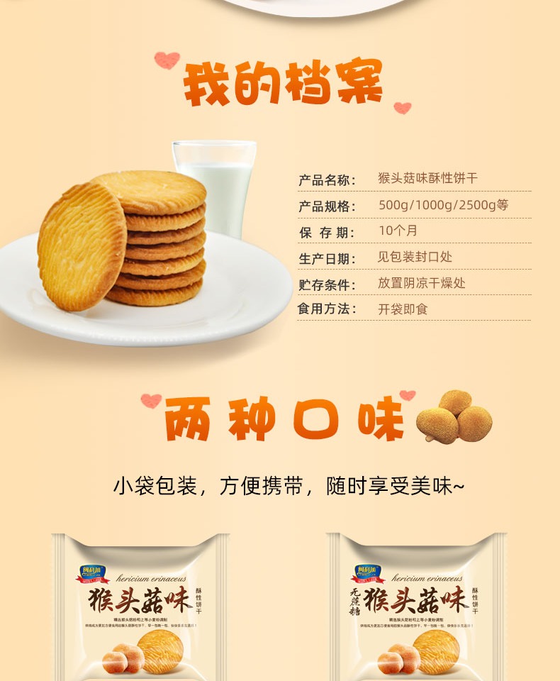 【买500g送500g只要12.9元】猴头菇养胃饼干,内有五谷精华,营养美味,高档礼盒包装,送礼倍有面子!可以冲泡喝的饼干,做营养早餐再合适不过了,当零食吃也不错~