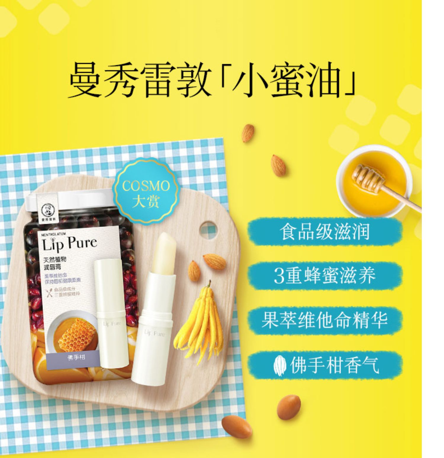 【明星代言,好价回归!买即送护手霜1支】天然植物蜂蜜唇膏,天然食品级成分植物滋润,男女士无色润唇,补水保湿,水果防干裂蜂蜜,天然淡纹配方,温和滋润!