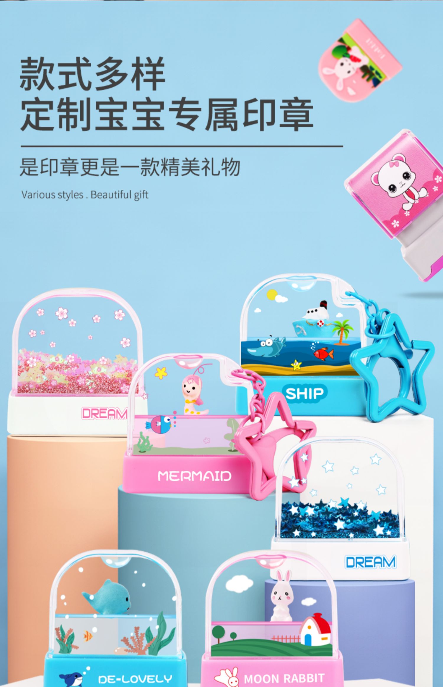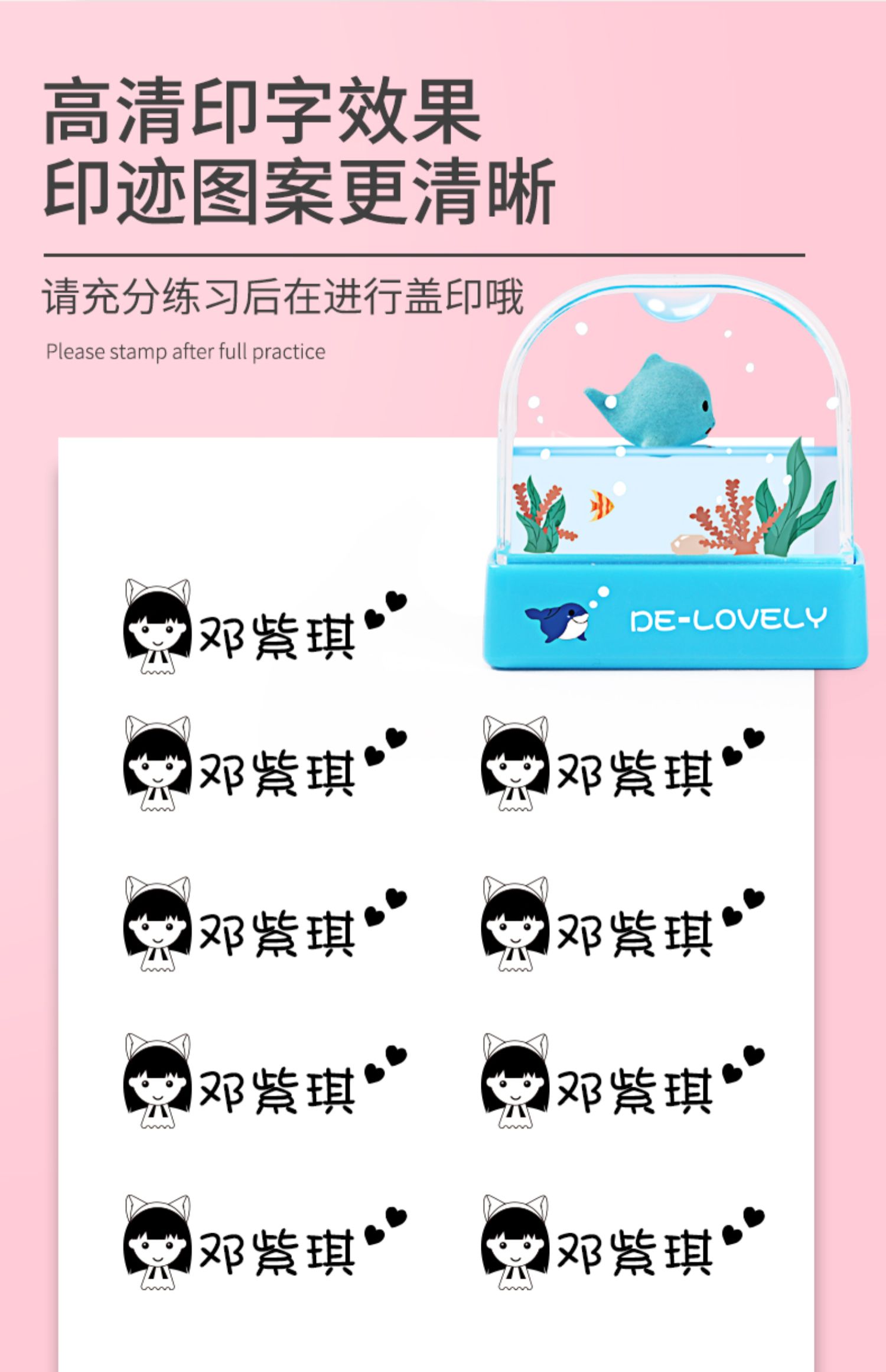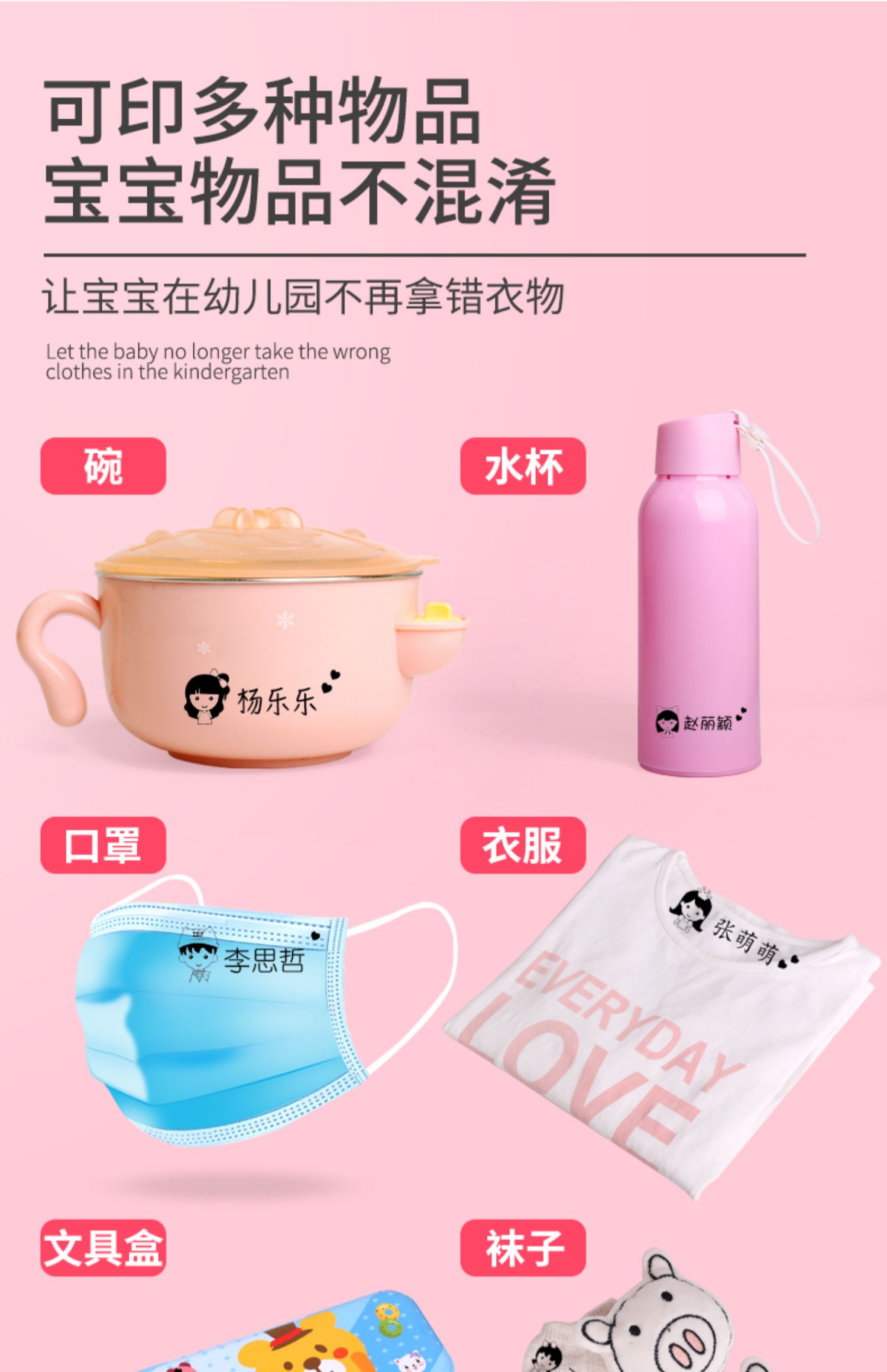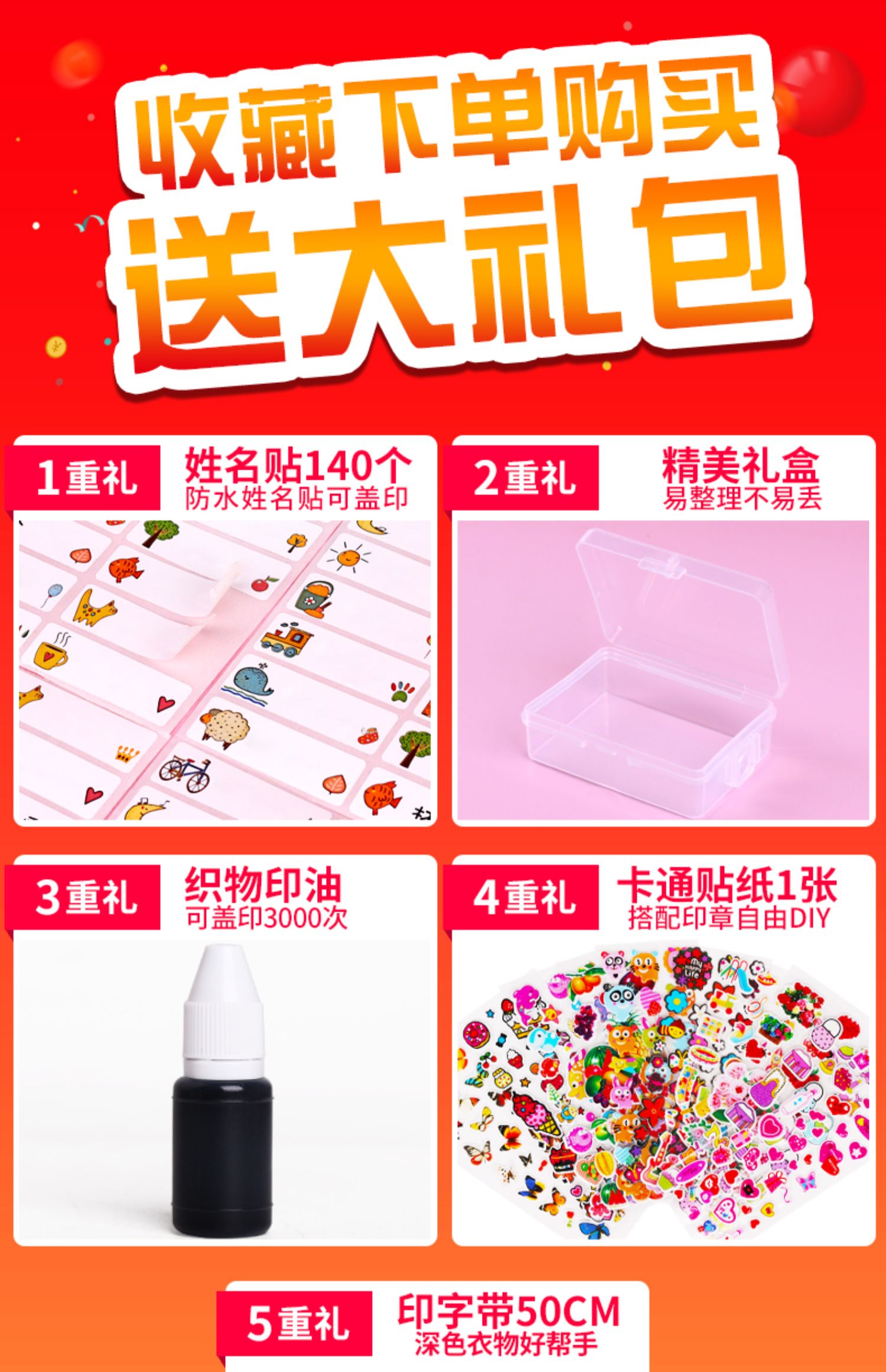 【备注名字+头像款式,送姓名贴140个+印油一瓶+收纳盒+50cm印字带+卡通贴纸一张】纯植物成分,环保无毒,水洗不掉色,印迹清晰,私人专属设计,衣物、课本都能使用~专属于宝宝的印章