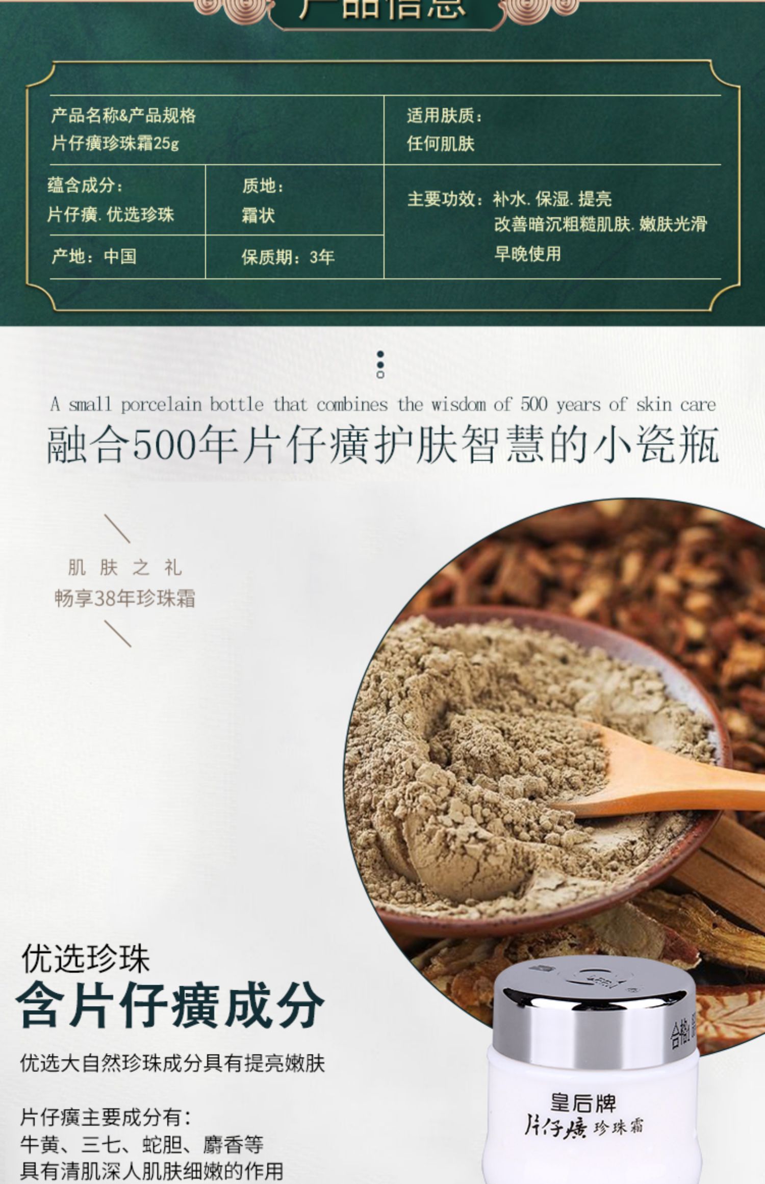 【赠运费险,新老包装随机发】拍1发3!到手3瓶仅35!秦海璐代言,40年国货老牌—片仔癀皇后牌珍珠霜!内有深海珍珠护肤,提亮+清痘+清爽控油,锁水保湿长达8小时!整个人如春天般美好!
