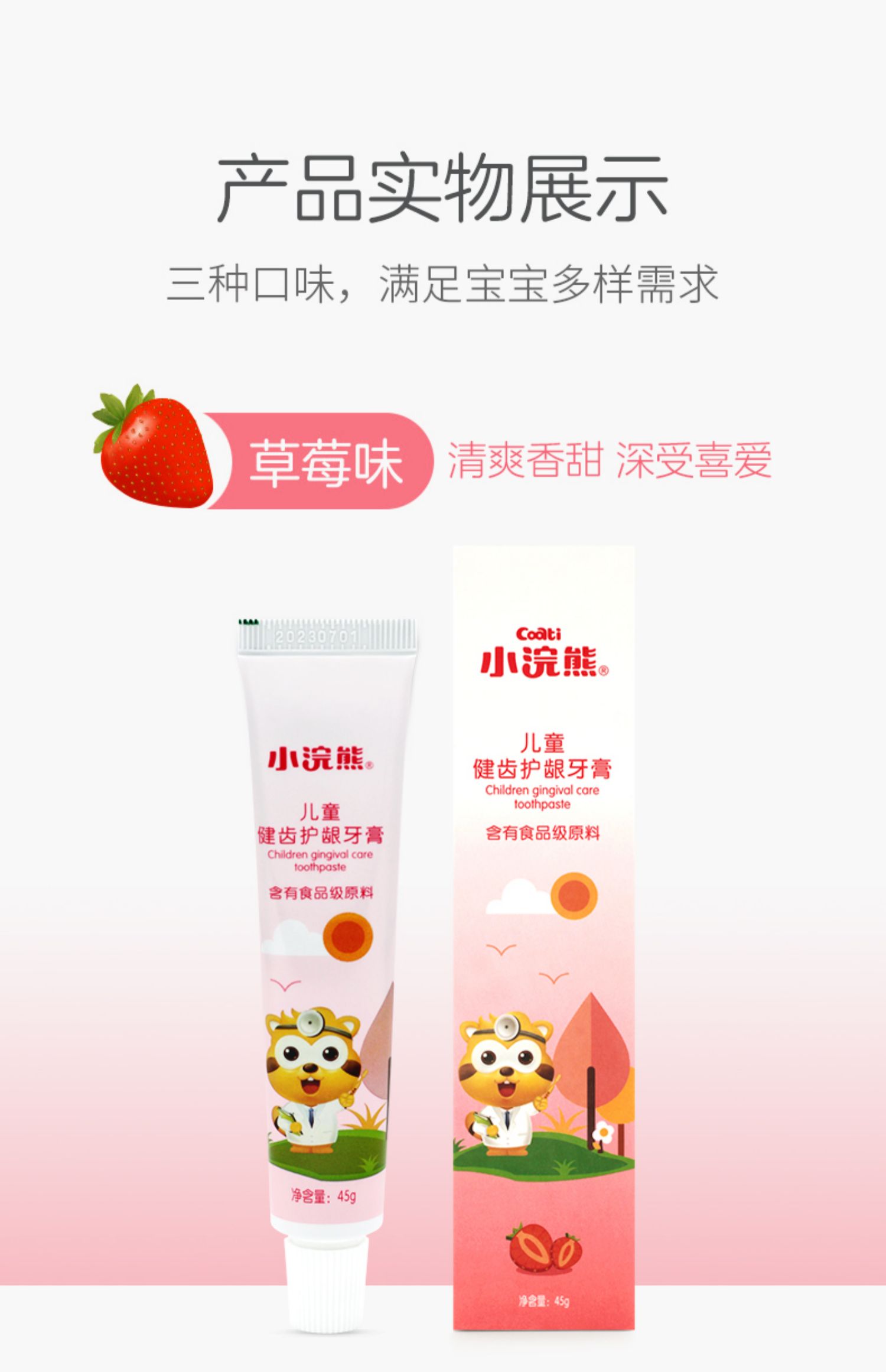 小浣熊儿童护龈牙膏,45g*2支¥9.9,线下27年母婴品牌、靠谱,食品级可吞咽、水果口味宝宝肯定喜欢~买就送牙刷、漱口杯、赶紧抢!