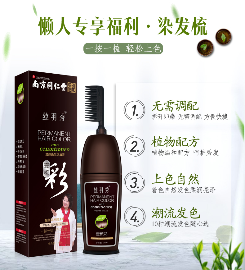 【南京同仁堂】专门做高端染发膏,梳发=染发,染完不伤发,一按一梳一洗,15分钟快速上色,温和不刺激,在家轻松搞定染发,健康安全,11种颜色可选~【赠运费险】