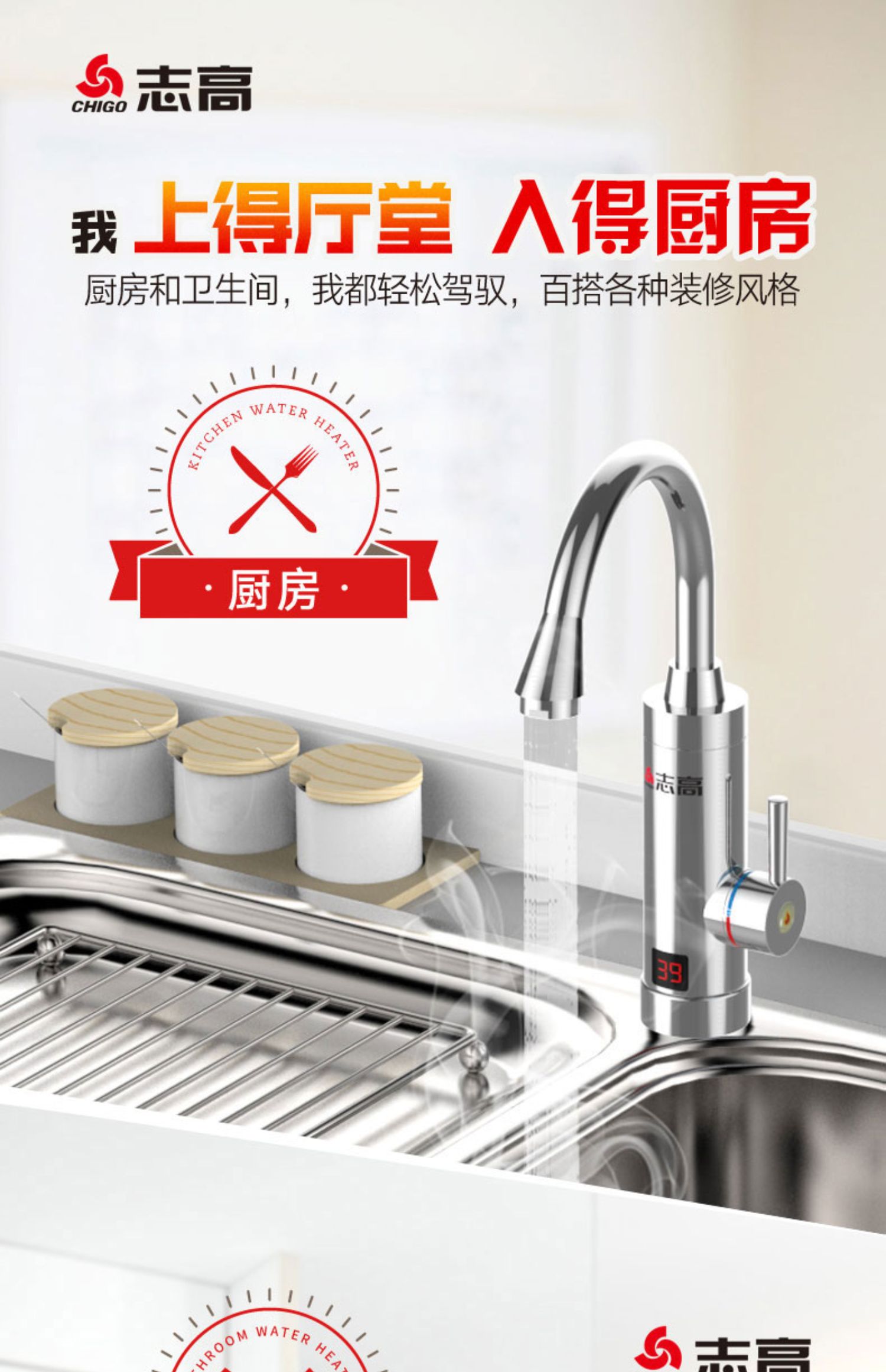 【到手价格59.9元】秋冬别再用冷水洗菜洗脸了!大牌志高电热水龙头,冷热两用,温水热水随便调节,3秒出热水,出水温度一目了然!防冻防爆,安全不漏电,给家人一个温暖的冬天!