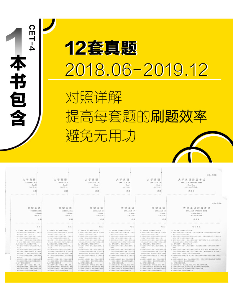 【5.7元限时秒杀,正版官方店铺】备考2020年9月四级真题试卷,英语四级12套真题详解+12套模拟+12张答题卡,英语4级词汇听力写作作文口语,真题+模拟,全部新题型,助你战场所向披靡!