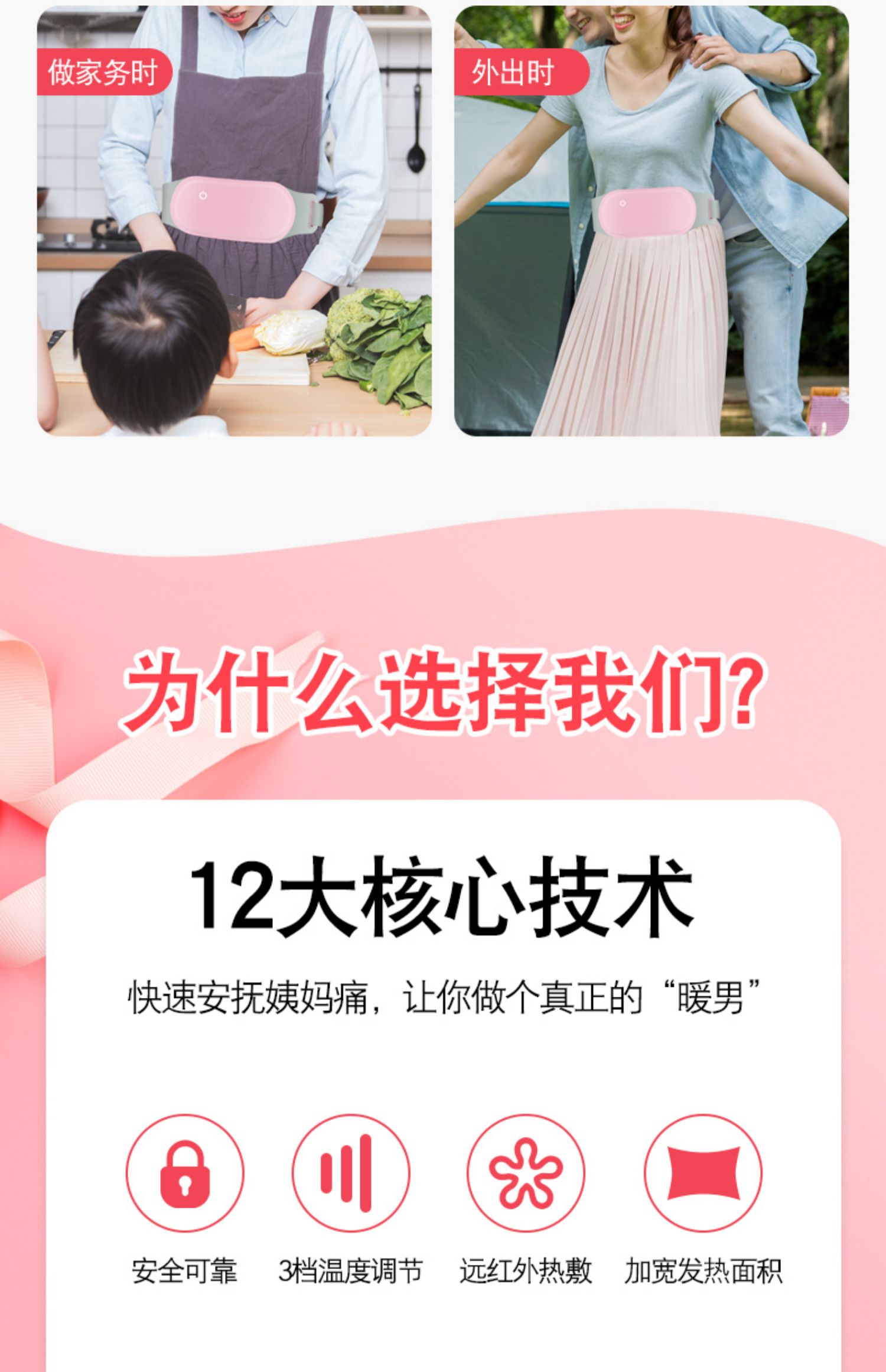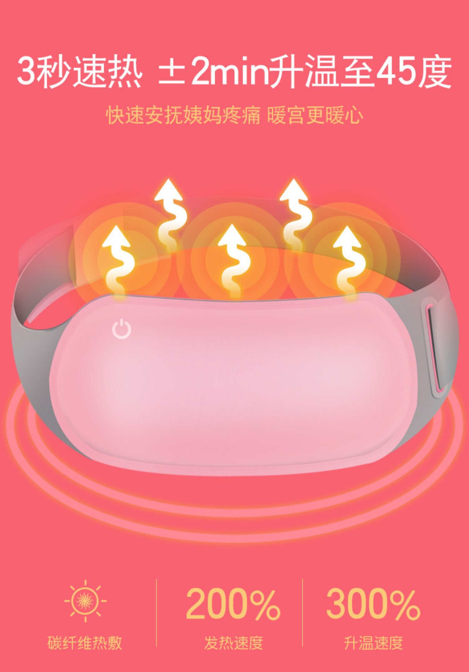 暖宫腰带,比男友更“暖”心的神器!3秒速热,3档温度调节,5小时持续温暖,暖宫暖身暖胃,缓解经期疼痛,小腹坠胀,腰部酸痛!充电便携,随时随地可用!