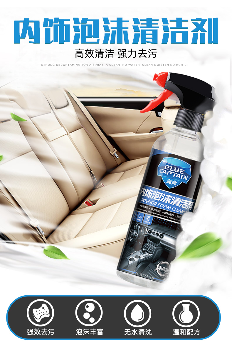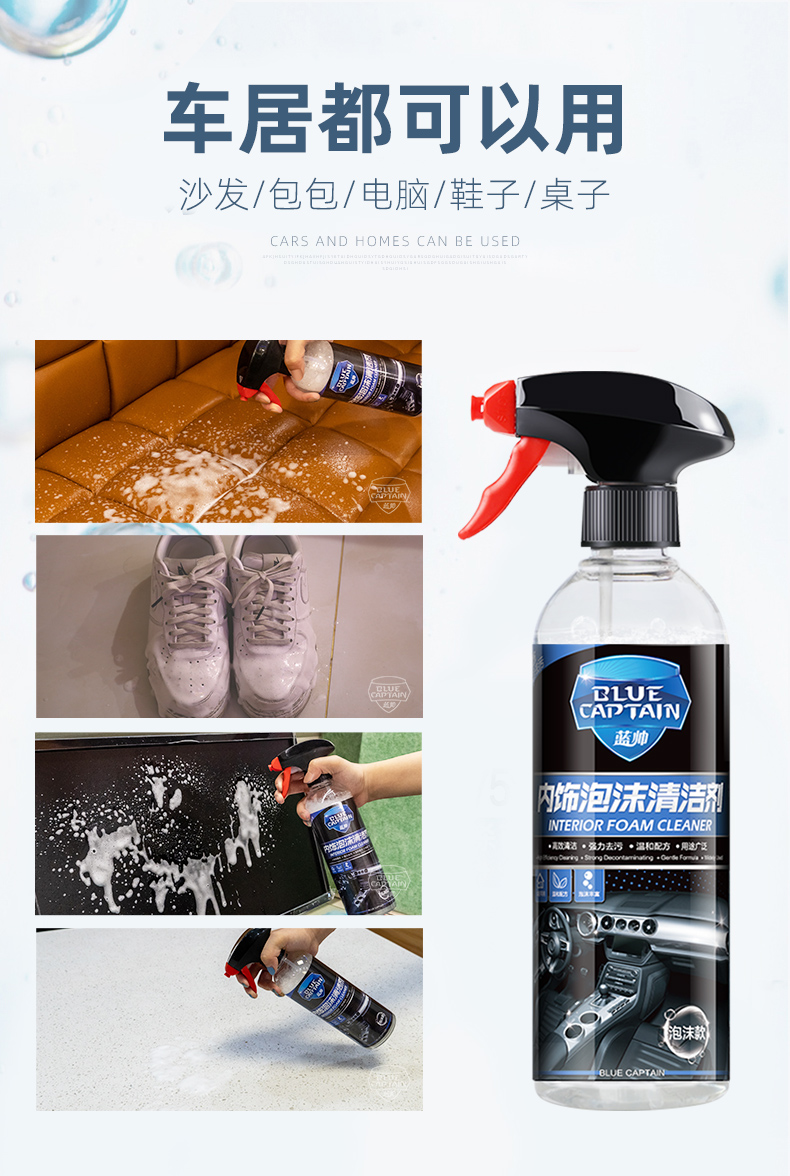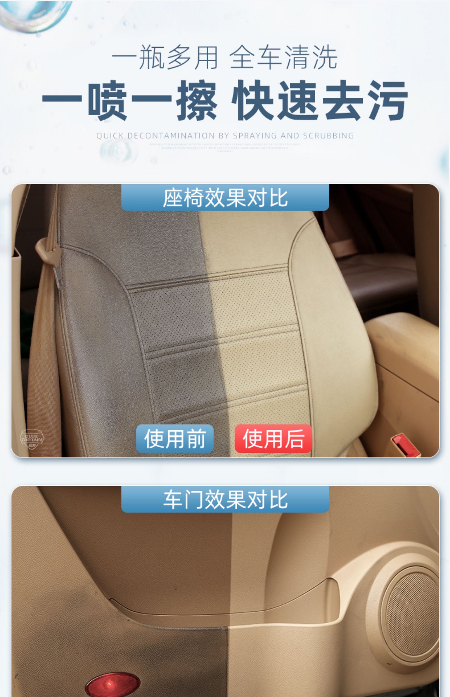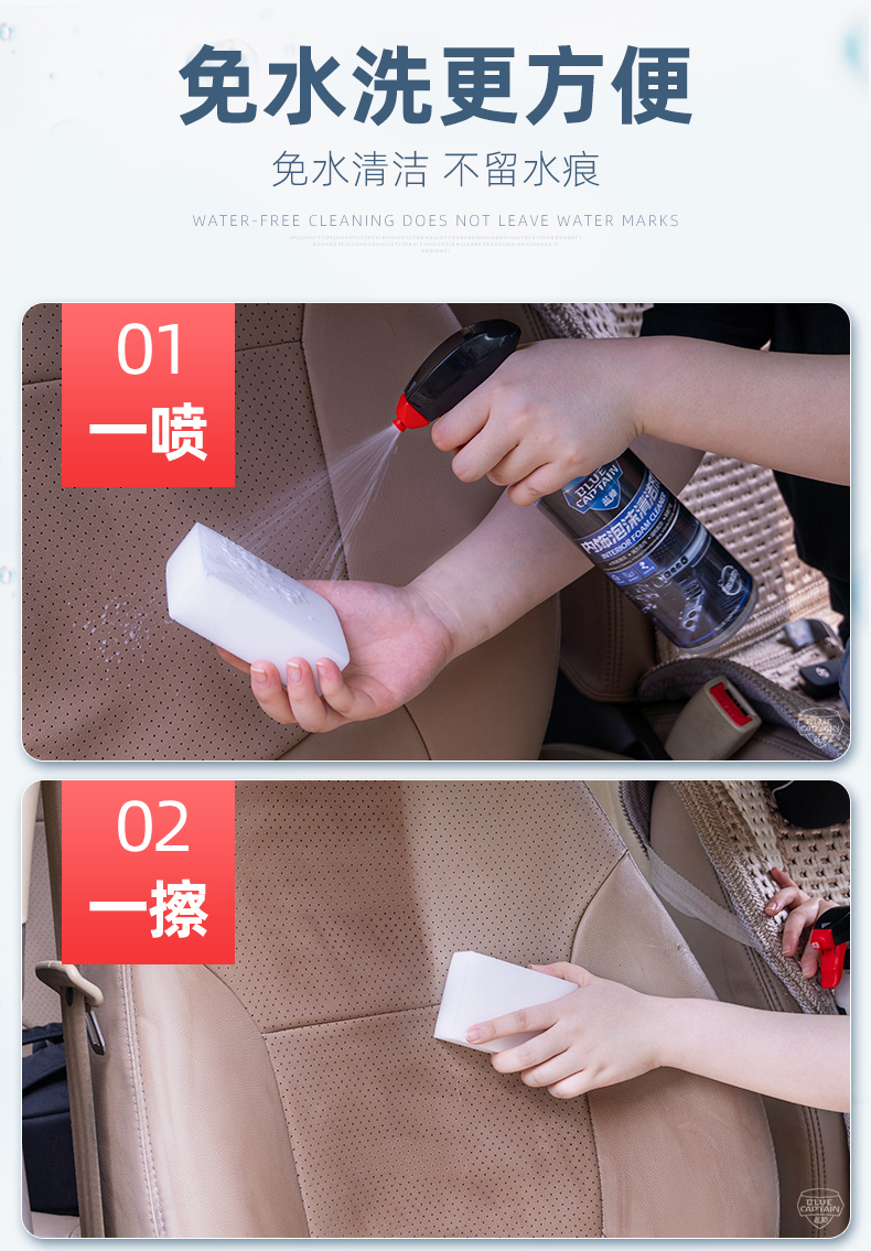 泡沫丰富,免水洗,强力去污,一擦净,车家两用
