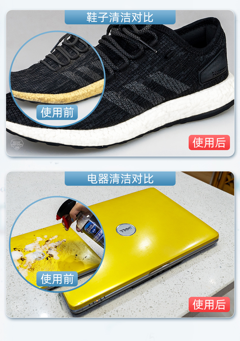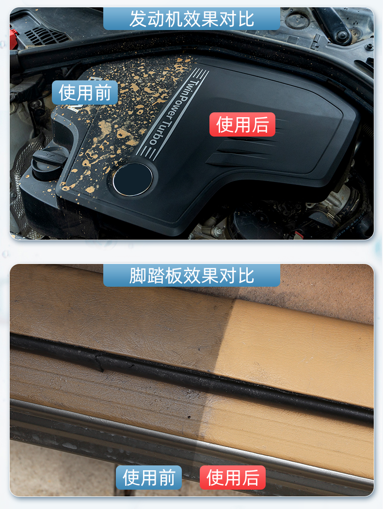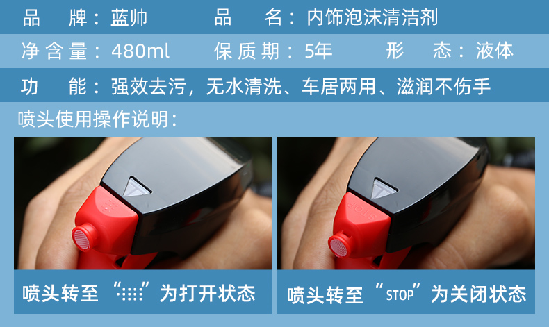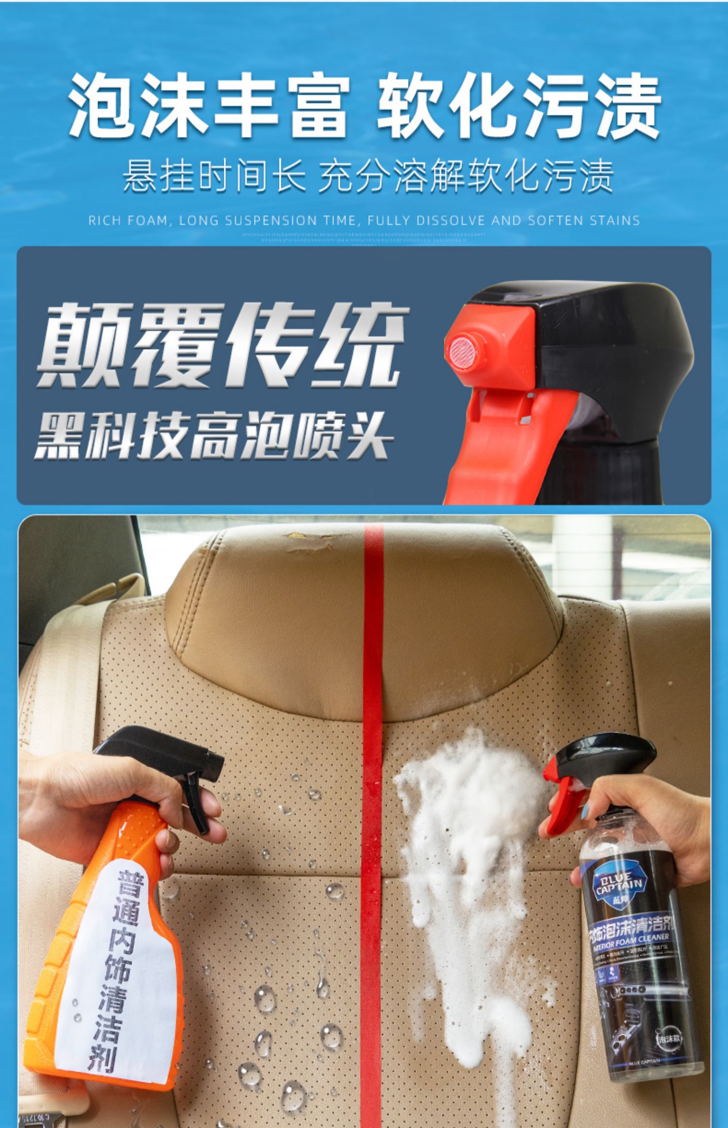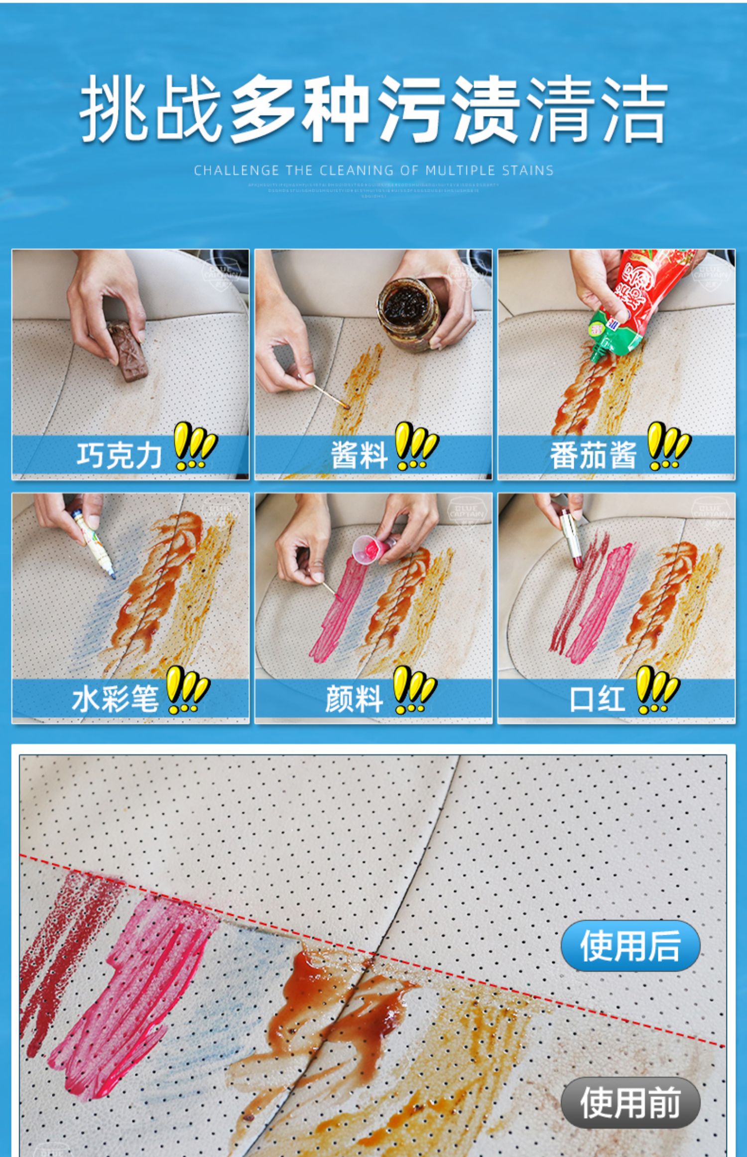 泡沫丰富,免水洗,强力去污,一擦净,车家两用