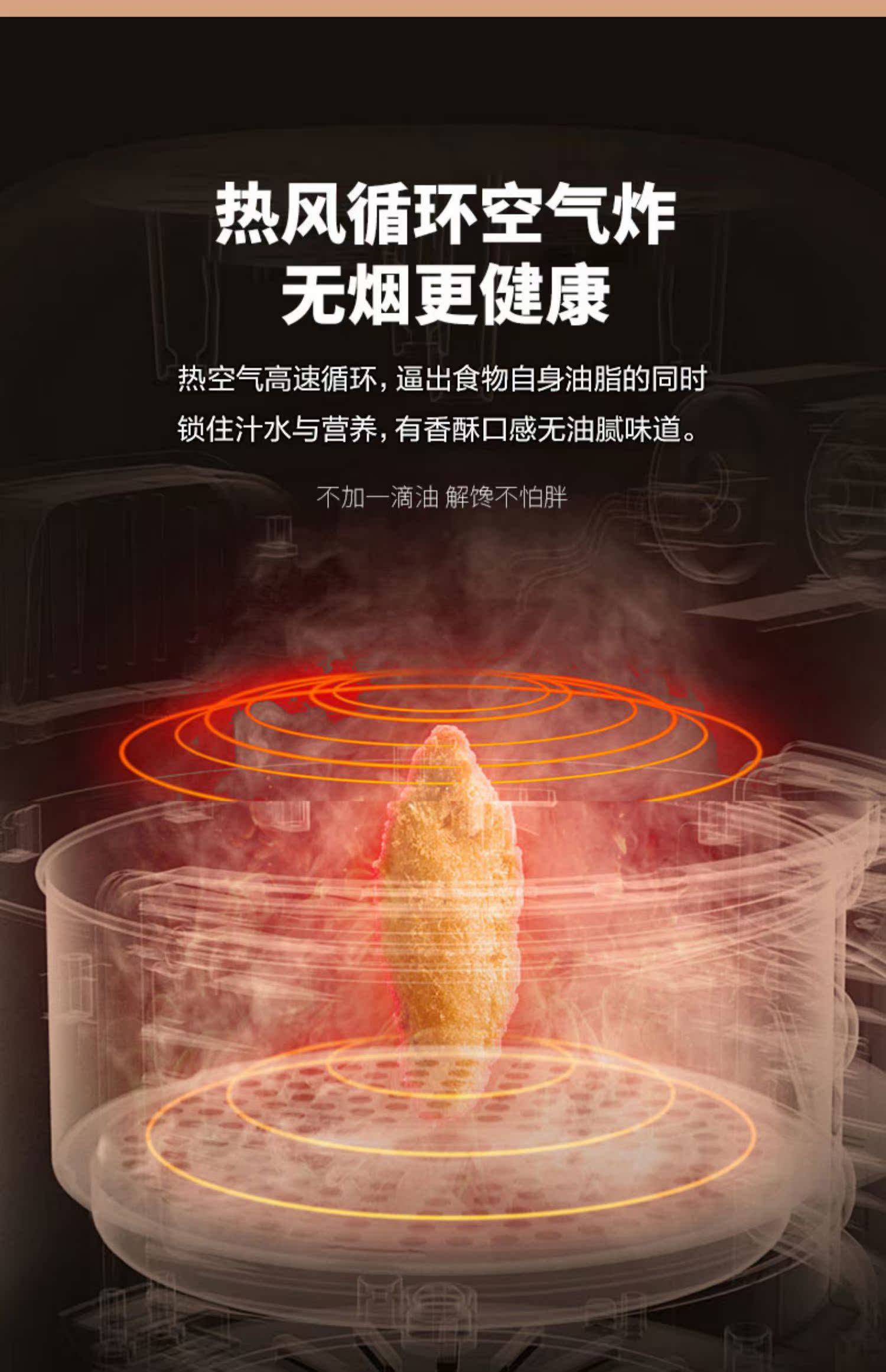 【五年质保,赠运费险】在家轻松自制KFC同款炸鸡薯条!哈丁空气炸锅~360°热空气循环,无油空气炸,低卡饮食无负担!炸制成品金黄,口感酥脆,好吃的停不下来!