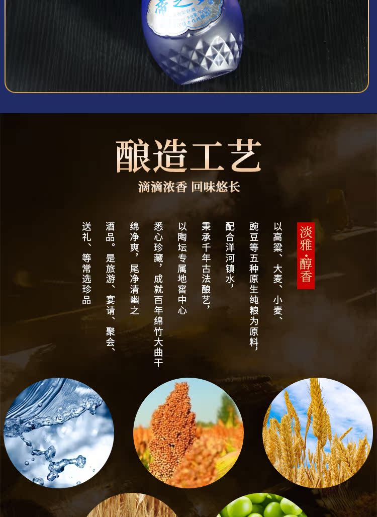 传承千年酿酒工艺,结合现代高新技术,精工细酿,打造优质好酒!酒香浓醇,入口绵柔顺滑,酒后口不干,酒醒不上头!【破损包赔】