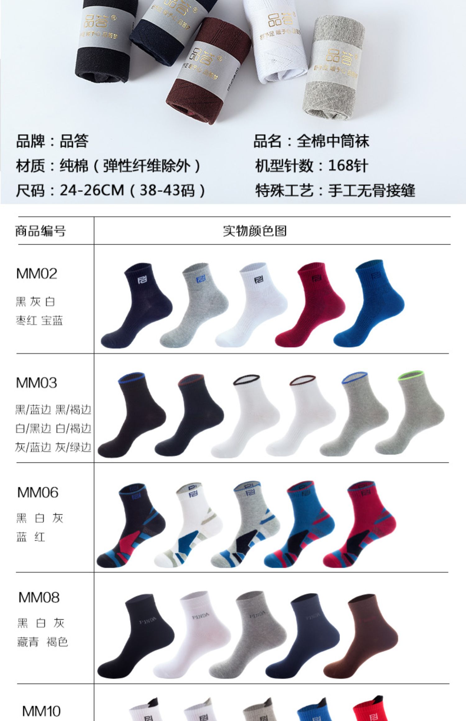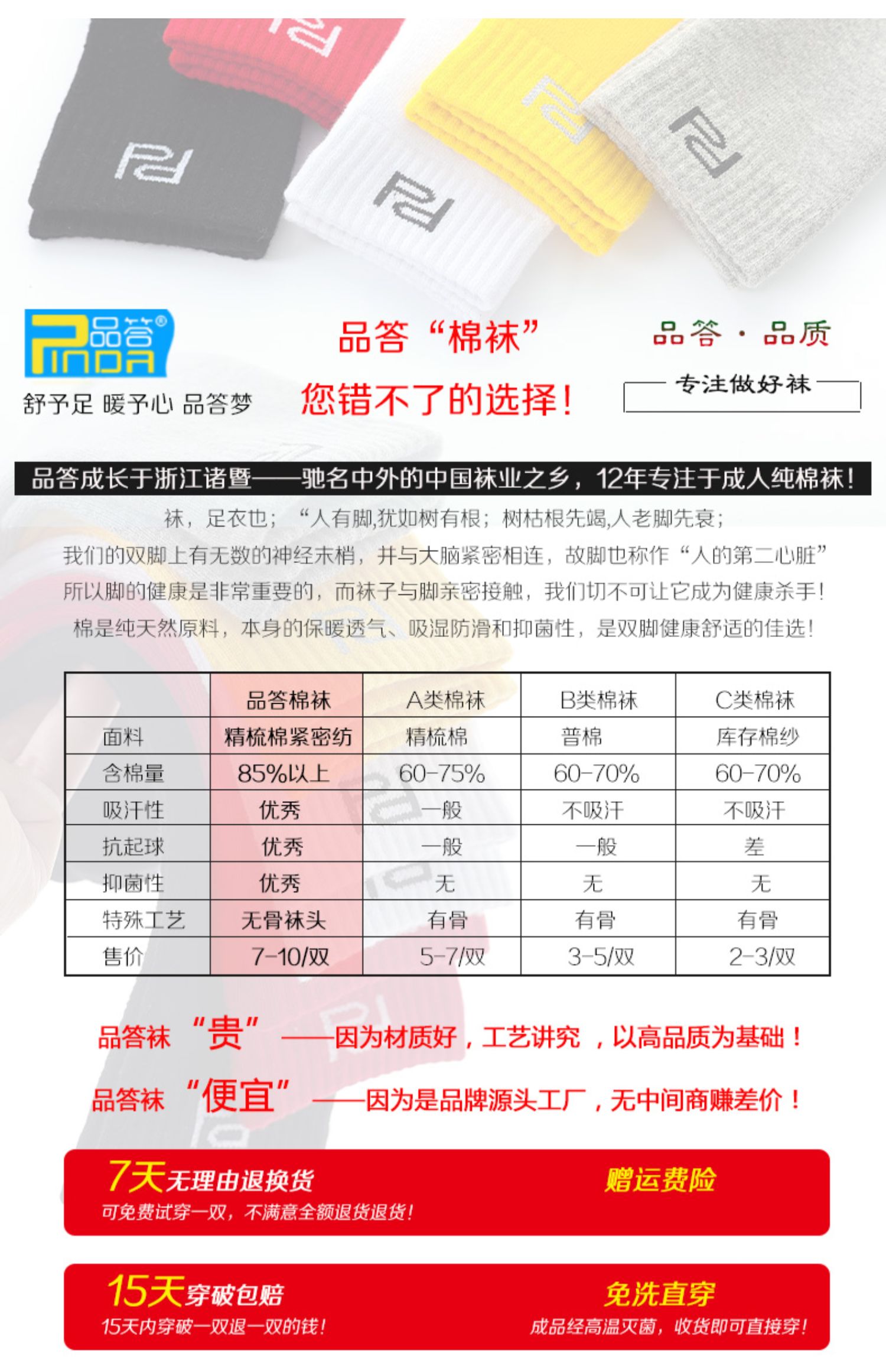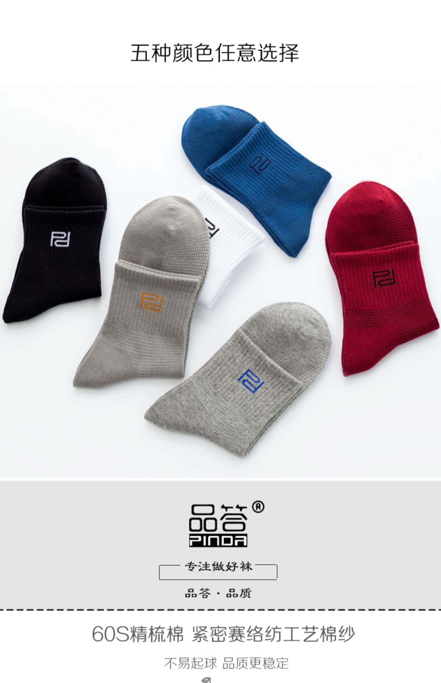 【抗菌棉袜5双装】品答纯棉运动袜中筒秋冬款,新疆精梳棉,吸汗亲肤柔软,舒适透气,立体裁剪,防滑耐磨,弹力袜口不勒脚,呵护您的双脚,从一双好的袜子开始!多色可选,礼盒装.