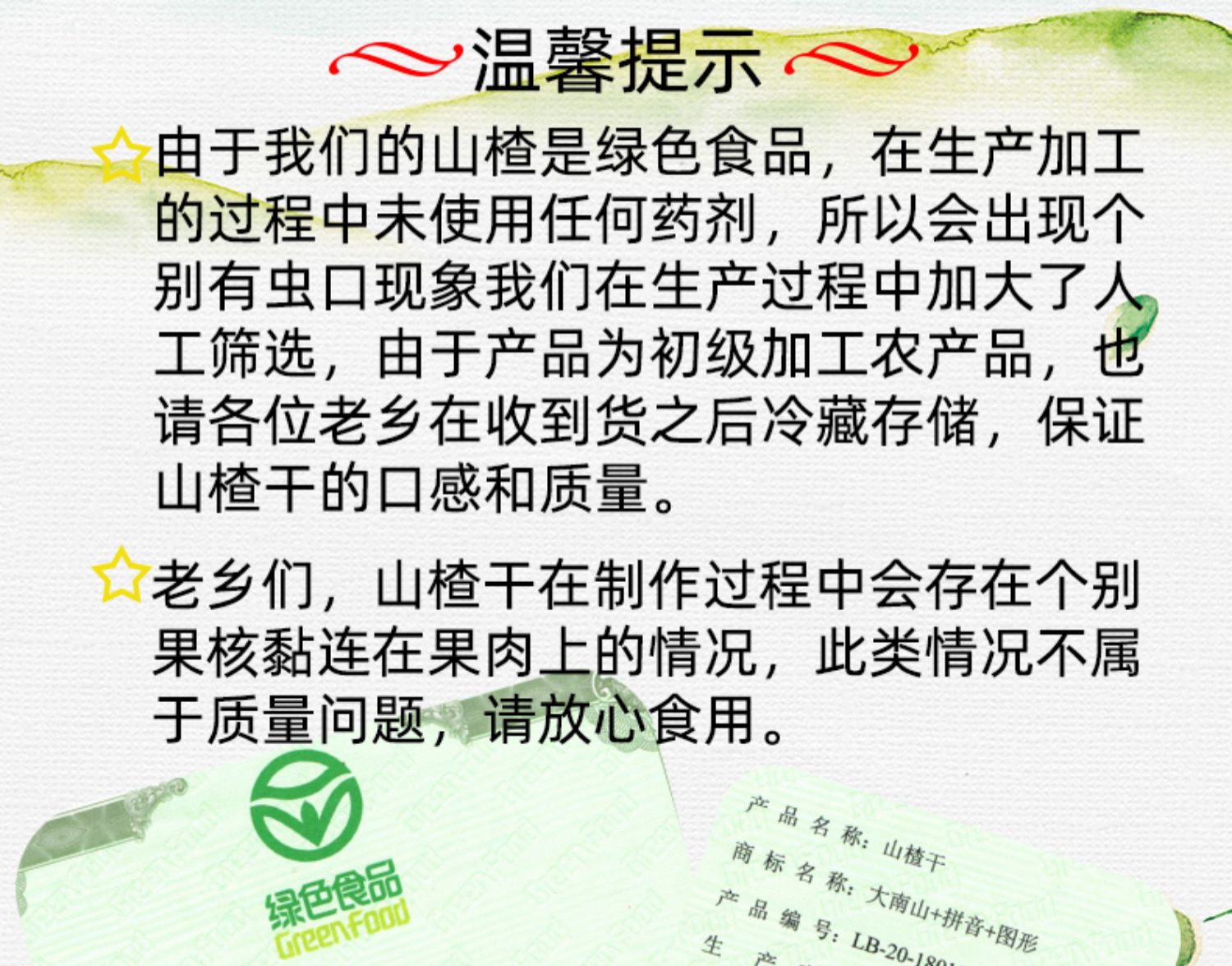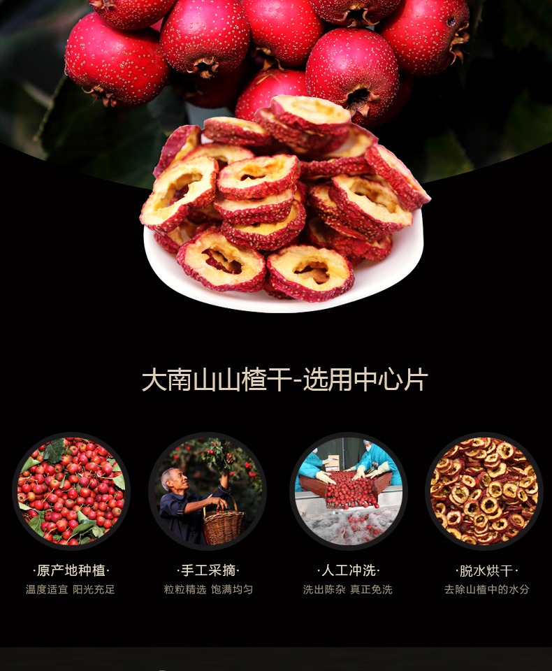 大南山无添加!纯手工挑选,无核中心圈,酸甜适中,清新扑鼻~~手工精选无核山楂干,新鲜制作,颗颗精选,密封包装,泡茶零食皆可,消食开胃。