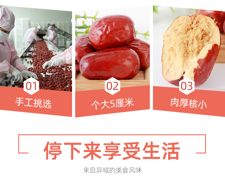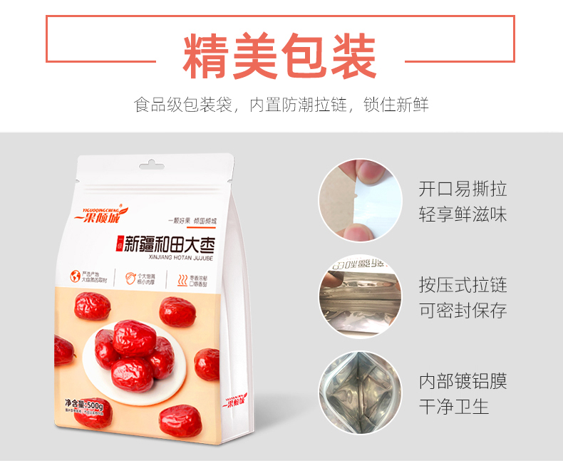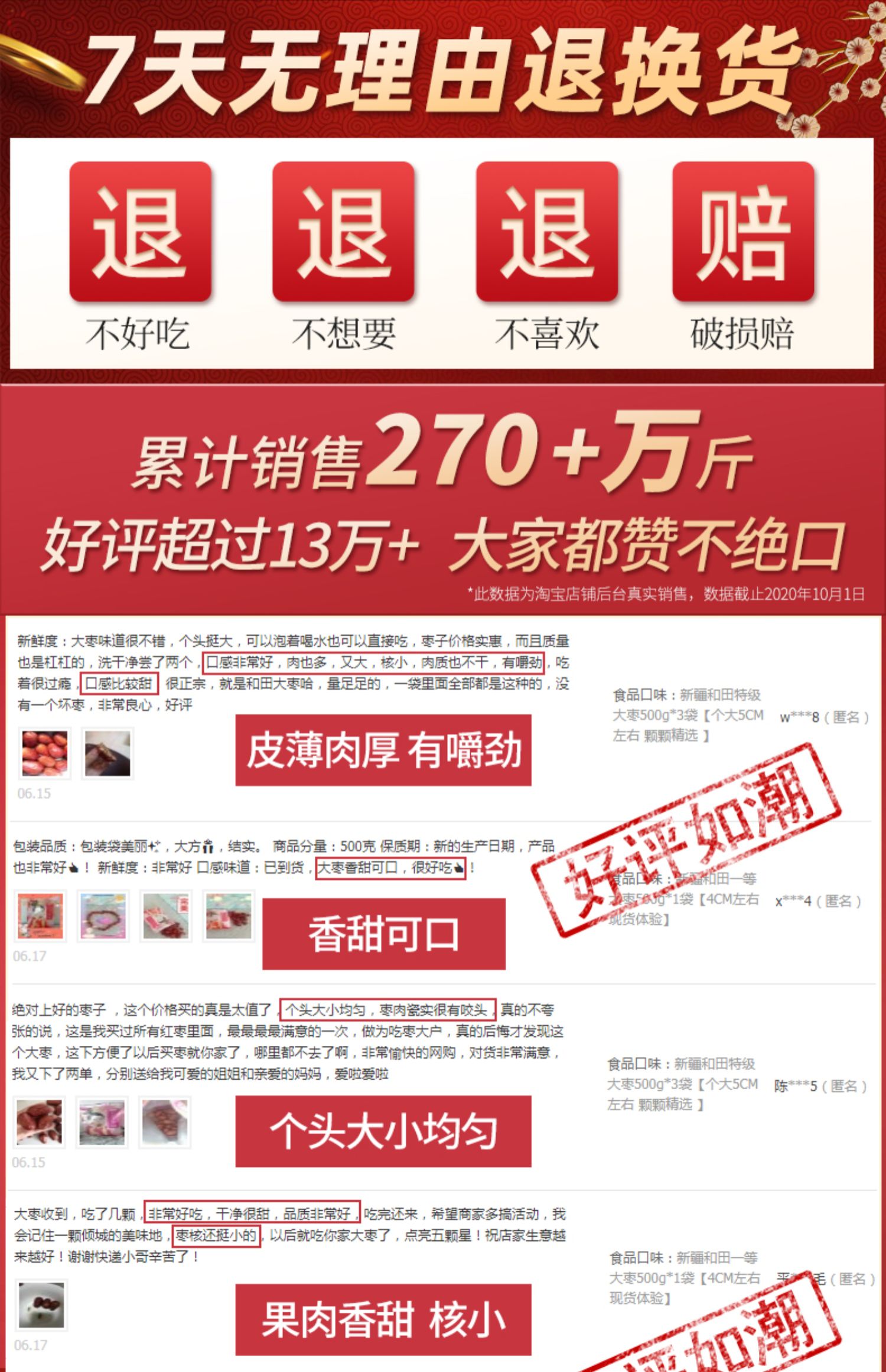 新疆一级免洗和田大枣500g装,源于新疆和田地区,自然生长,和鸡蛋一样大。颗颗精选,营养丰富,补血养气,煲汤煮粥泡水,枣香浓郁,香甜可口,小孩老人的滋补佳品