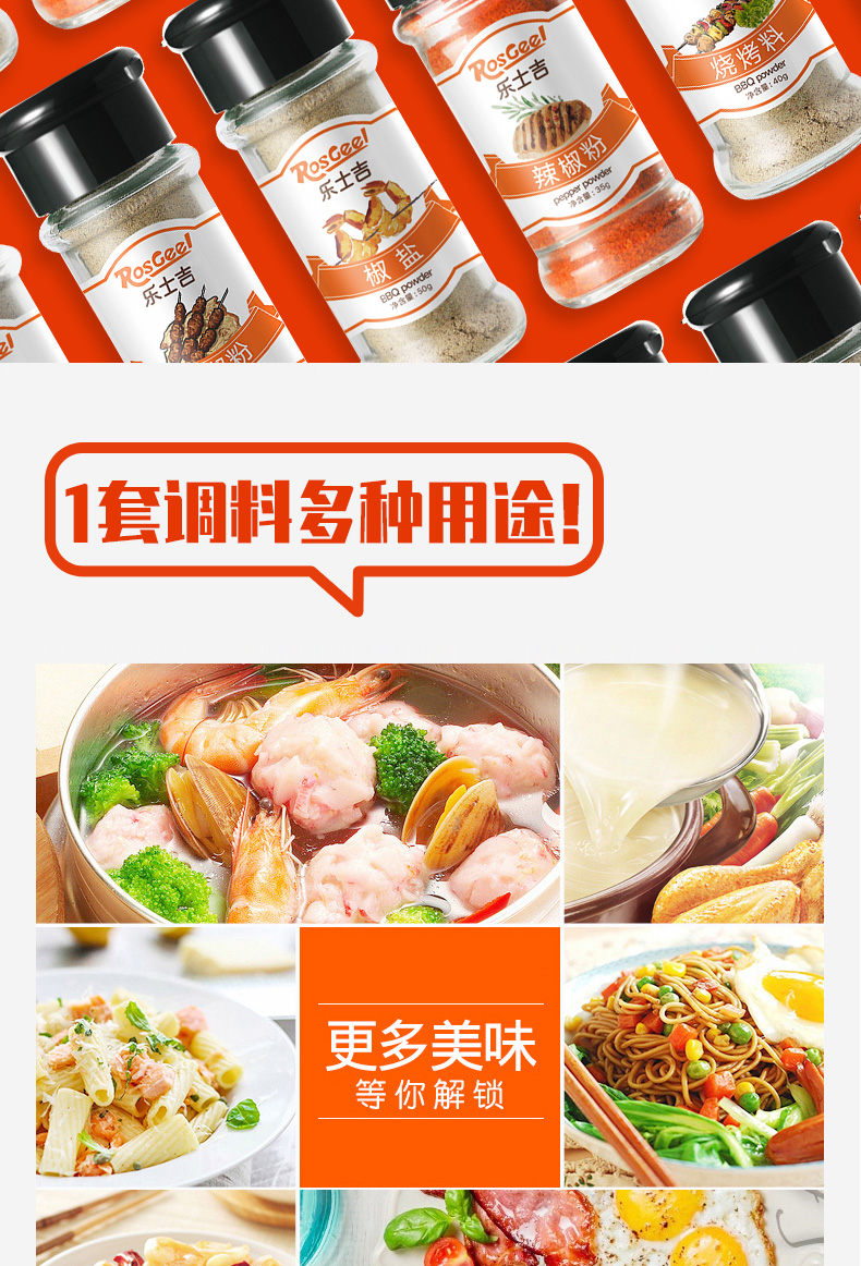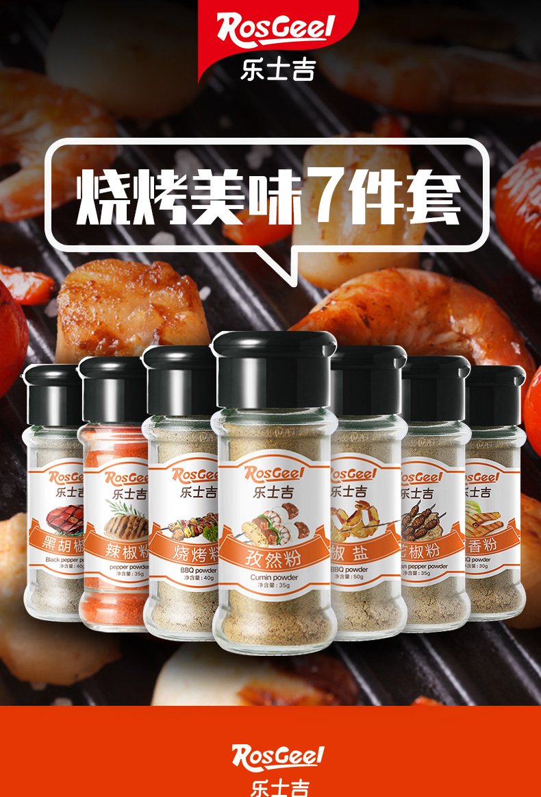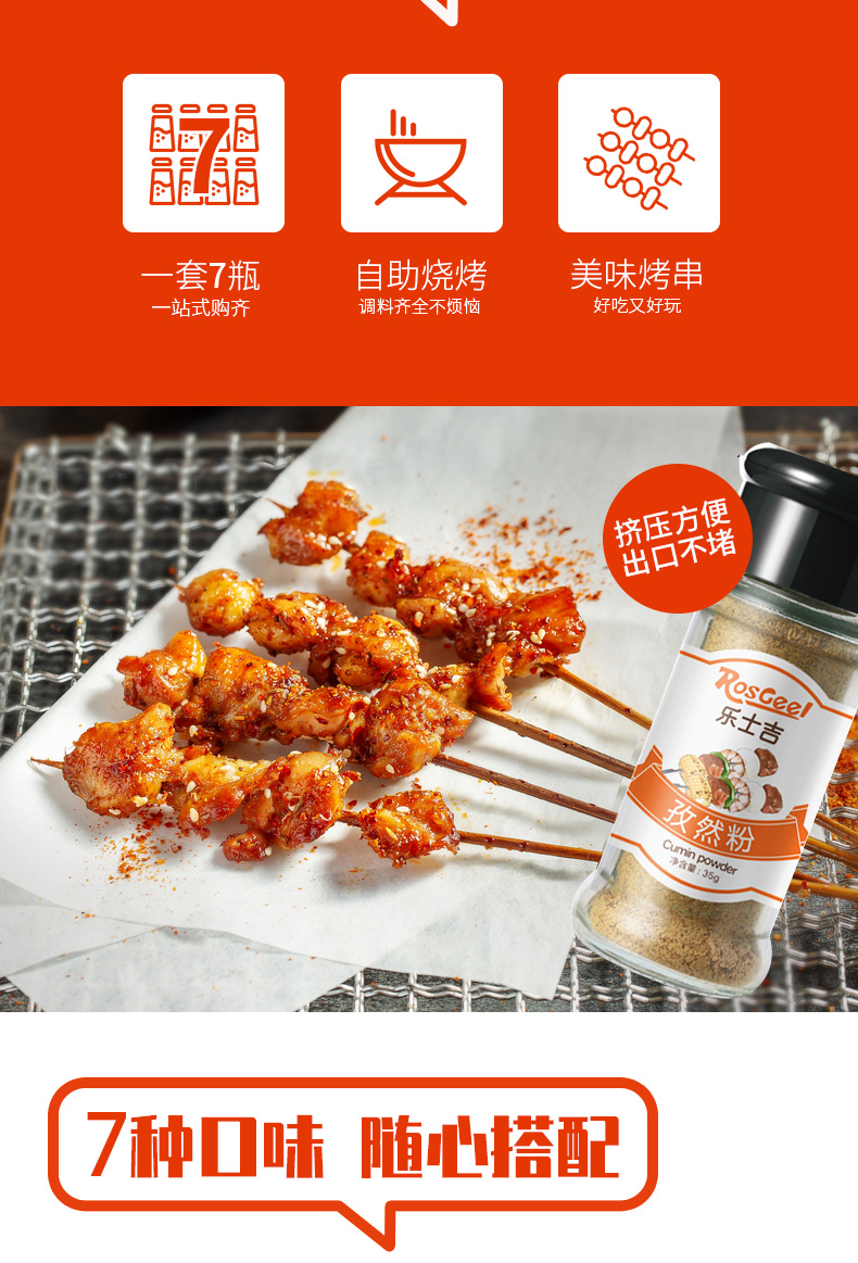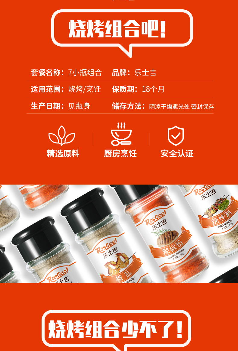 【乐士吉】全套烧烤调料组合装8瓶,口味不重样,随心搭配,地道正宗,烧烤组合,秘制调料,煎炒烤煮,厨房得力助手~样样都行,多种用法,户外烧烤家常必备,一招激发厨房创作灵感。