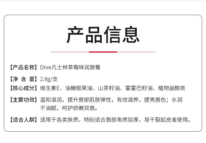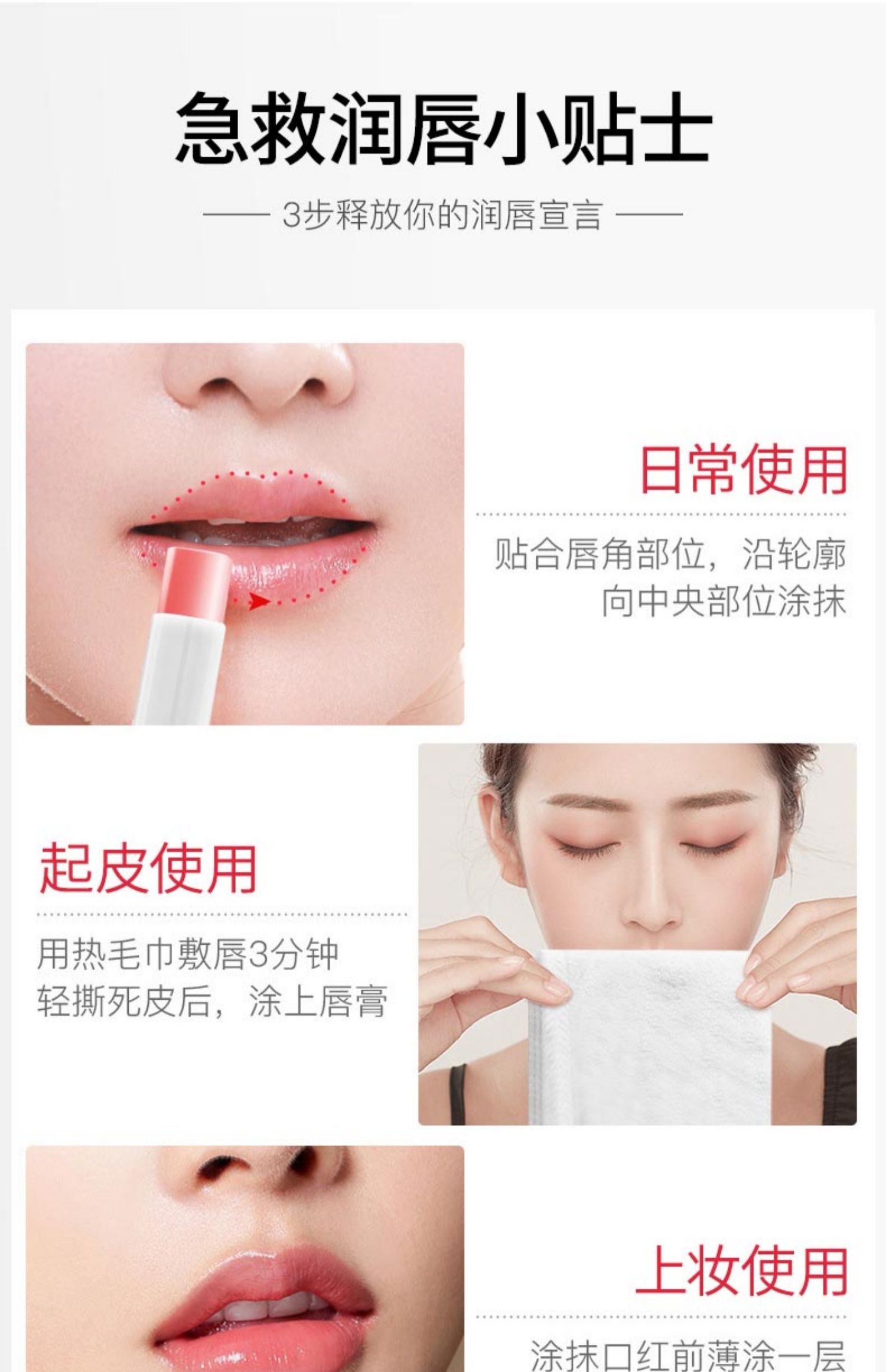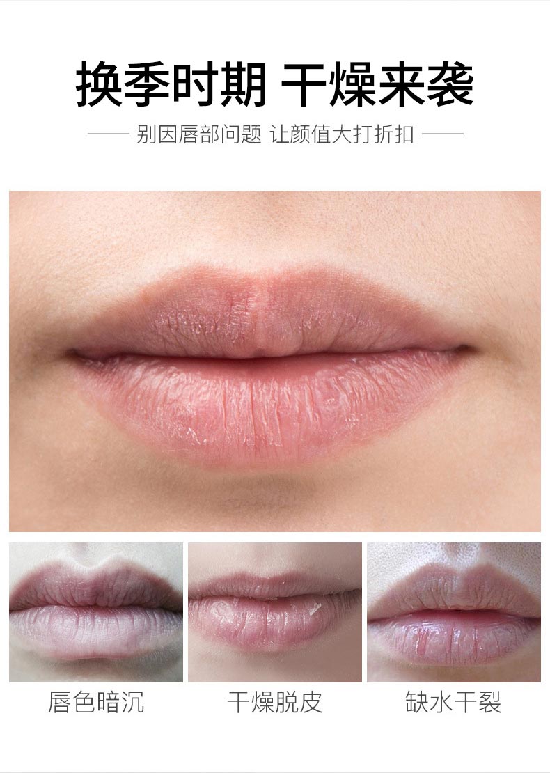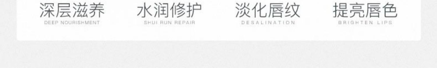 多重功效,一抹滋润,柔嫩修护双唇,淡化唇纹,提亮唇色,让你轻松摆脱“干”尬!双唇更水润!