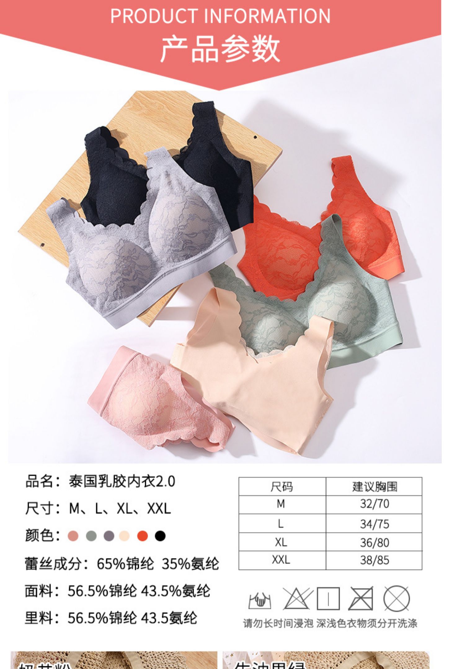 【引用泰国天然乳胶】呵护胸部健康,从远离海绵过敏,远离螨虫细菌,远离发霉变形的传统文胸开始!带胸垫,无钢圈,零束缚,精致蕾丝!女神必备~