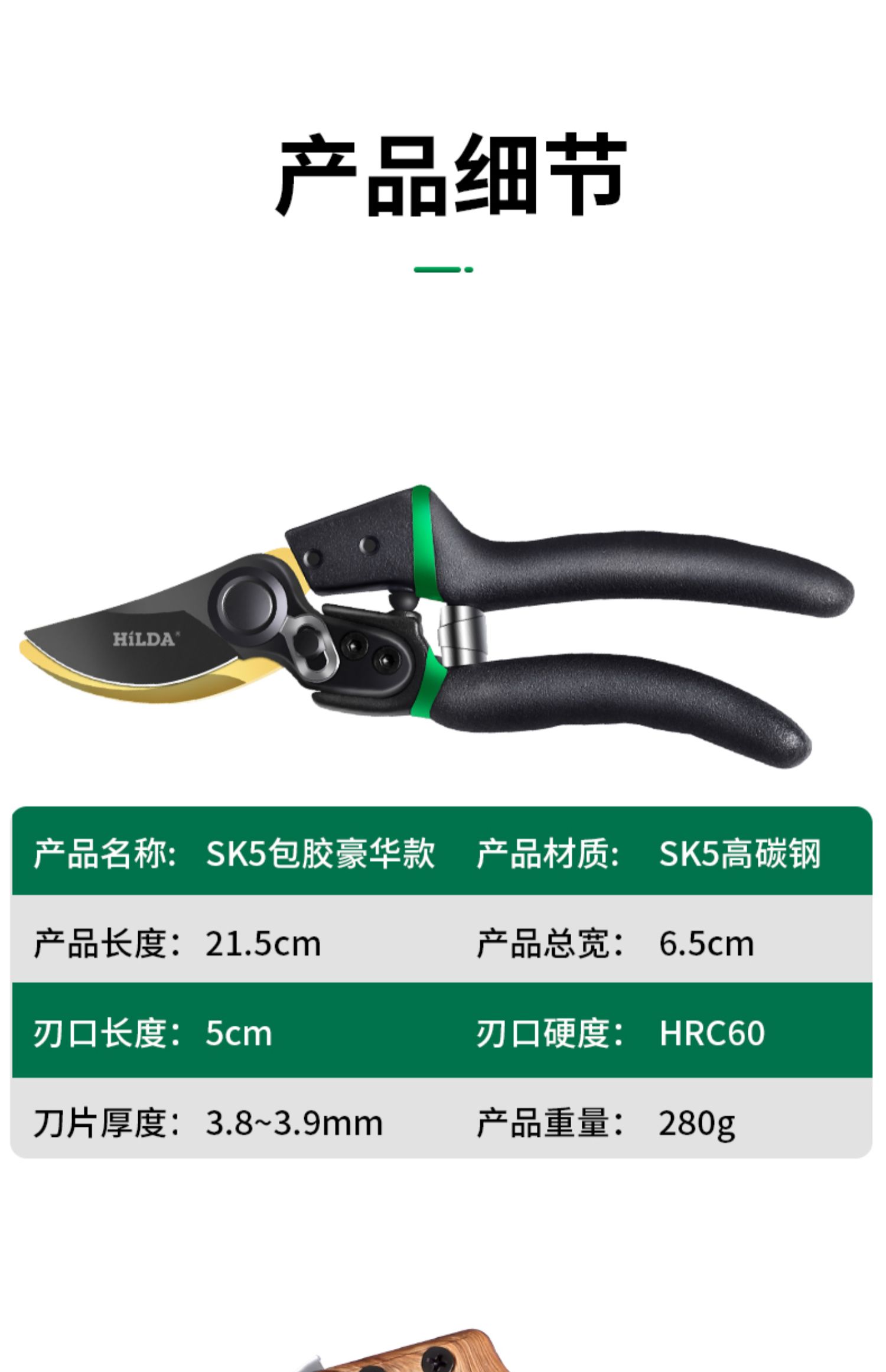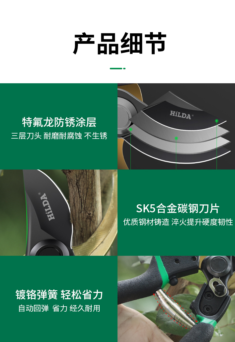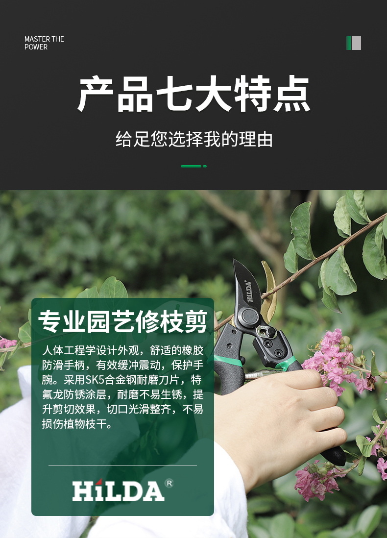 专业园艺修枝剪刀,采用SK5合金钢材制作,刀头表面电镀处理,锋利坚韧轻便,防滑手柄,持久耐用,新设计安全锁扣,轻松体验一剪美快感,修剪园林好帮手~【赠运险费】