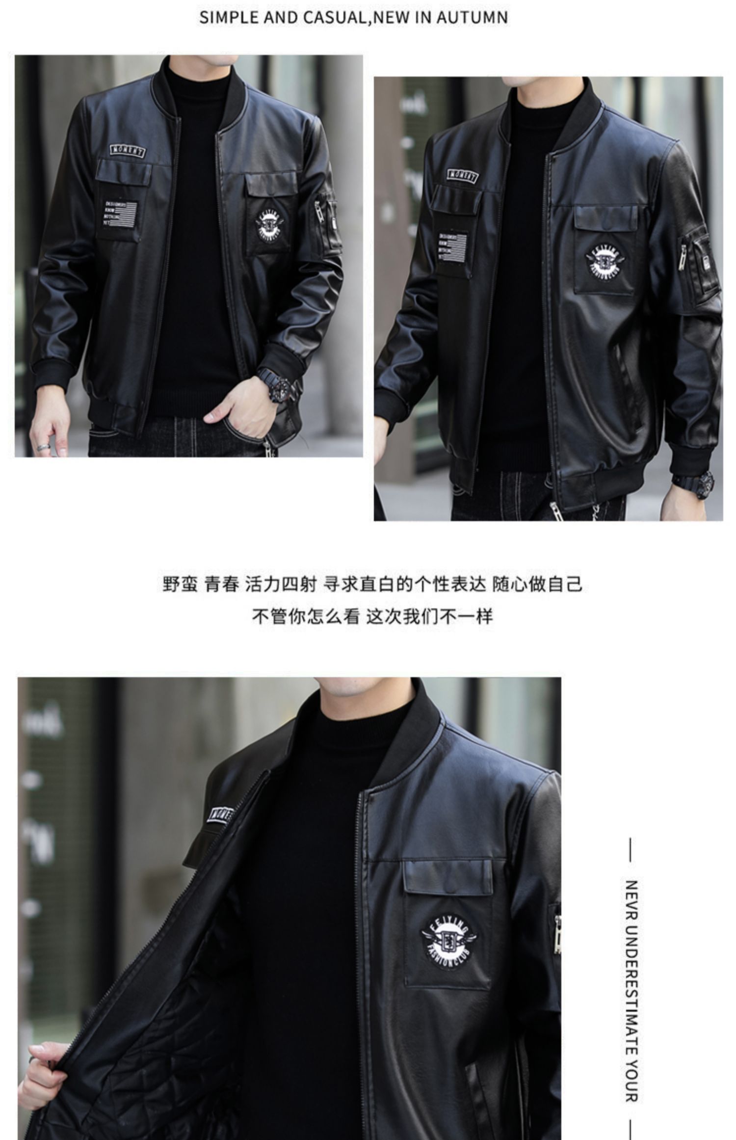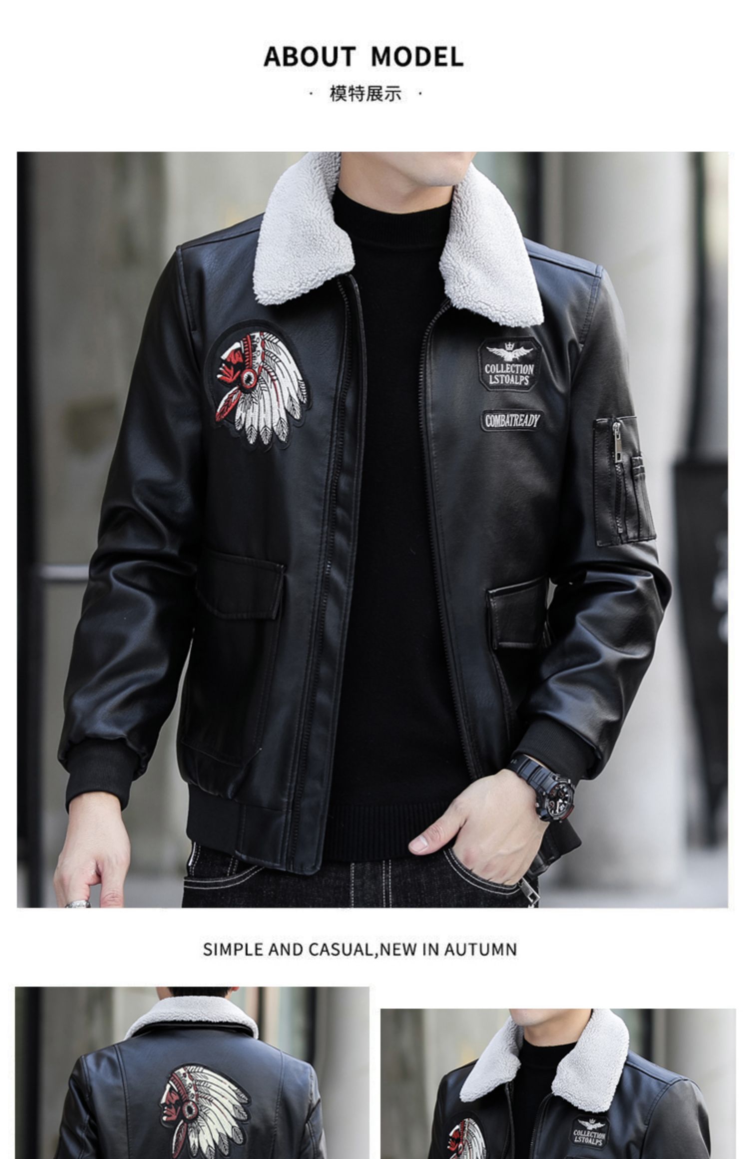 好皮衣源于好皮料,型男皮衣,精选优质PU皮面料,加厚保暖内里,透气不紧绷,无闷热感,可拆卸大毛领,免清洗,耐穿耐磨,,3D立体裁剪,修身版型,,大气又时尚!【赠运费险】