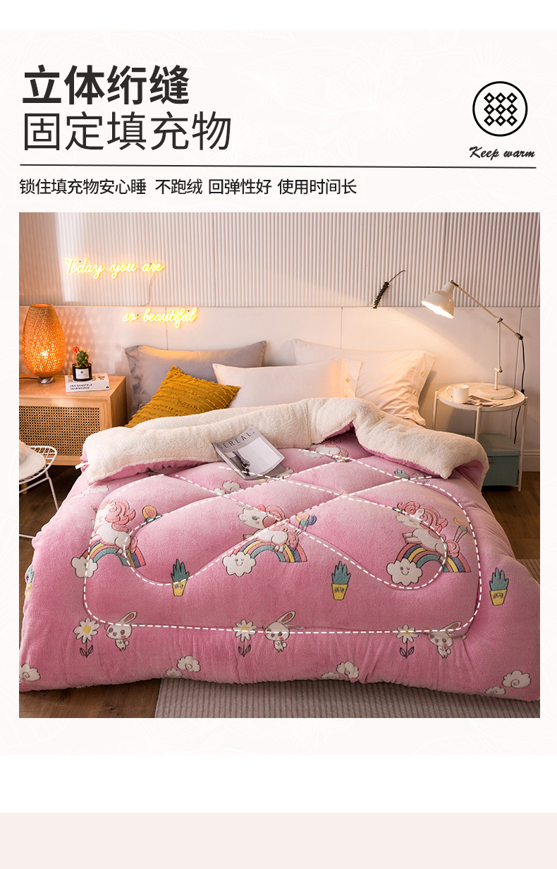 高品质珊瑚绒被子,婴幼儿适用标准,亲肤不刺激,水洗不掉色不掉毛,柔软透气又保暖,采用导电丝,除静电设计,干爽不闷,包揽你一整个冬天的温暖【赠运费险】