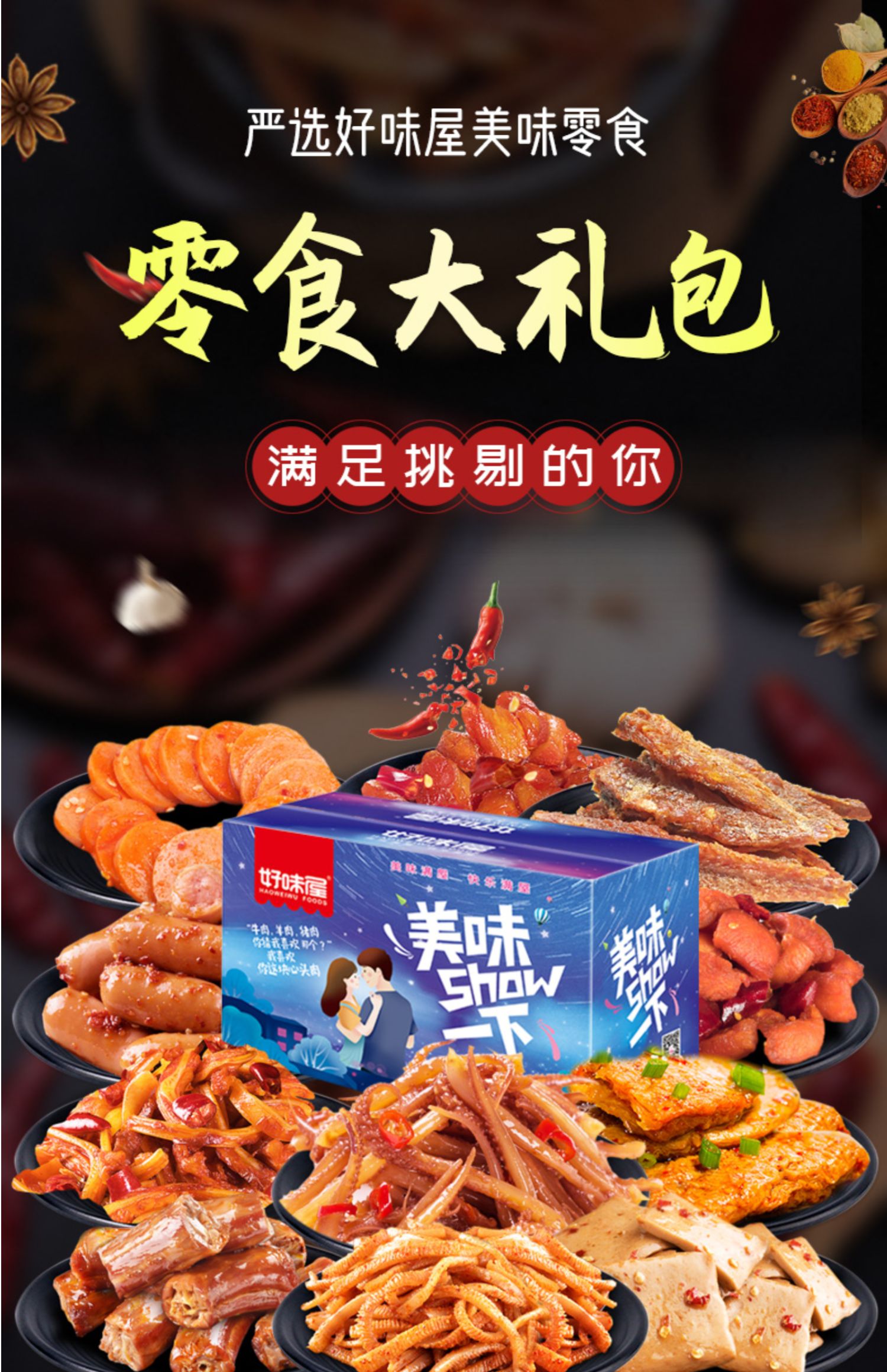 超值60包,11种爆款零食,想要的全都有,美味享不停!肉质鲜美有嚼劲,吃了忘不了,香辣不上头!大口吃肉,满足你的味蕾,