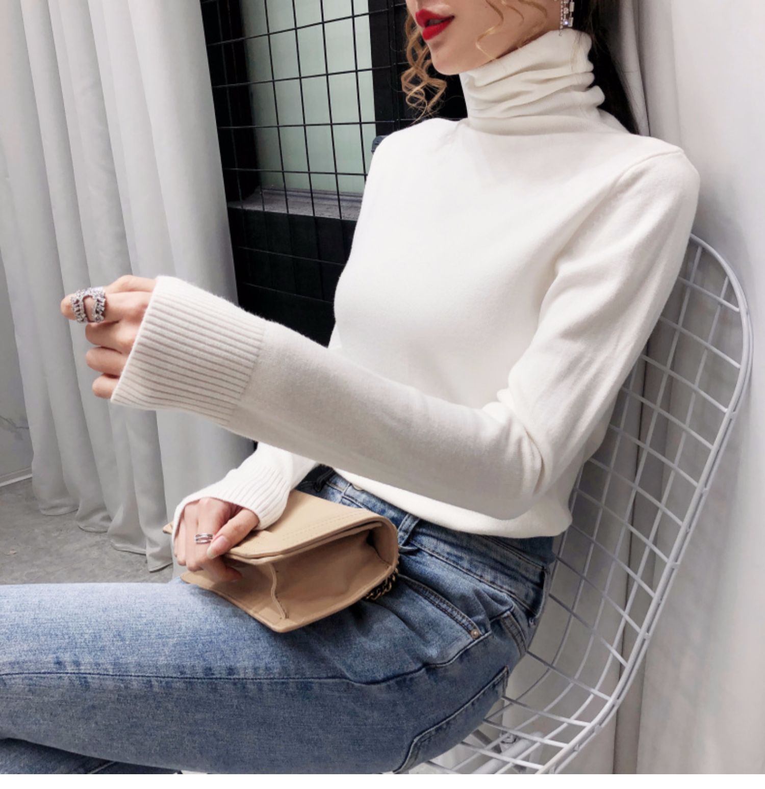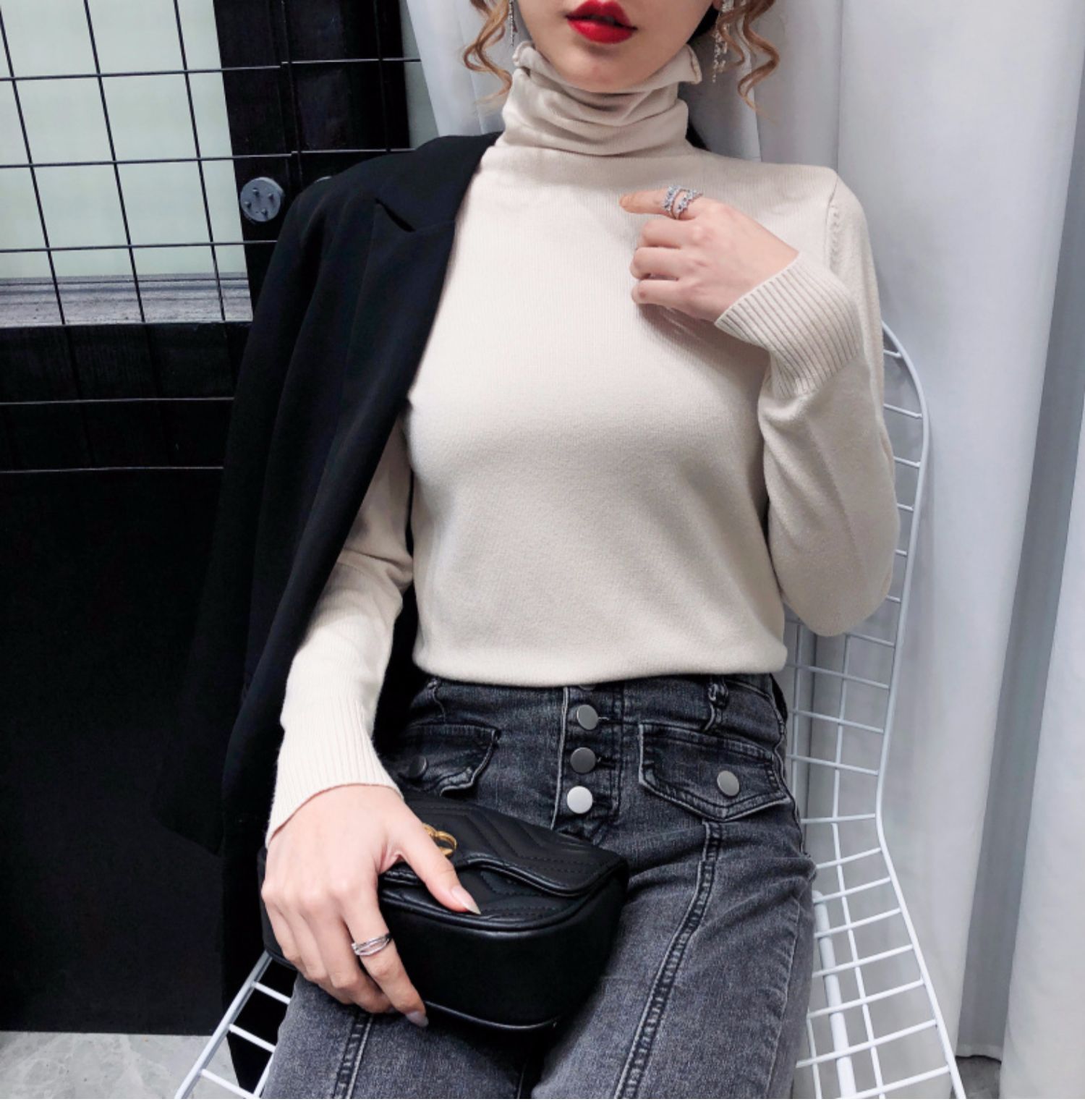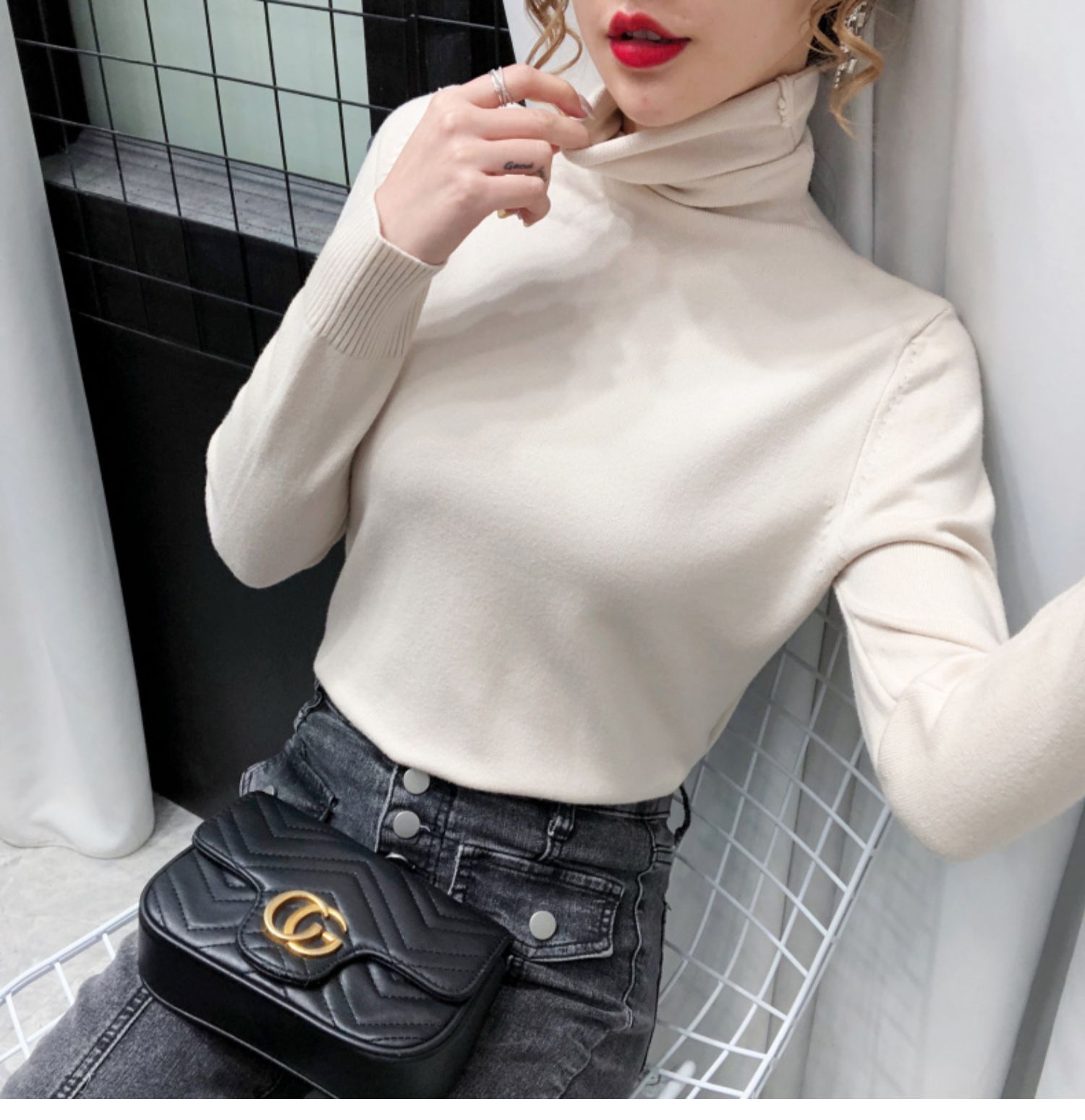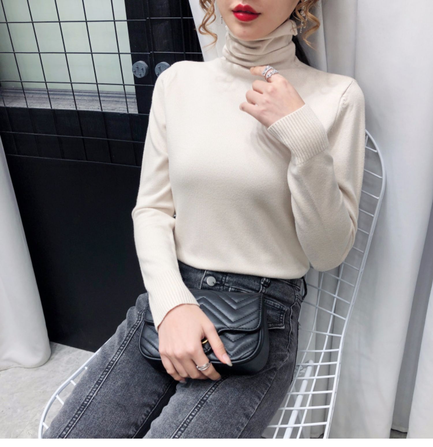 细腻绒感,贴身穿着也舒服,织法平整紧密,螺纹收口充分阻挡寒风,保暖利落,修身版型,加厚高领阳离子面料,毛衣重0.4kg,比普通打底衣保暖2倍,五款颜色都是秋冬的百搭色!
