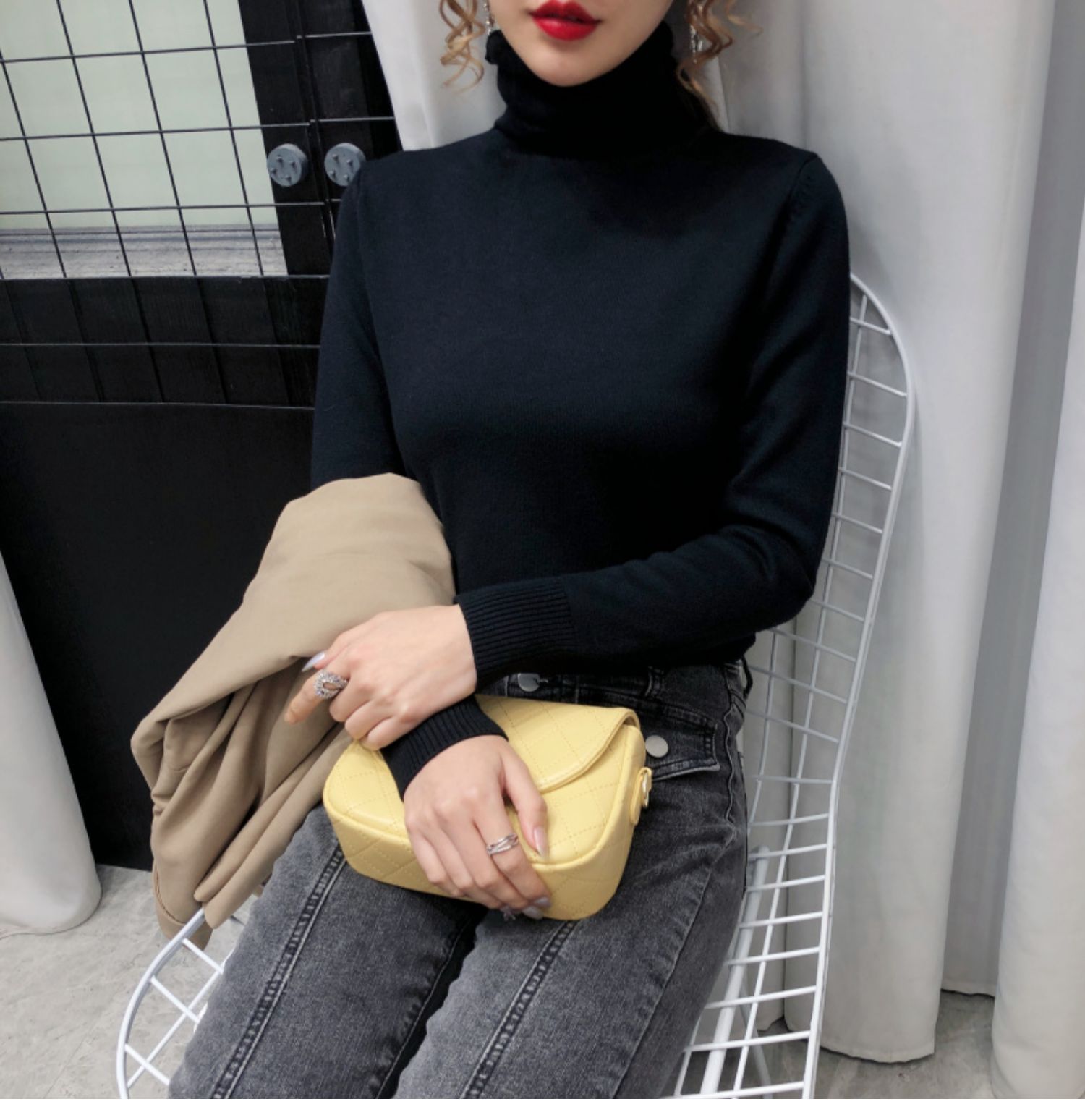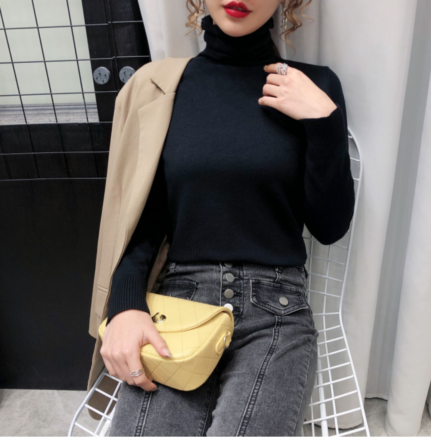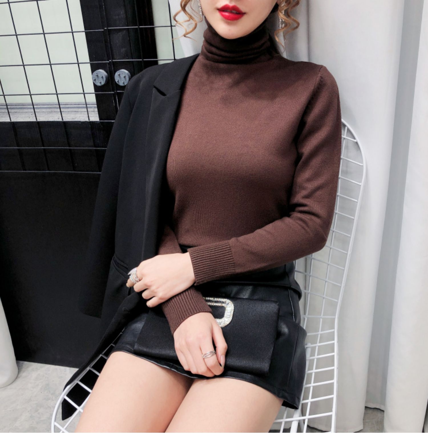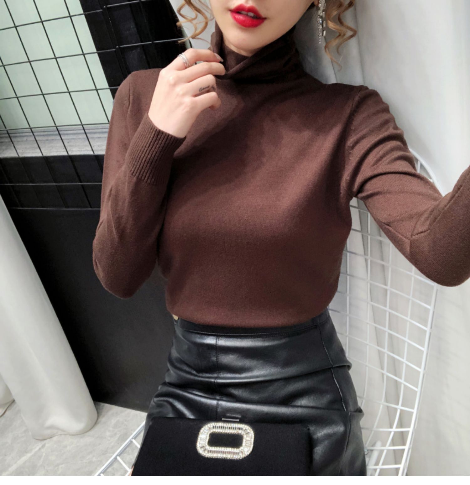 细腻绒感,贴身穿着也舒服,织法平整紧密,螺纹收口充分阻挡寒风,保暖利落,修身版型,加厚高领阳离子面料,毛衣重0.4kg,比普通打底衣保暖2倍,五款颜色都是秋冬的百搭色!