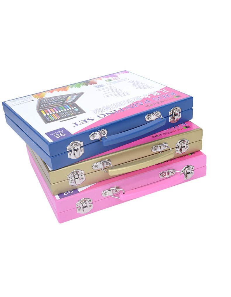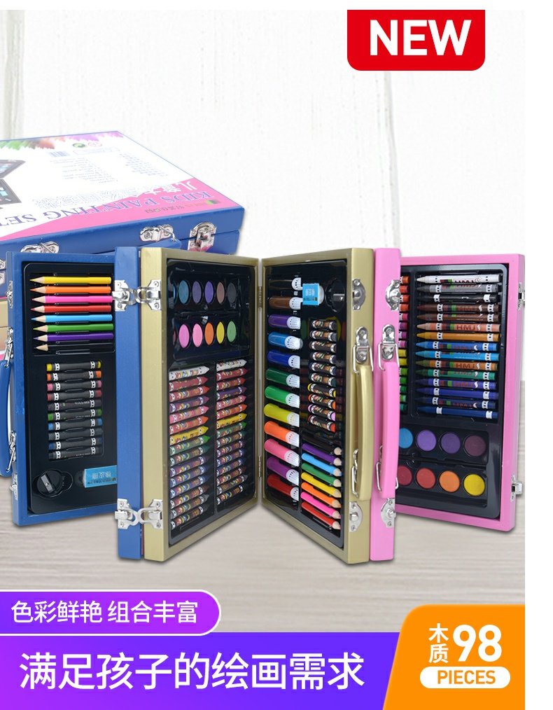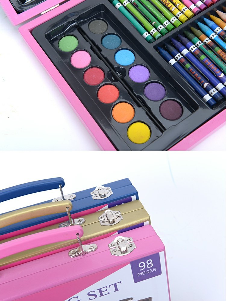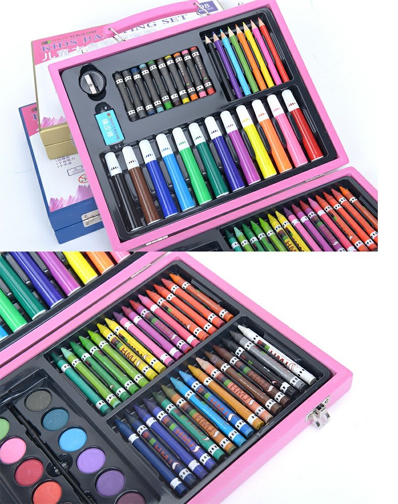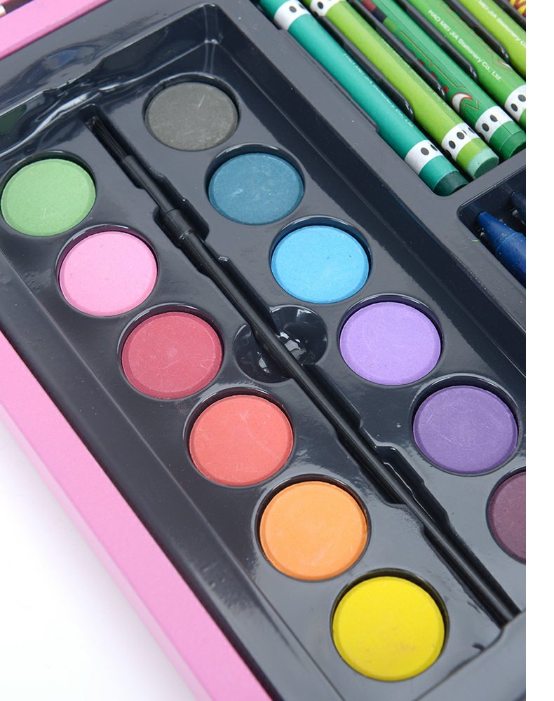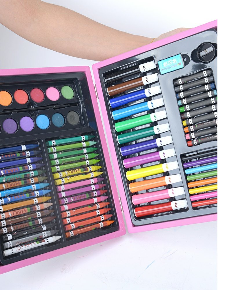 环保材质全新pvc,远离过敏、红肿的骚扰。套装包含:水彩笔、蜡笔、油画棒、彩色铅笔、颜料、直尺、铅笔、橡皮、卷笔刀、塑料剪刀、颜色料刷、颜料托盘、海绵、回形针。让宝贝拥有一个画家梦~