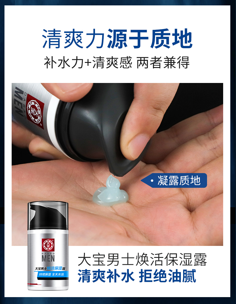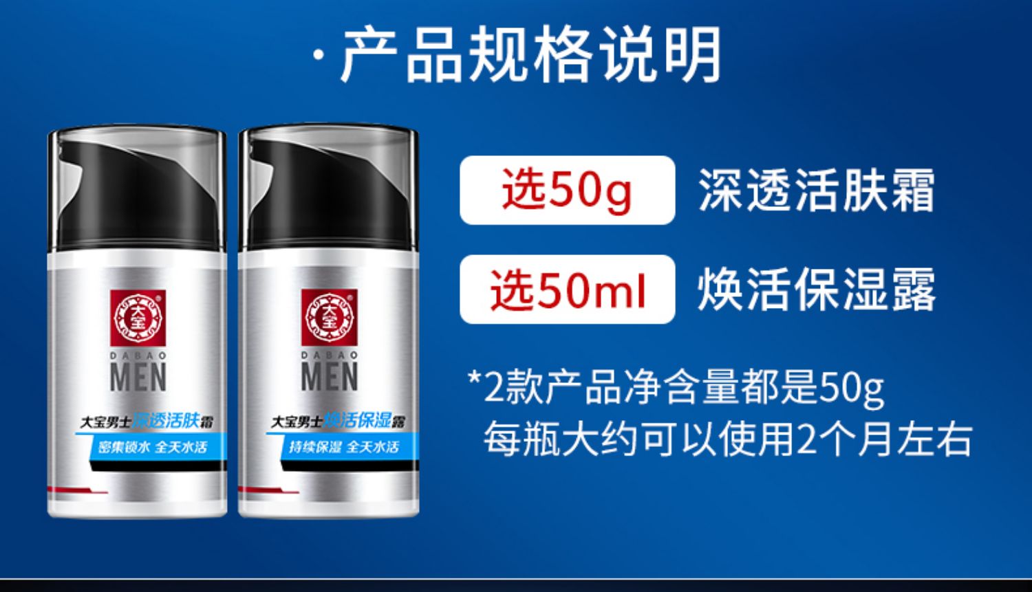 【赠送洁面50g,买2加送唇膏】张一山代言,男士专用,长效保湿,水润护肤,平衡水油,两种功能可选,应对男士各种肌肤问题,真情永不变,大宝天天见