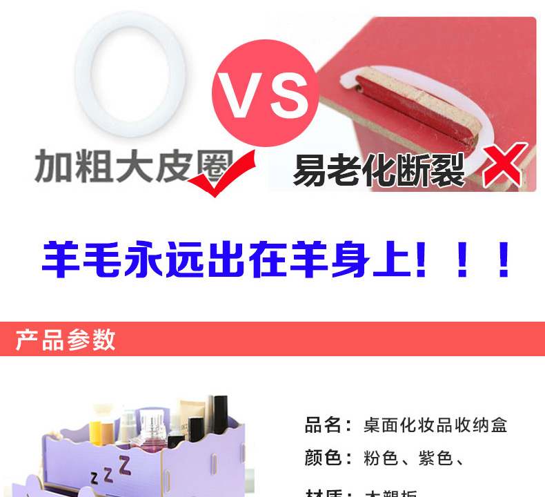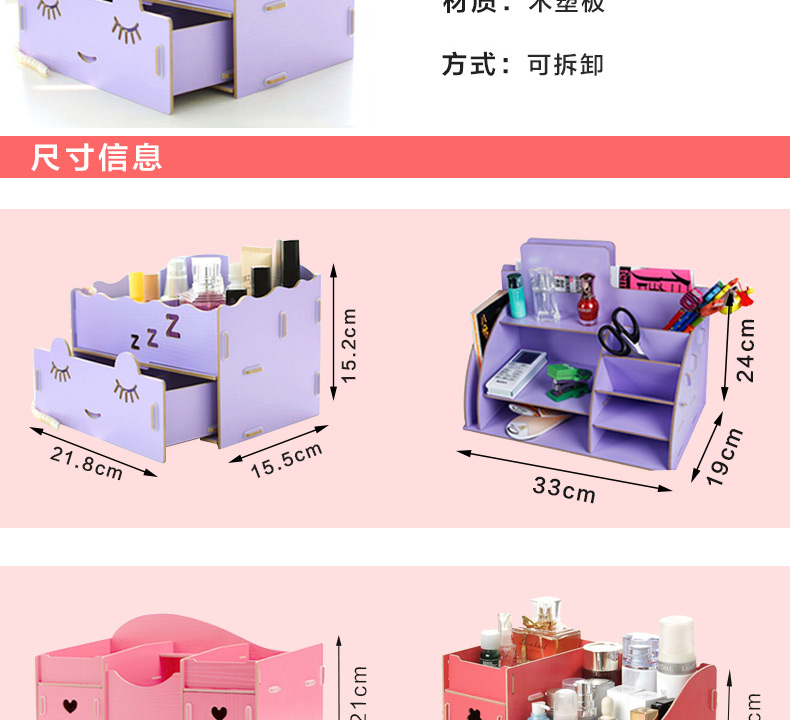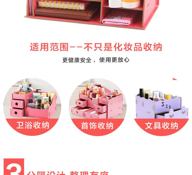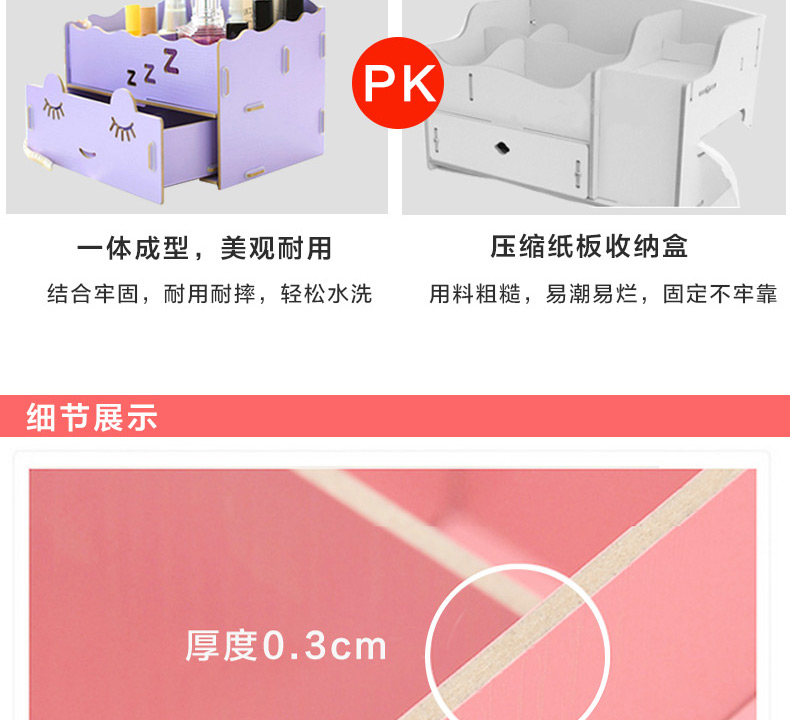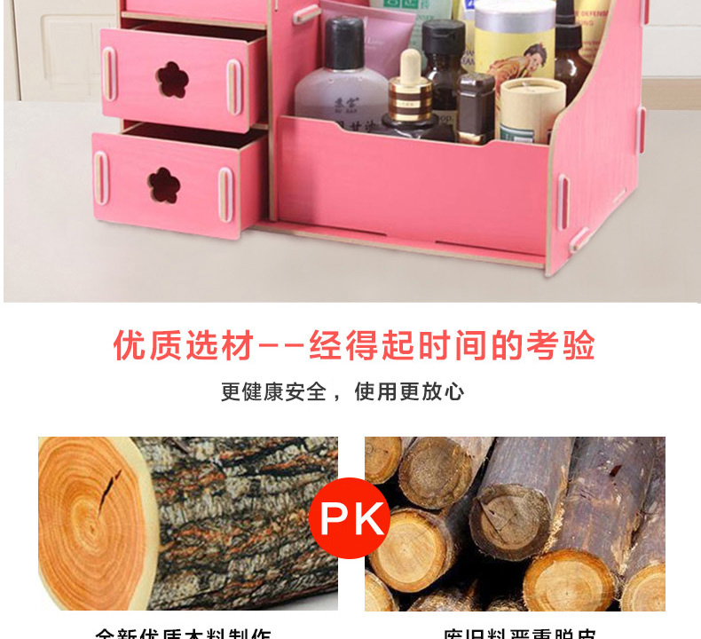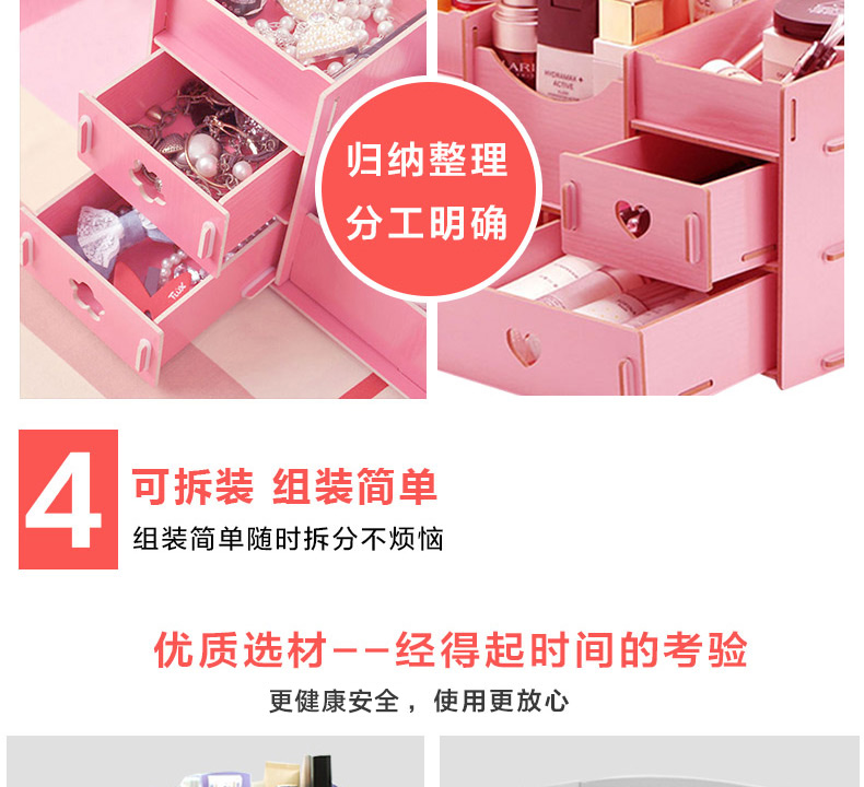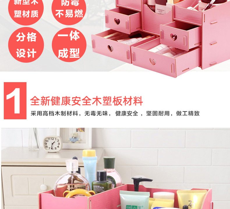 好看精致又实用~少女人手1个的,抽屉式化妆品收纳盒!粉嫩颜值,超少女心~木塑材质+分隔设计,随心收纳方便又整洁~好拿取,放化妆品,文具等,小饰品等超赞!