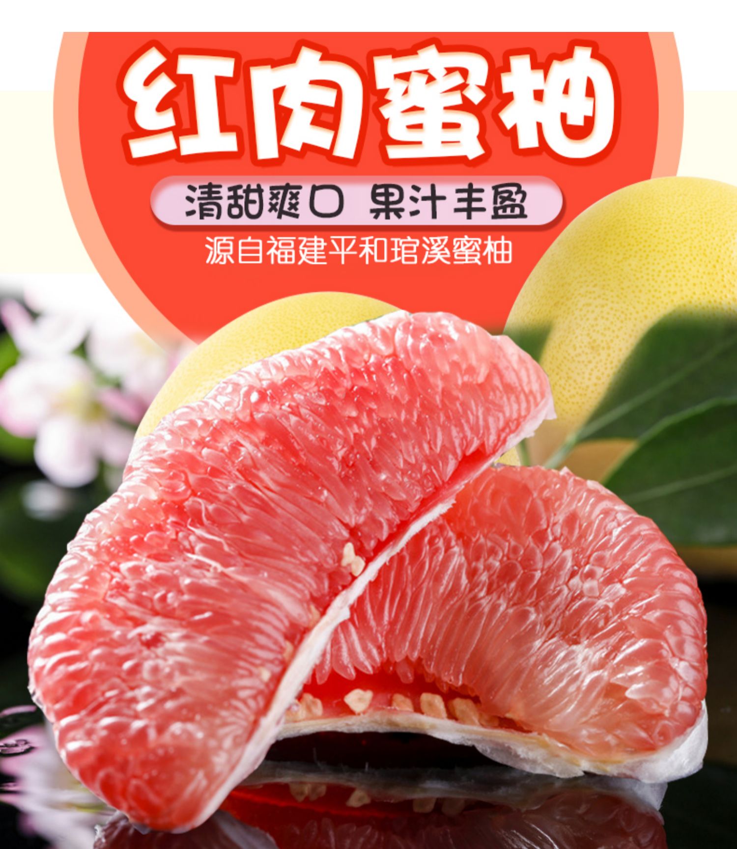 红心蜜柚,又名红肉蜜柚、红心柚、红肉柚、血柚其果肉饱满,味甜多汁,鲜嫩美味!
