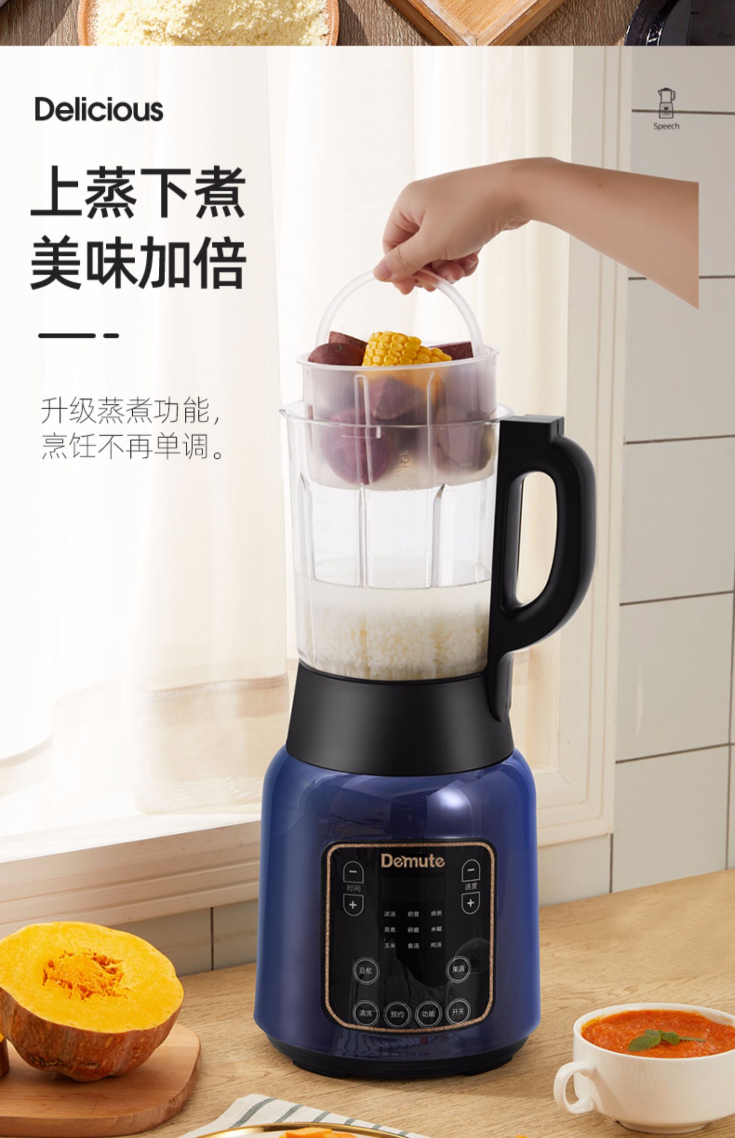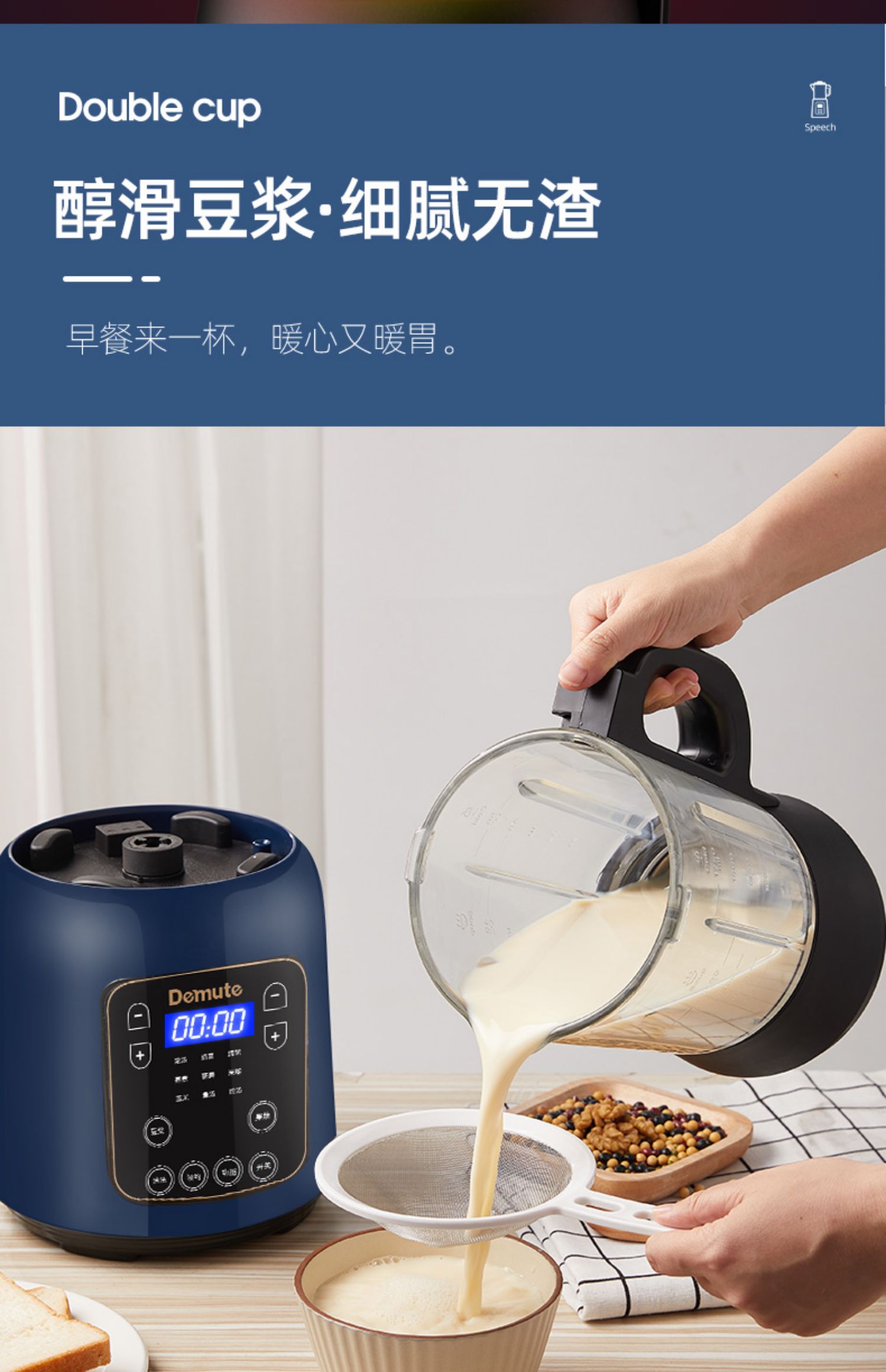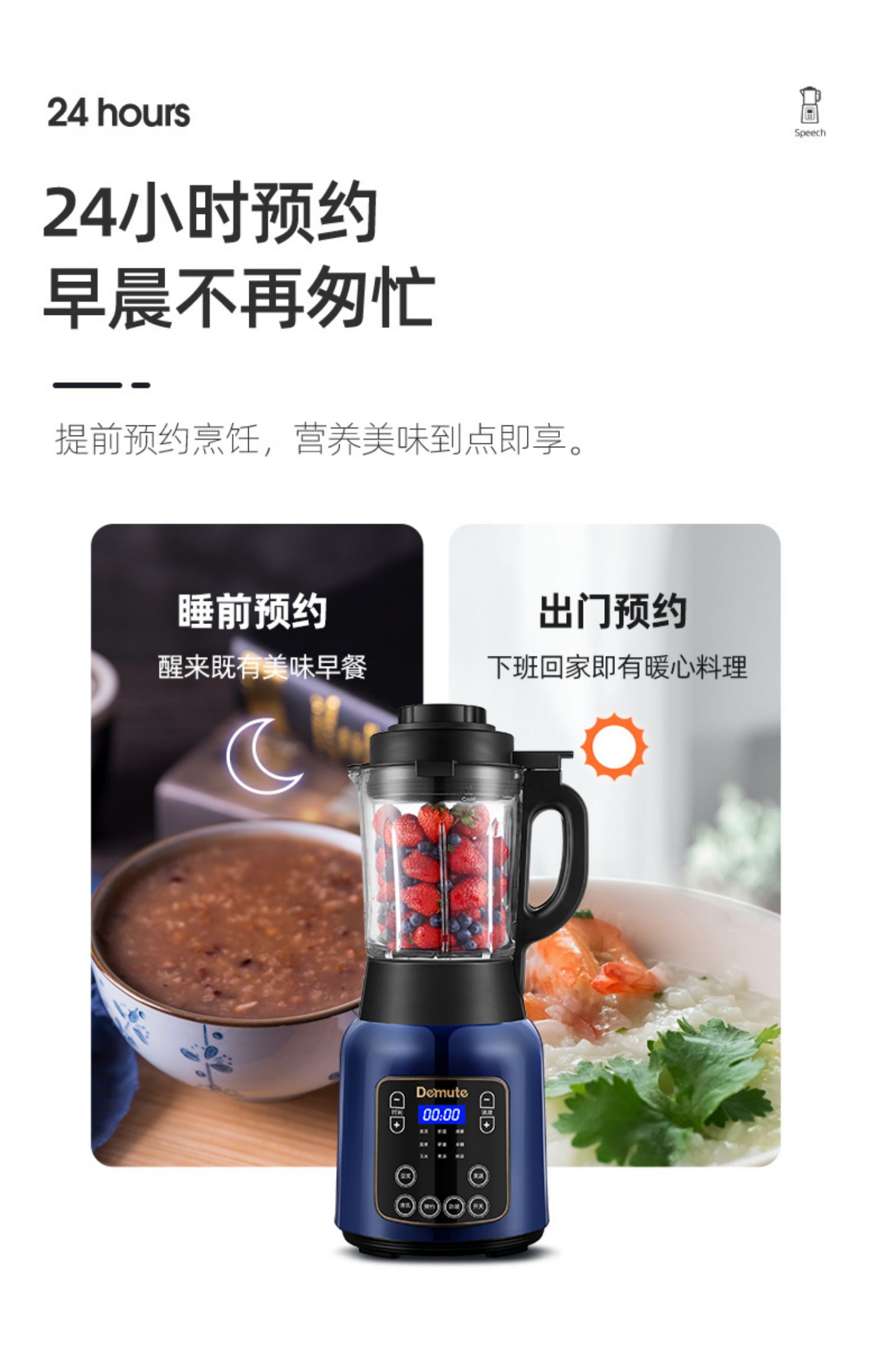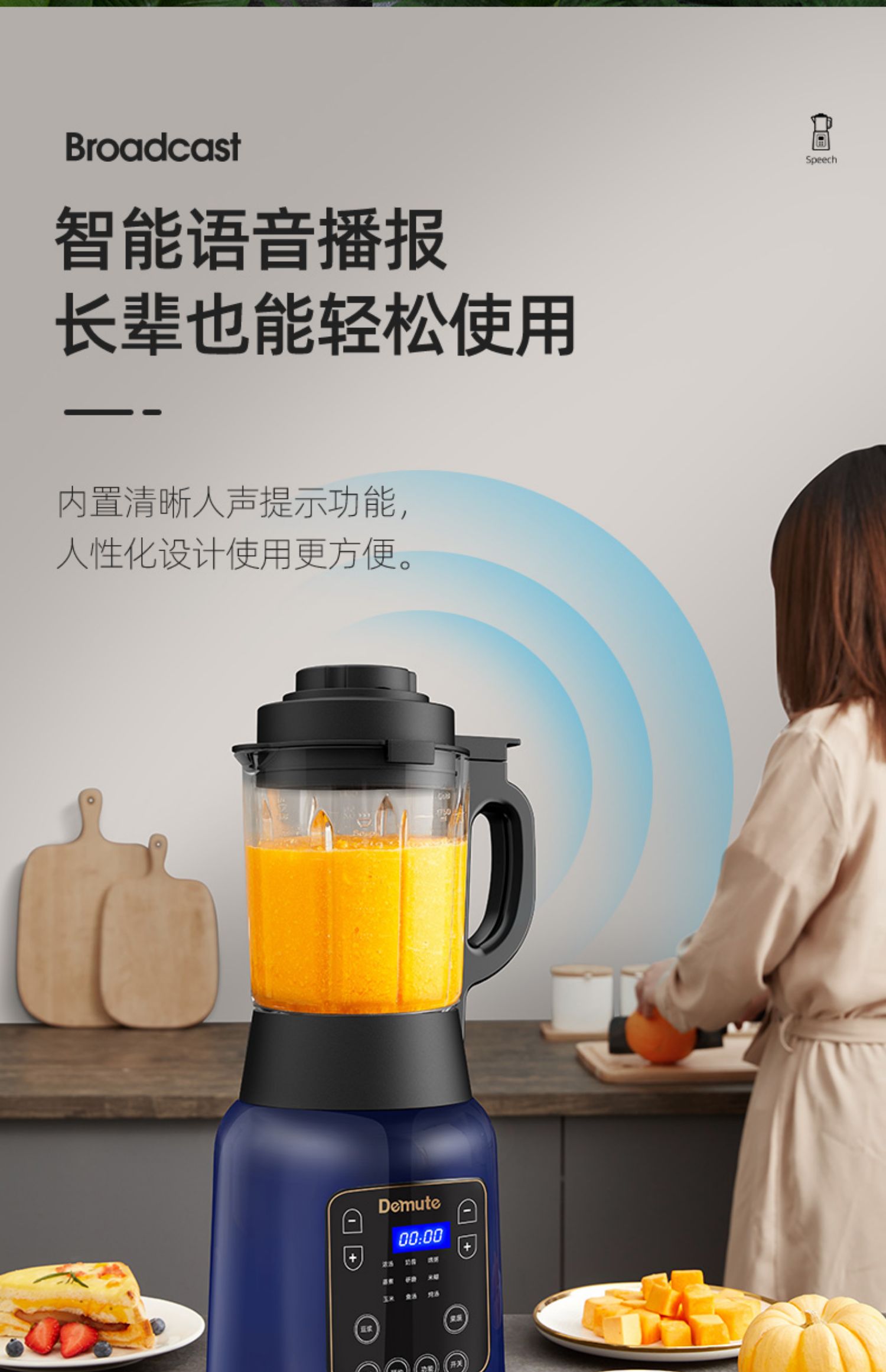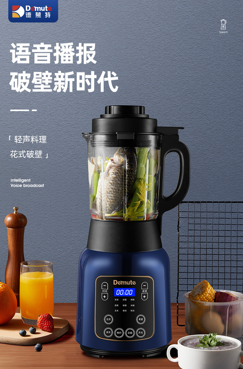 【智能语音播报】德慕特破壁机,家用多功能,无渣免滤,真正细腻,释放食物营养。智能预约,美食随享,语音播报提示,自动清洗,长辈也能轻松用