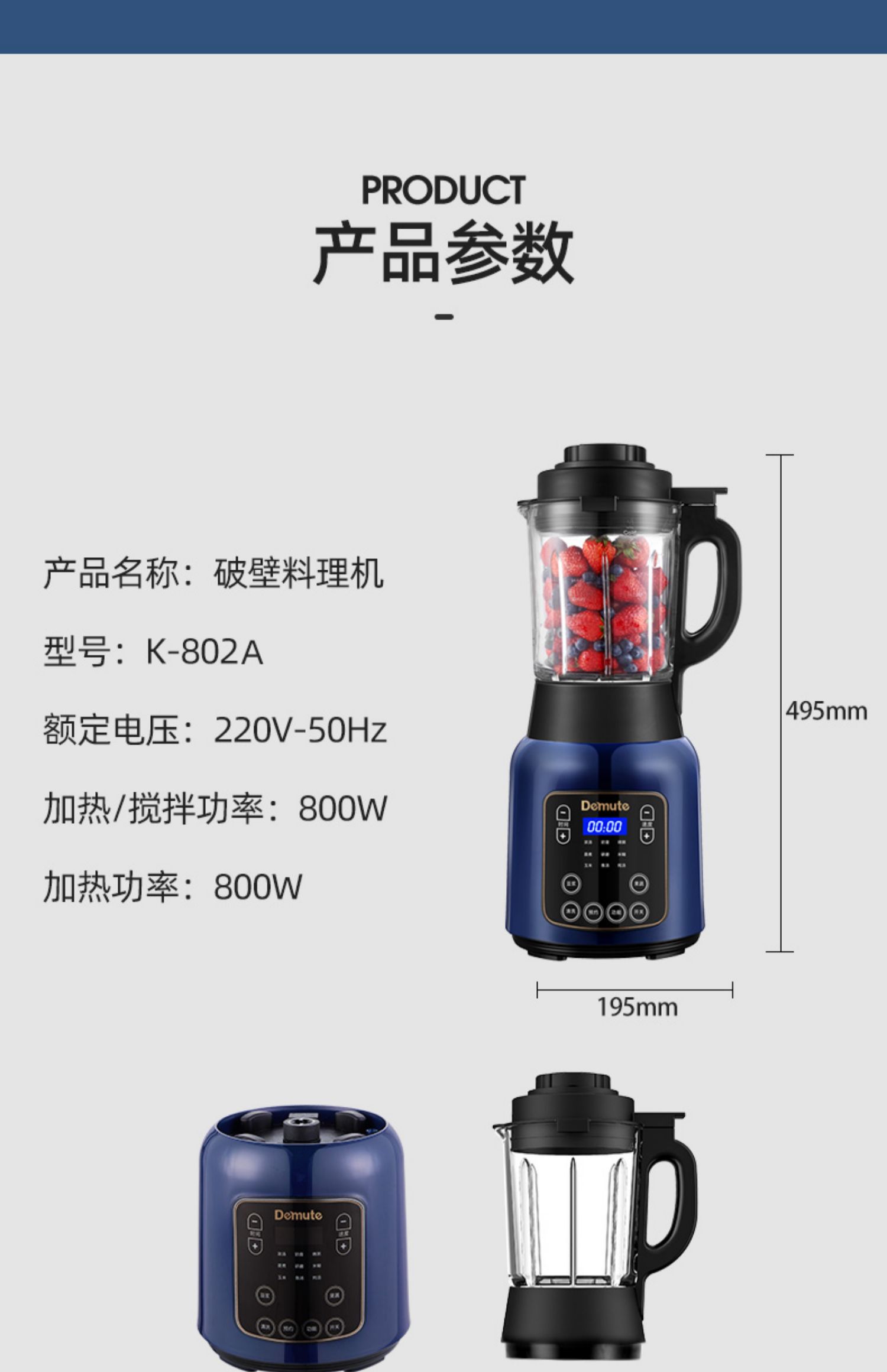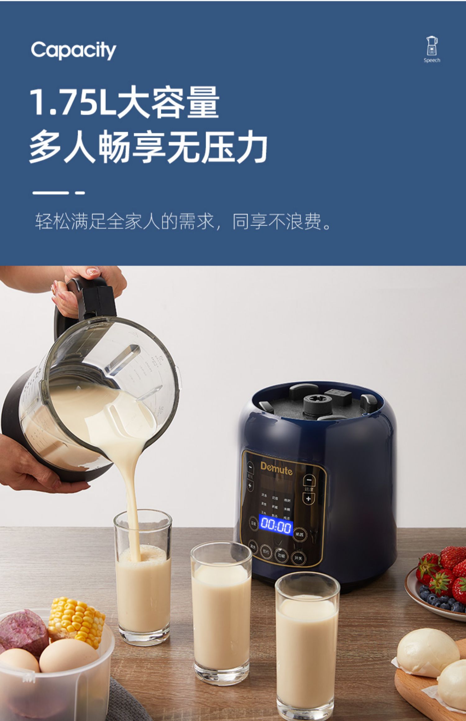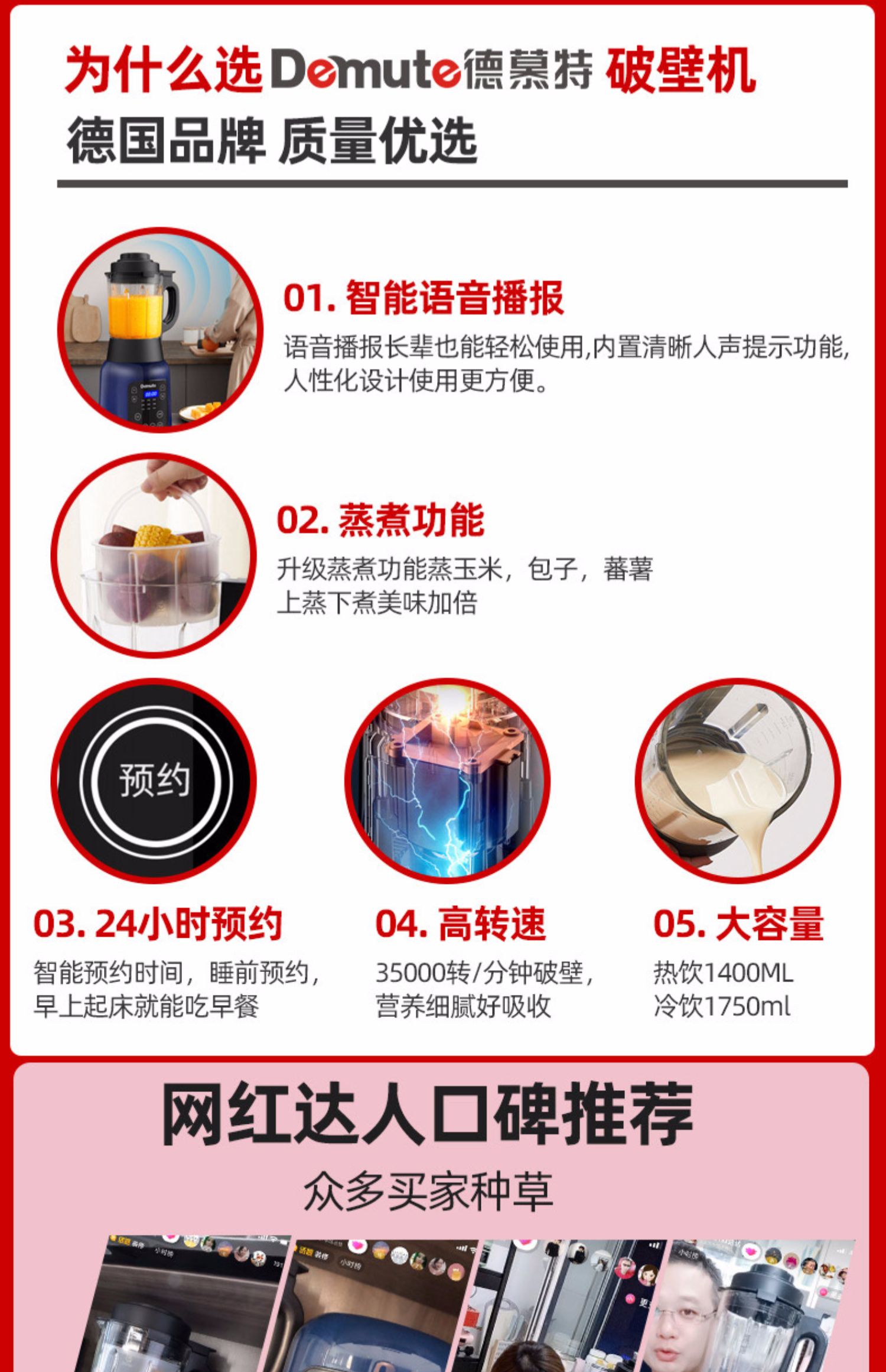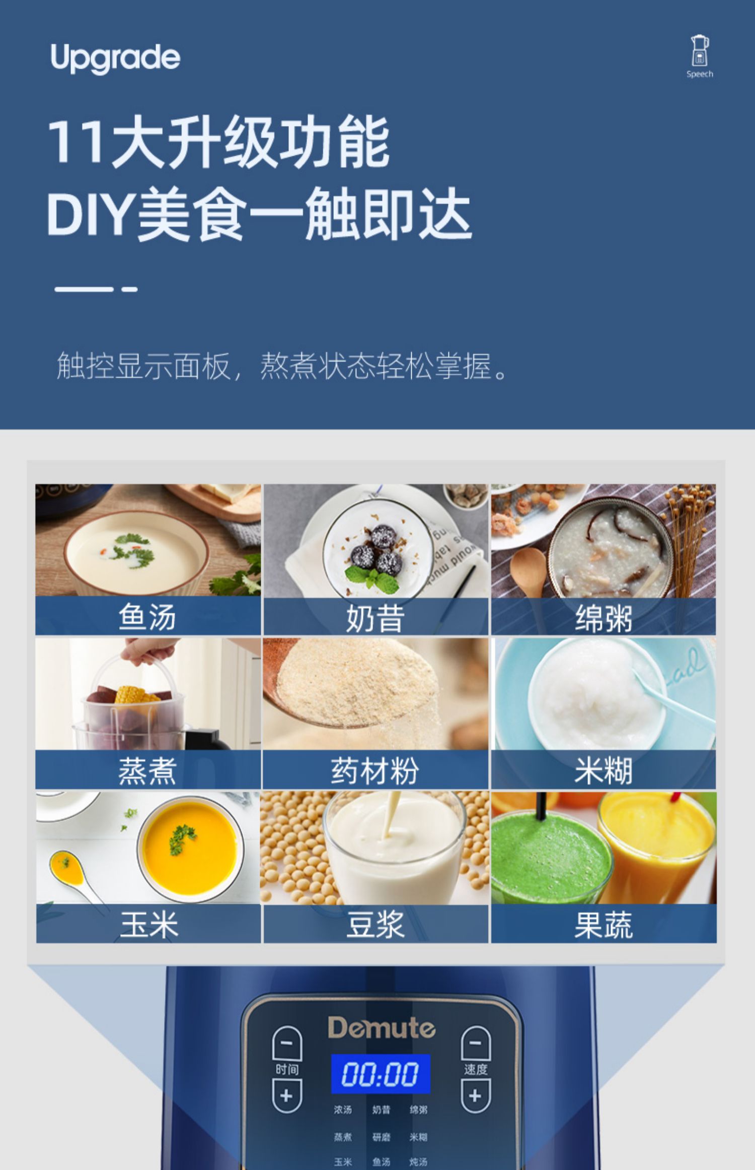 【智能语音播报】德慕特破壁机,家用多功能,无渣免滤,真正细腻,释放食物营养。智能预约,美食随享,语音播报提示,自动清洗,长辈也能轻松用