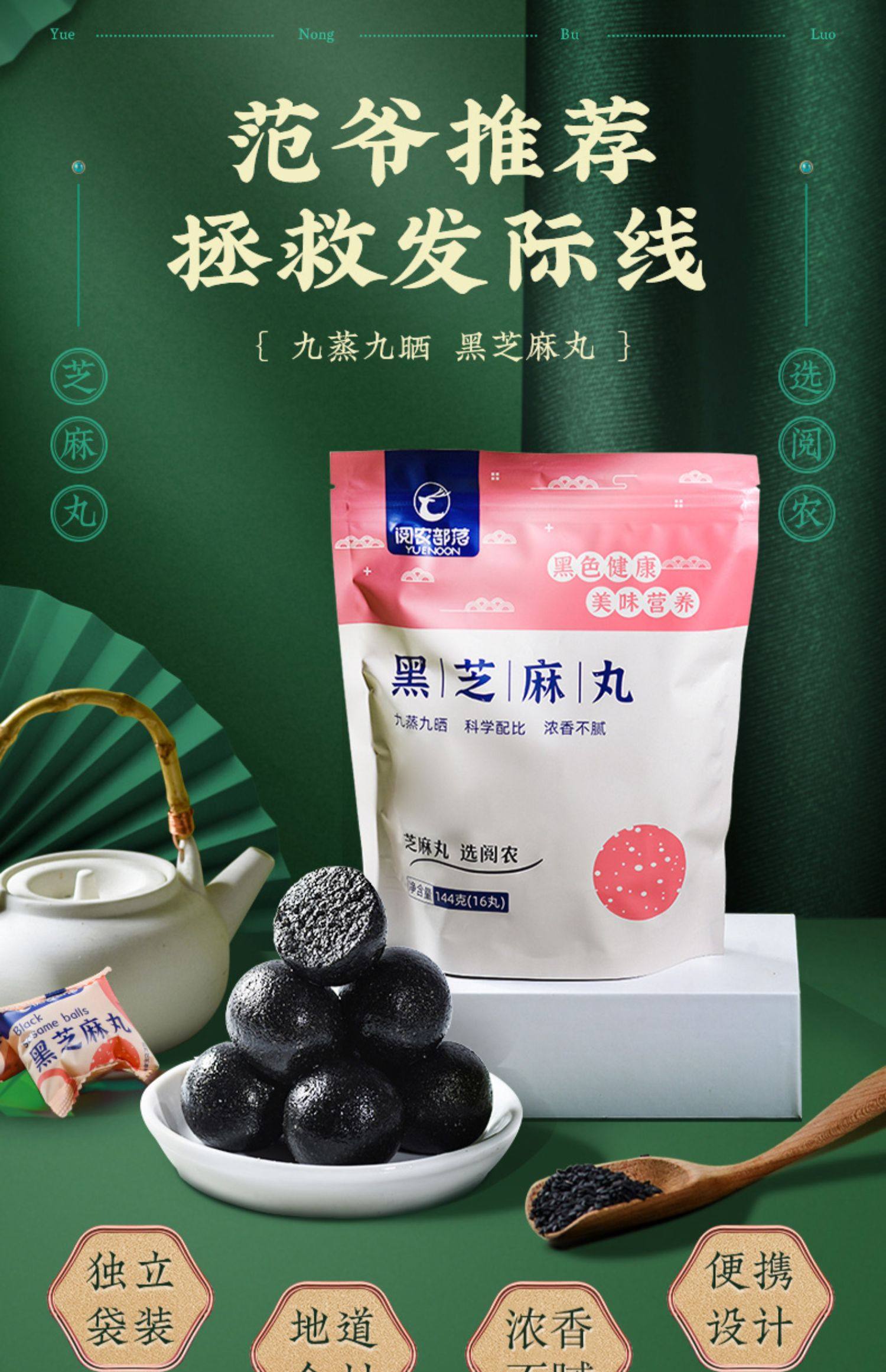 阅农部落黑芝麻丸,九蒸九晒,拯救你的发际线。老少皆宜的营养健康小零食,爆款必买,暖心好礼。