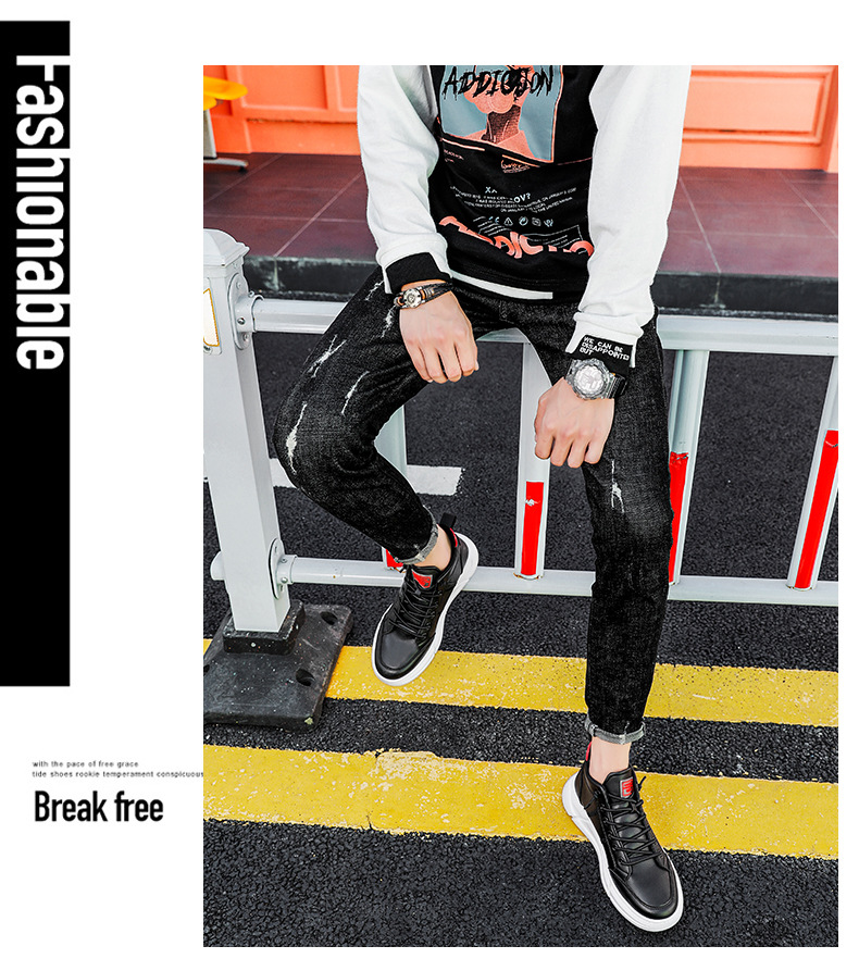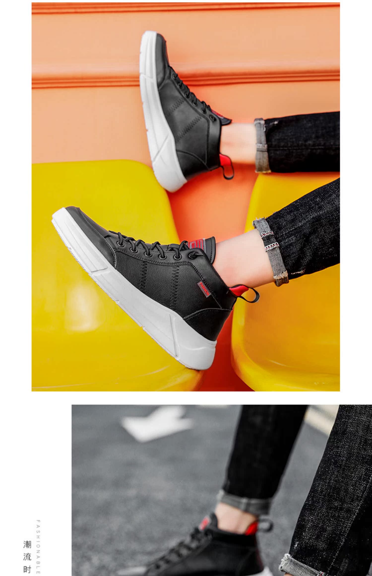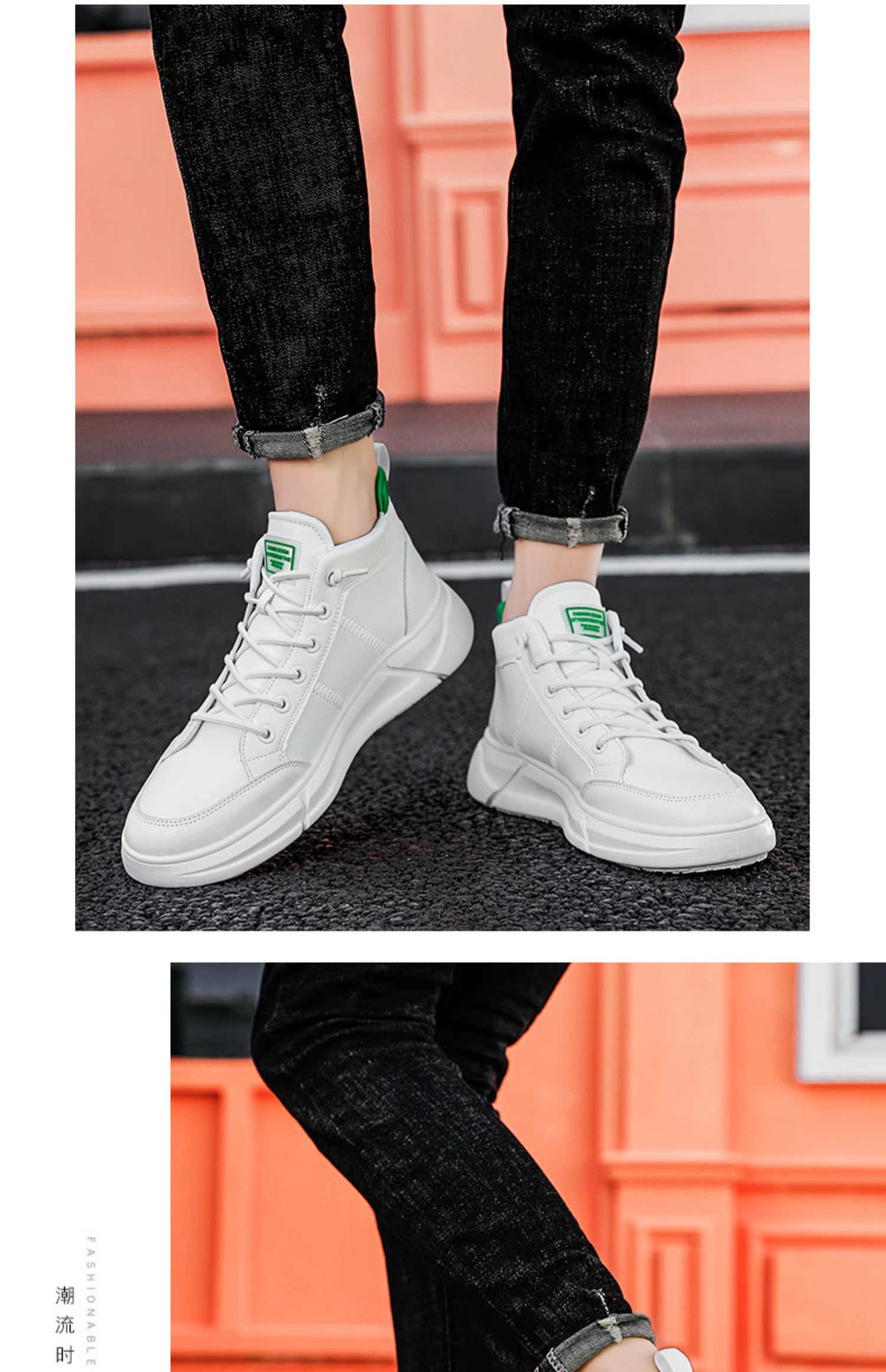 【天猫正品】秋季新款高帮男鞋防滑透气小白鞋男士韩版板鞋潮流休闲皮鞋百搭鞋子男潮鞋,一款很适合跑步的鞋子,男小白鞋男小蜜蜂,时尚百塔。出门必备的鞋,赠运费险!