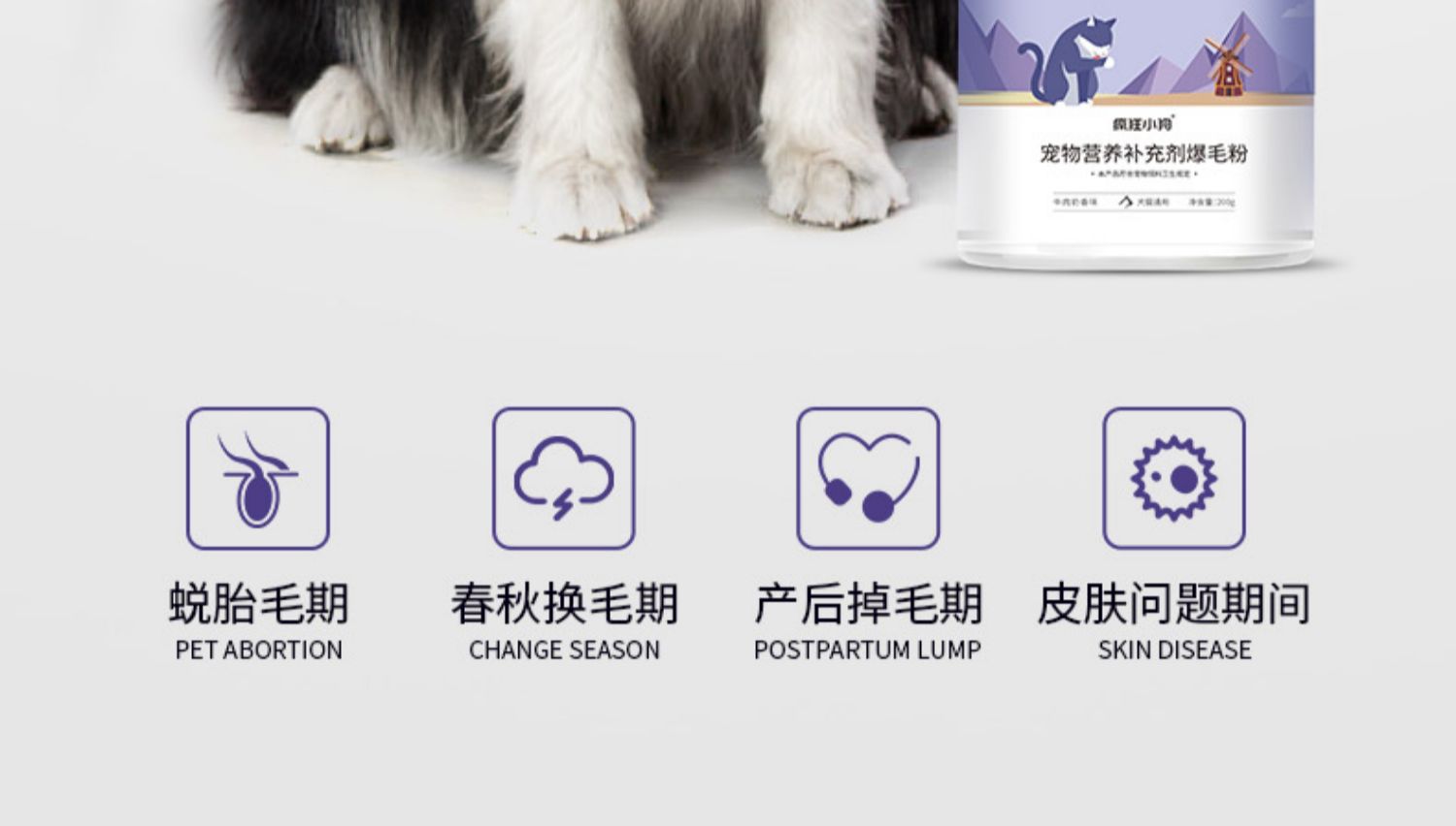 疯狂小狗知名品牌,鳖蛋爆毛粉,超值200g,滋养毛囊,爆毛浓密油亮,美毛顺滑提亮,蕴含各种微量元素,安全度过换毛期,宠物必备营养品!