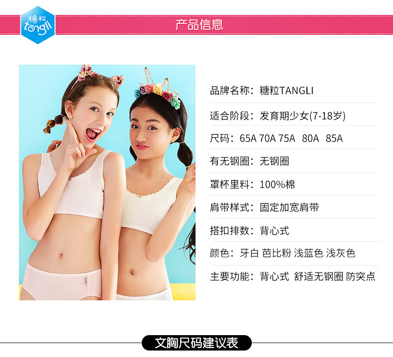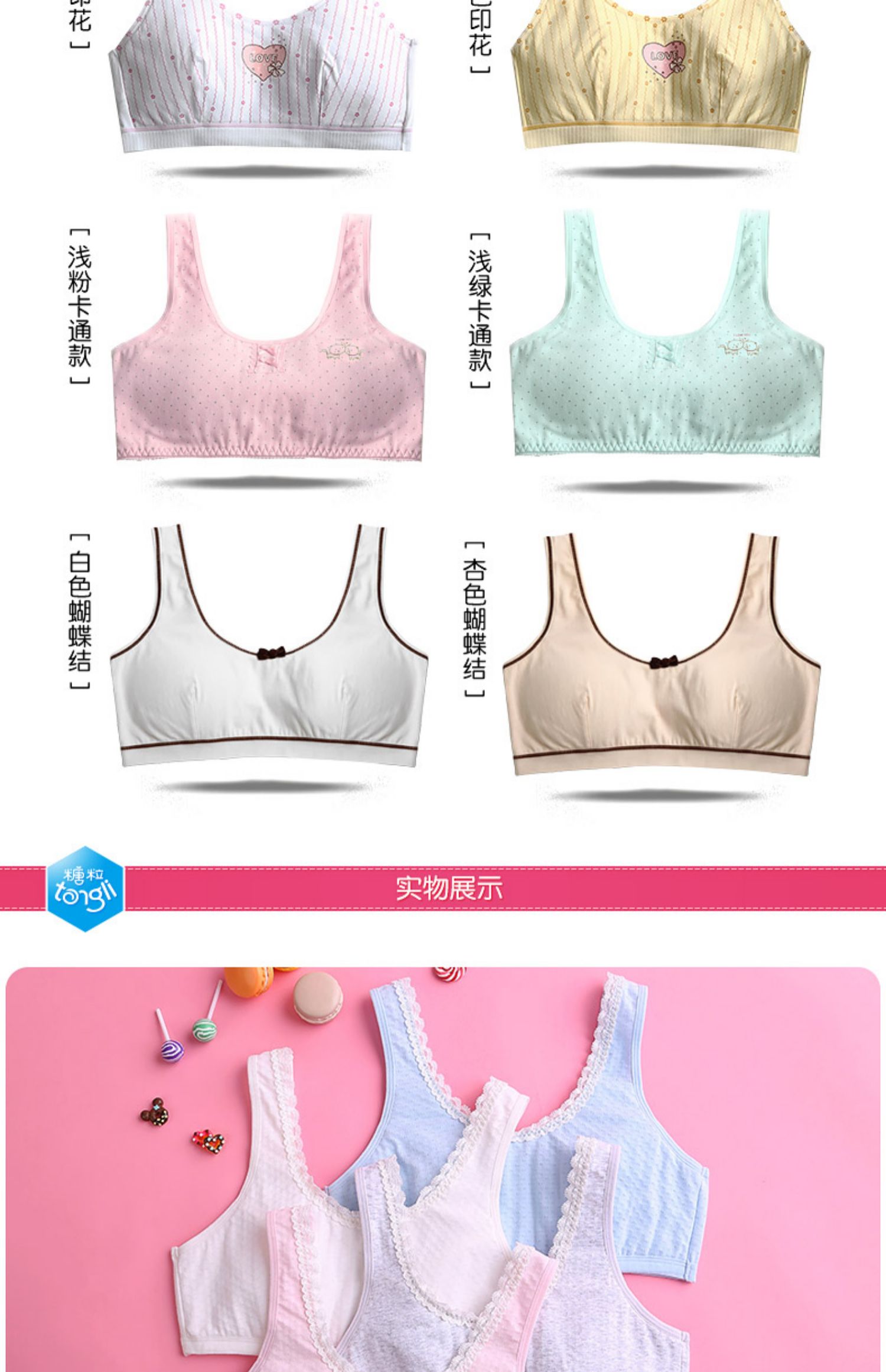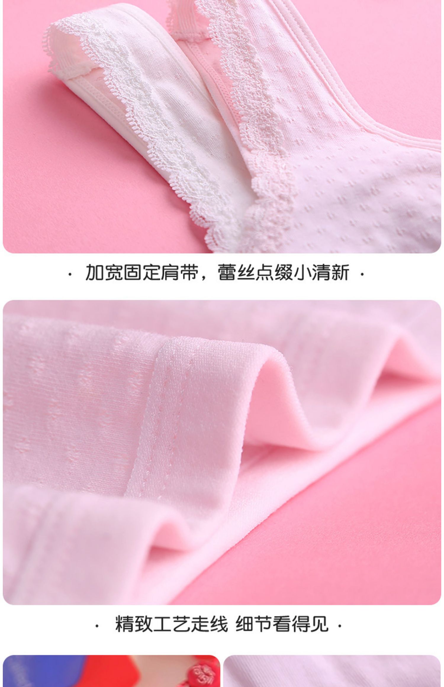 有一种舒适叫刚好合适,罩杯纯棉里料,透气孔面料,亲肤透气,给孩子当然要好的~健康舒适才是最重要的!