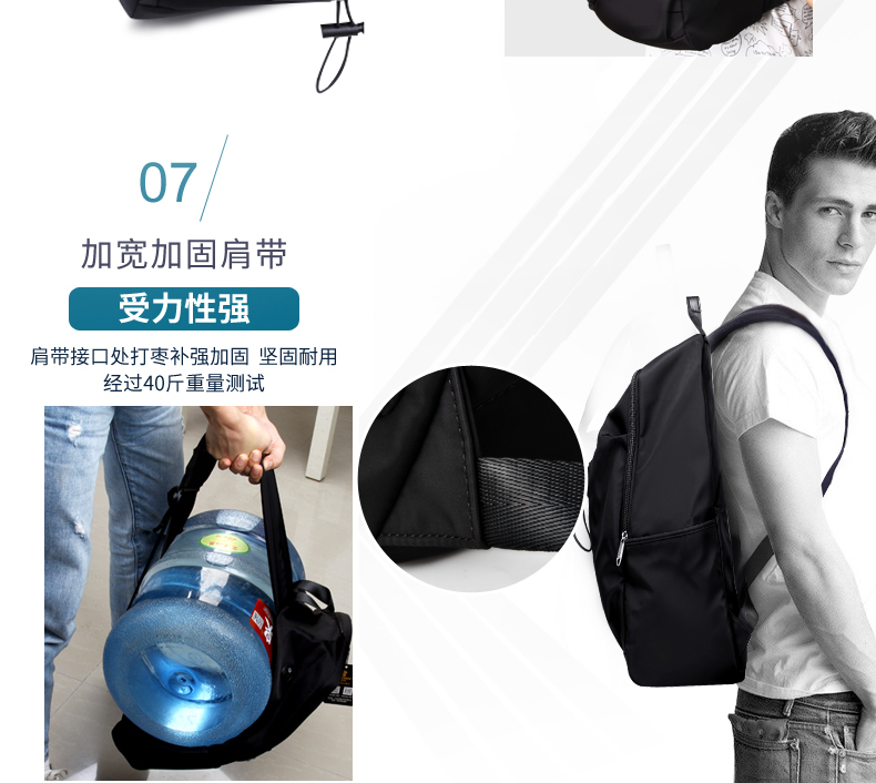 15天无理由退换,轻量化选材,优质面料轻便柔软不磨肩,防水牛津布无惧下雨天。人体工学设计,高密度泡棉排汗透气,受力均匀。大容量可装40斤饮水机水桶!终身保修,三折抢购!【赠运费险】