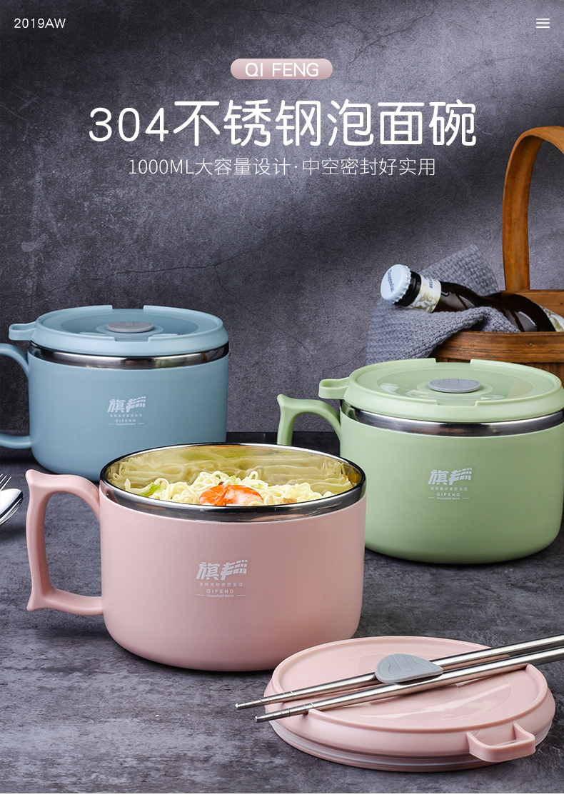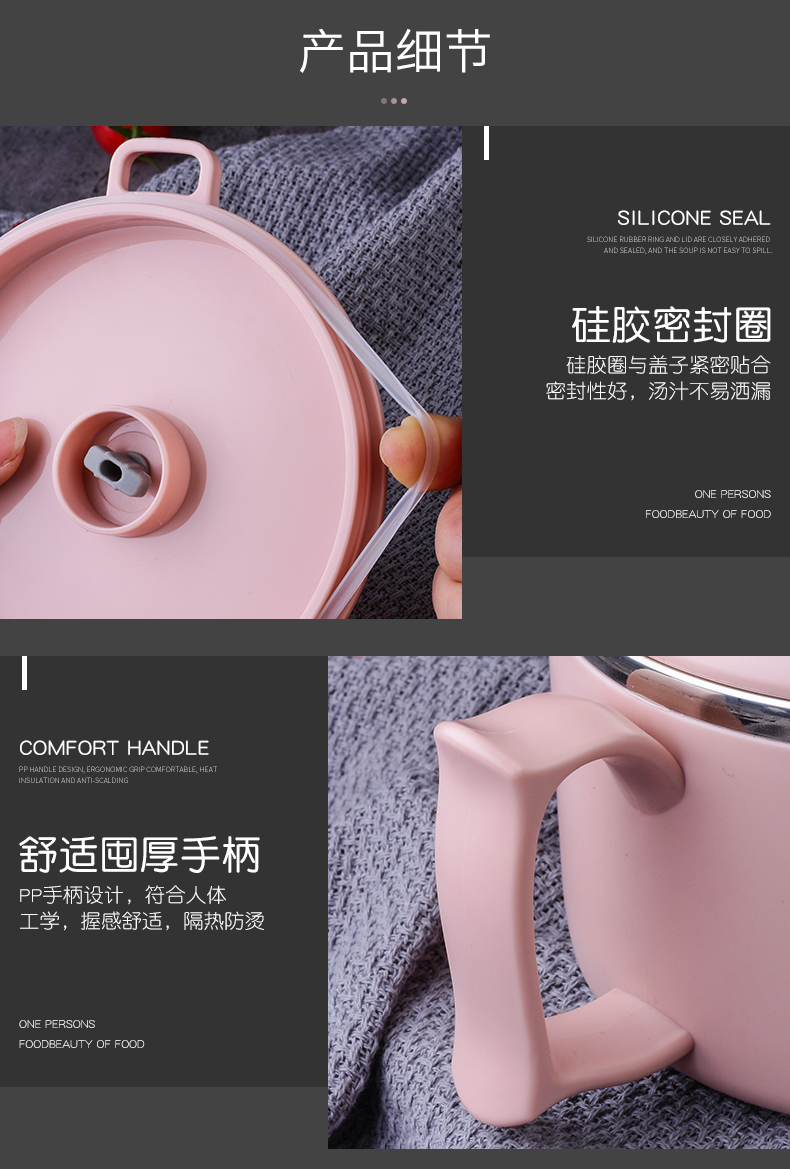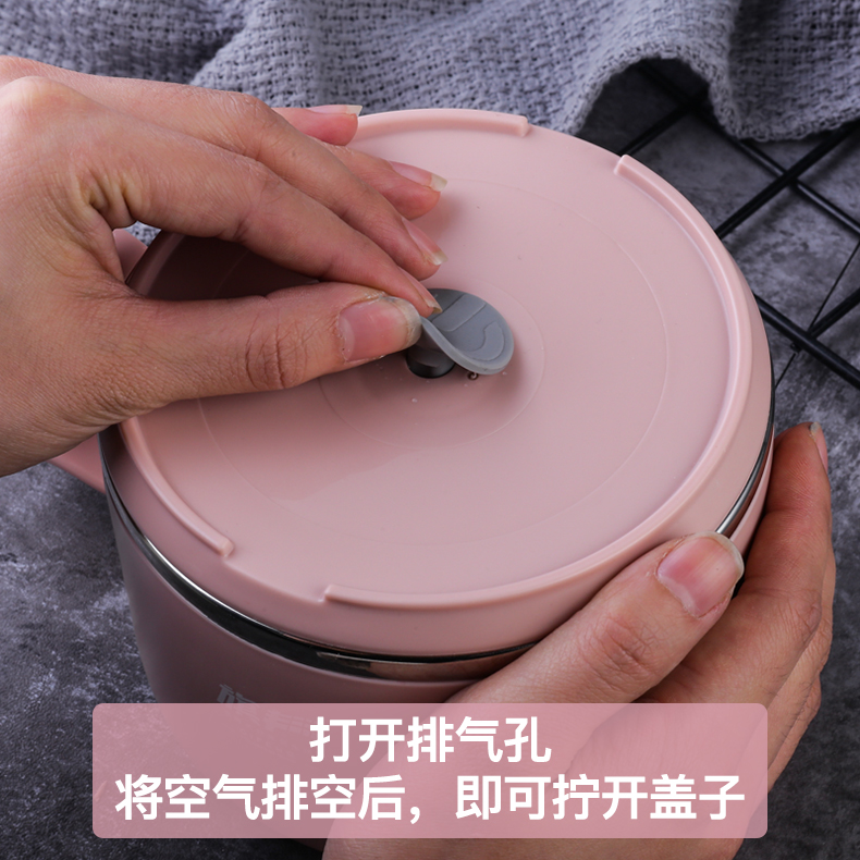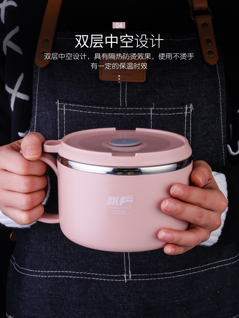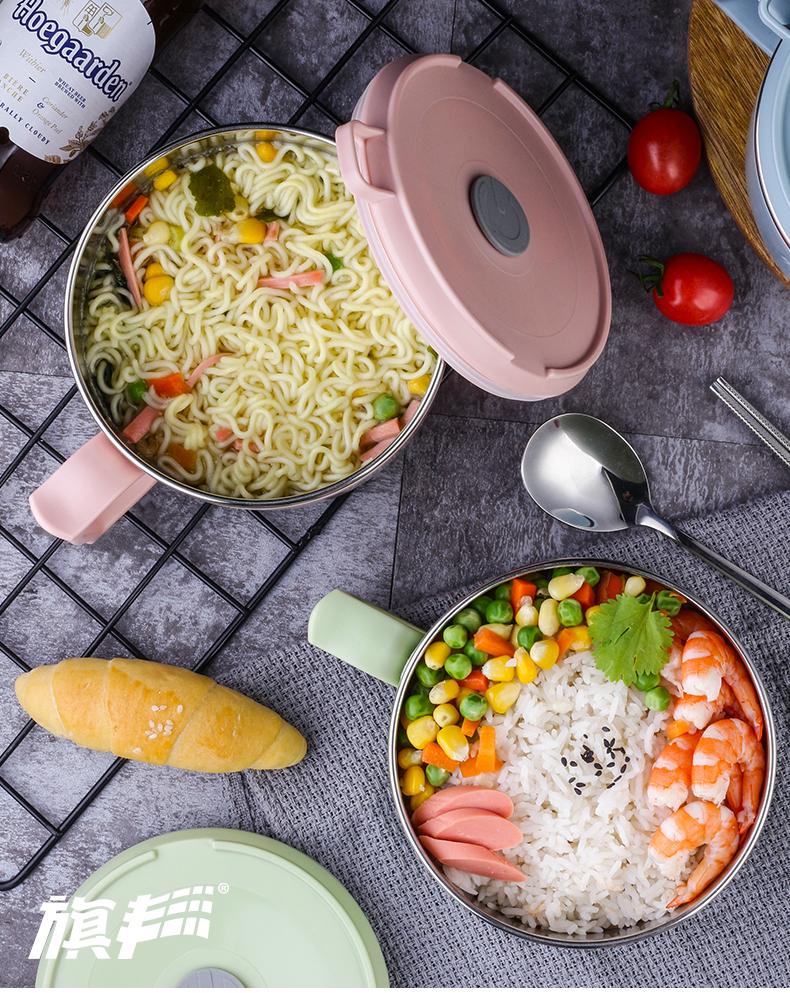 304食品级不锈钢材质,多功能带盖饭碗,中空隔热防烫设计,加上防烫把手,高效保温又免烫!加厚硅胶密封圈,锁住新鲜不漏汤,美味不流失哟