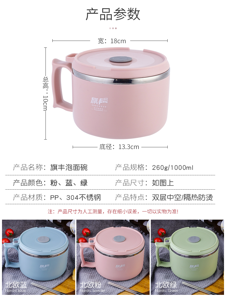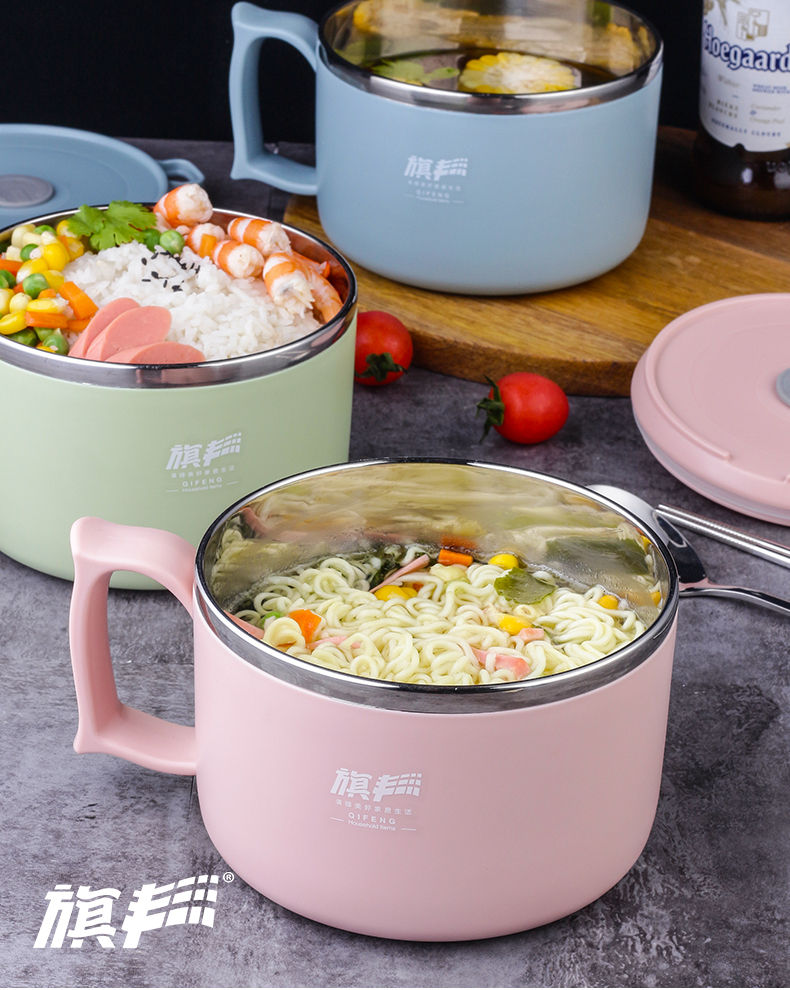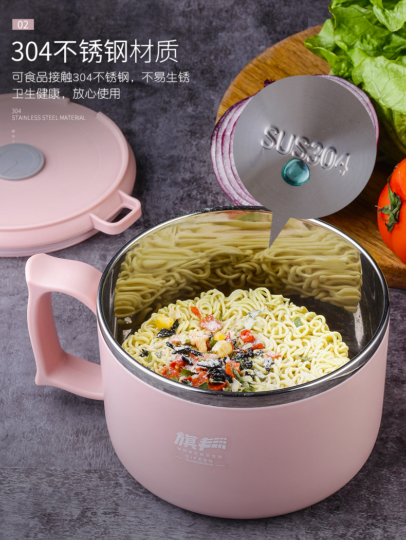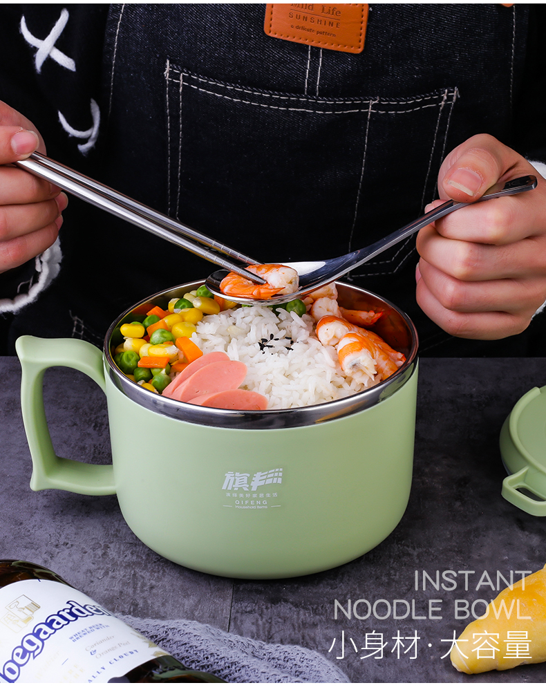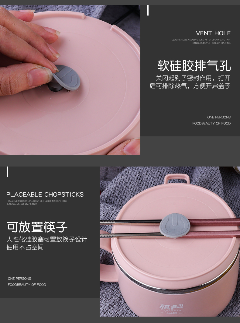304食品级不锈钢材质,多功能带盖饭碗,中空隔热防烫设计,加上防烫把手,高效保温又免烫!加厚硅胶密封圈,锁住新鲜不漏汤,美味不流失哟